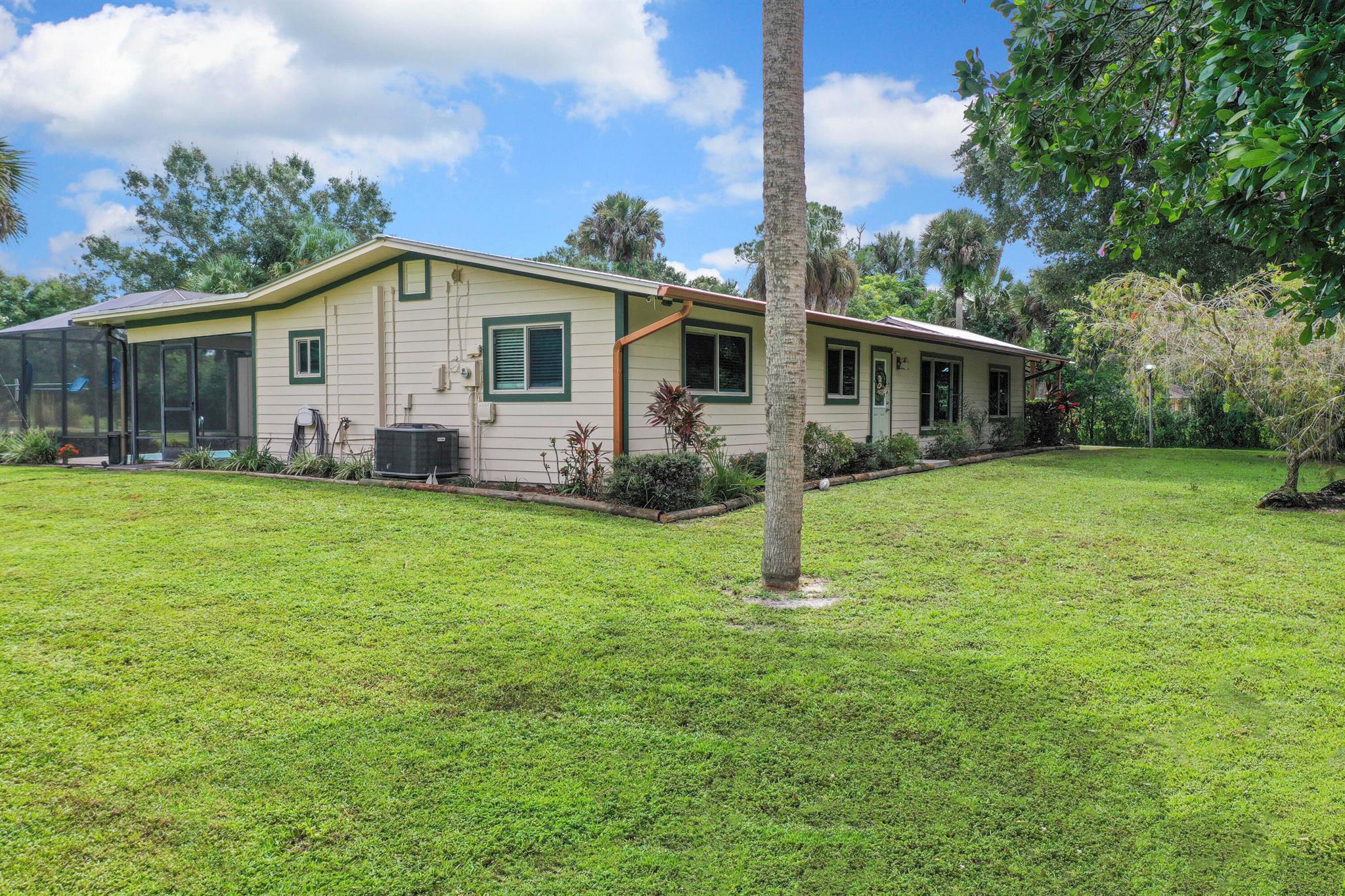 Prime location for this beautiful updated 3 bed 3 bath pool home on 5 acres in Palm City Farms. With several outbuildings including a 40 x 30 building with separate driveway can also double as business. Freshly painted exterior and resurfaced pool. 2023 AC replaced and 2025 well pump replaced. Full impact windows and doors for no worries during hurricane season and security. Fenced in yard with electric gates to the main home. Gorgeous Oaks, Banyan, and Poinciana trees. Updated kitchen with SS appliances and tile floors throughout the house. Plenty of storage for all your toys. Easy access to I95 and the turnpike.