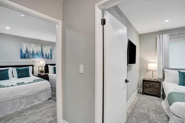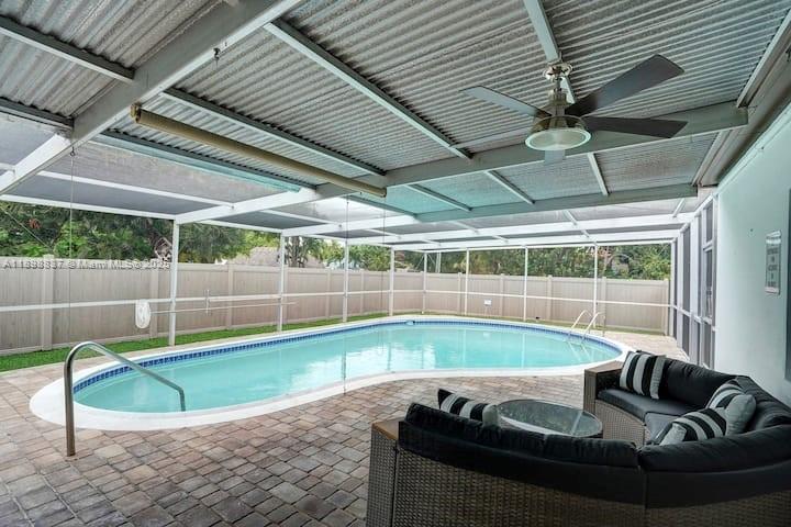 Experience modern coastal living in this beautifully renovated 4-bedroom, 3-bath home located in the coveted Hollywood Lakes neighborhood. Featuring 1,714 sq ft of thoughtfully designed living space, this move-in ready residence showcases a bright open layout, contemporary finishes, and seamless indoor-outdoor flow. Step outside to your private backyard oasis with a pristine two-year-old pool surrounded by lush greenery perfect for relaxing or entertaining. Just minutes from Hollywood Beach, shopping, and dining, this home offers the perfect blend of elegance, comfort, and location.