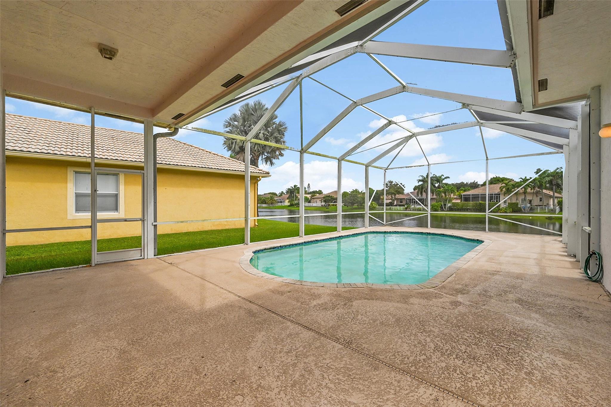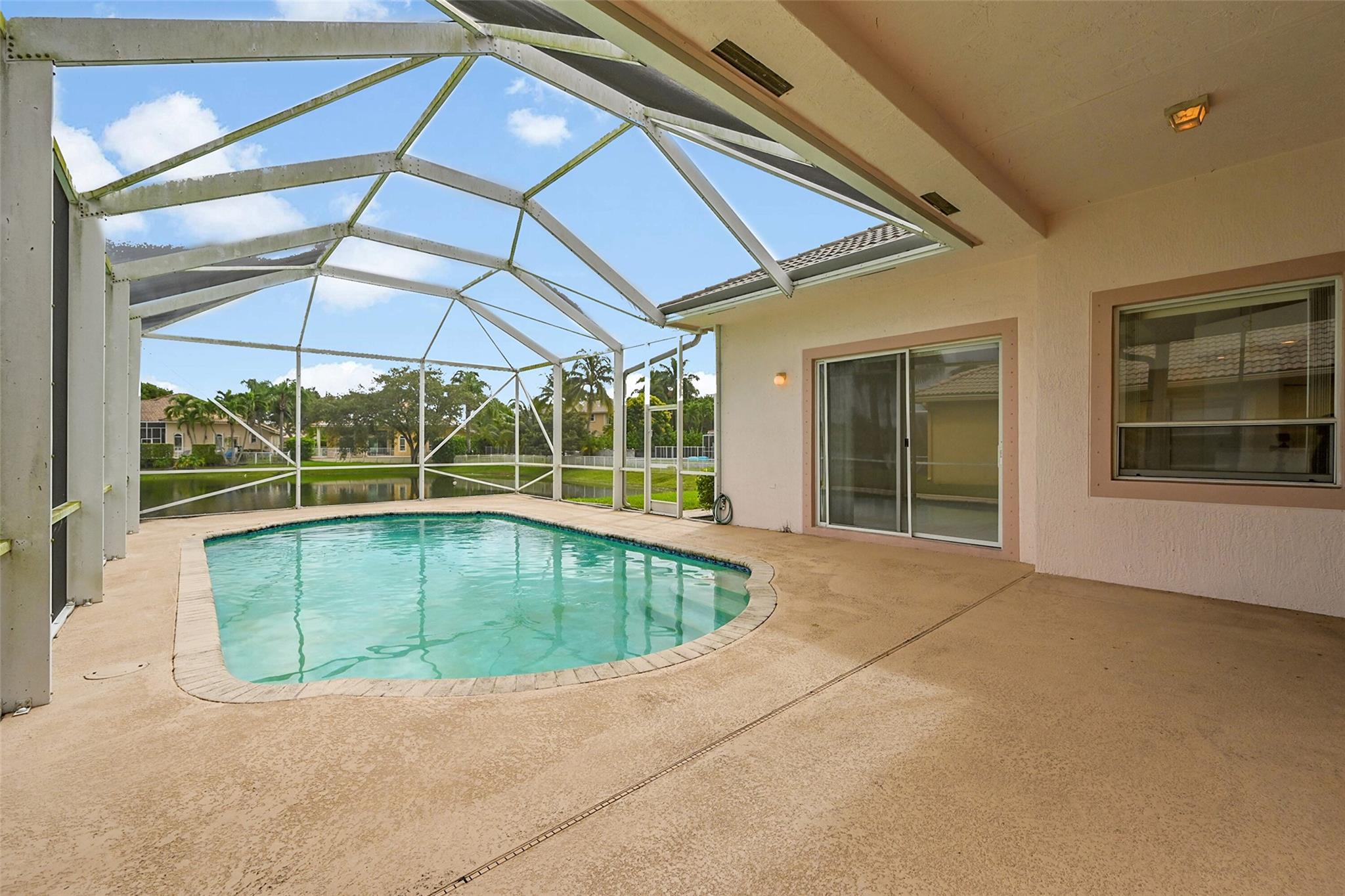 Fantastic opportunity in a desirable gated community! This spacious 4-bedroom, 3-bath pool home sits on a beautiful lakefront lot and offers tremendous potential. With a split floor plan, high ceilings, and abundant natural light, the layout provides an ideal canvas for your personal touch. The home requires some updates and repairs but offers solid construction, a functional design, and an unbeatable location within the community. Enjoy tranquil lake views from the screened pool area, perfect for relaxing or entertaining. Conveniently located near top-rated schools, shops, dining, and the major highways: Turnpike & Sawgrass Expressway. This property is ideal for both investors and end users looking to customize a home with lasting value. With vision and care, this home can truly shine!
