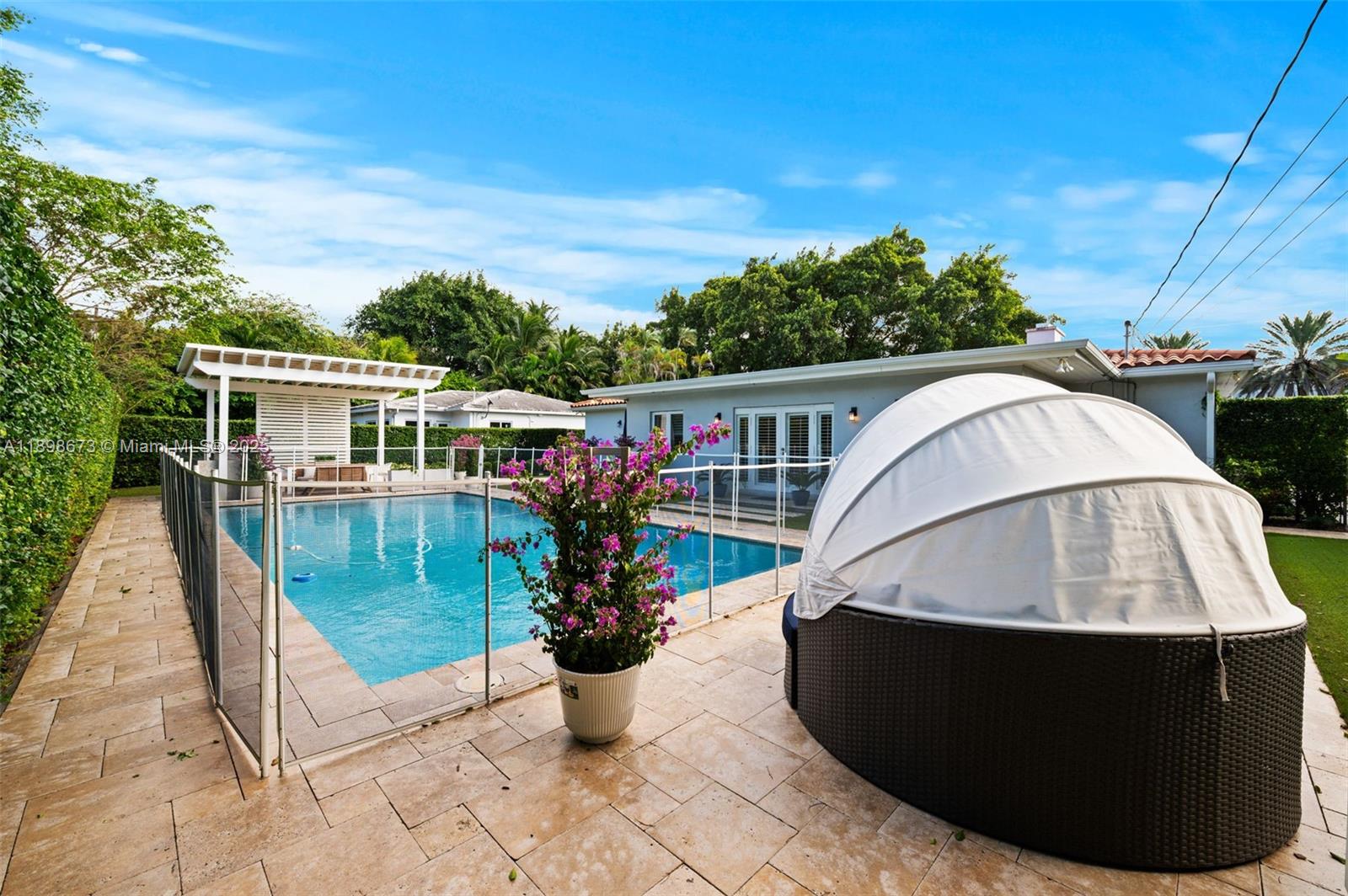 Stunning 4 Beds, 2 Baths + an Office Coral Gables home, completely gutted and redone in 2016 with exquisite finishes and timeless style. Featuring wood floors, plantation shutters, a cozy fireplace, and a designer kitchen with quartz countertops, cook island, and custom cabinetry. Enjoy a private backyard oasis with a sparkling pool, pergola, summer kitchen, lush landscaping, and an electric gate for privacy. Impact windows throughout and sophisticated bathrooms complete this elegant residence. A perfect blend of comfort, style, and Coral Gables charm.