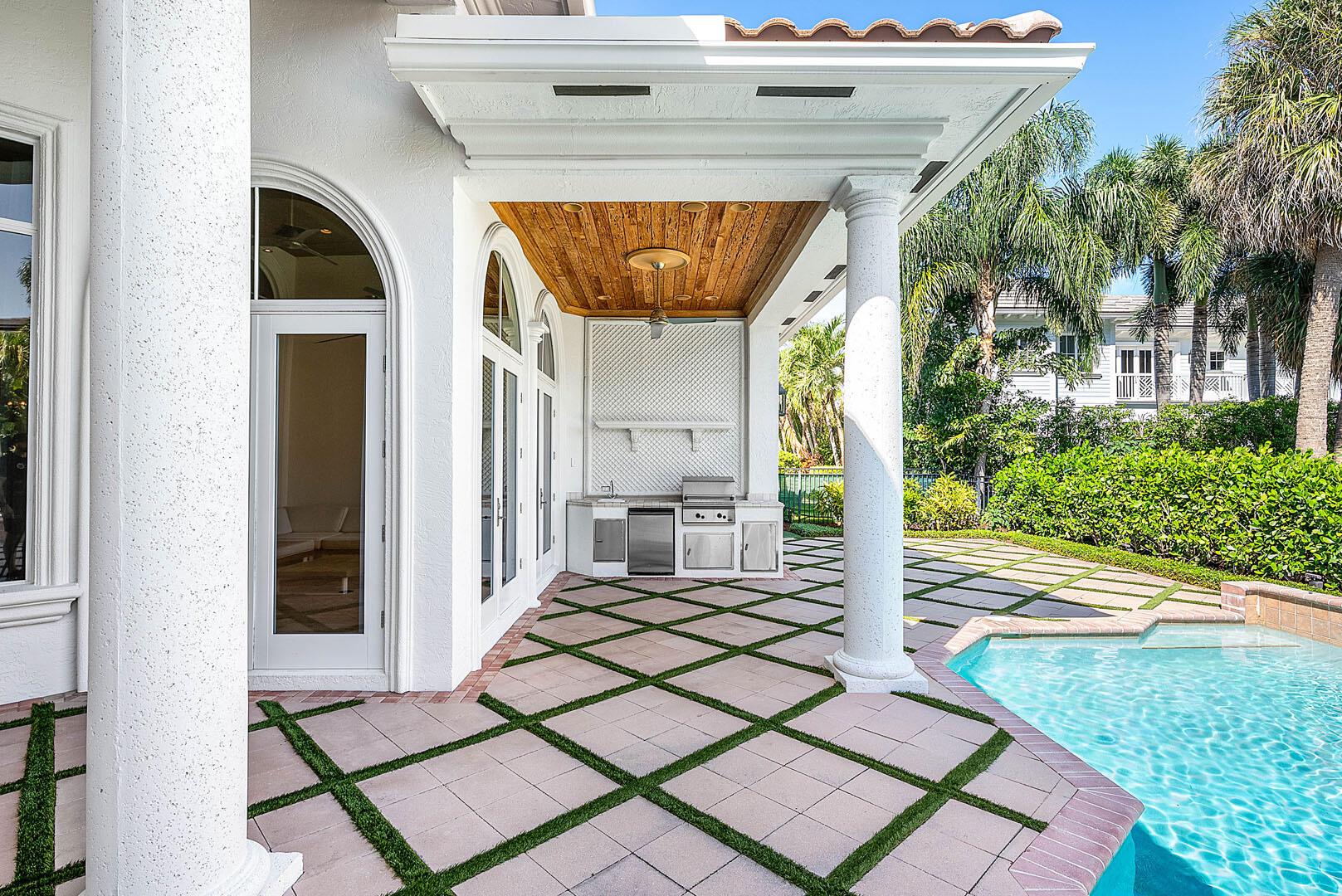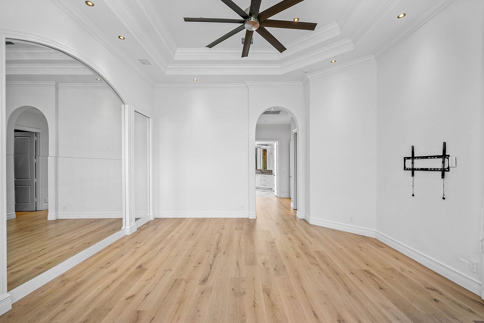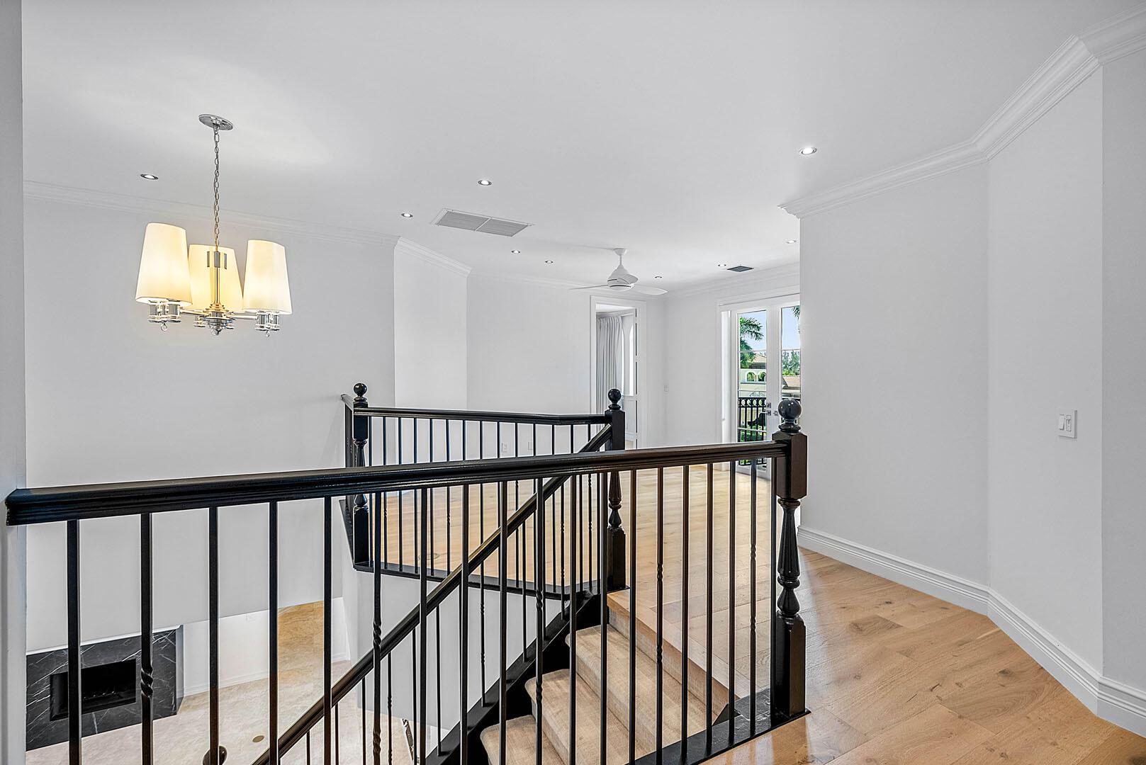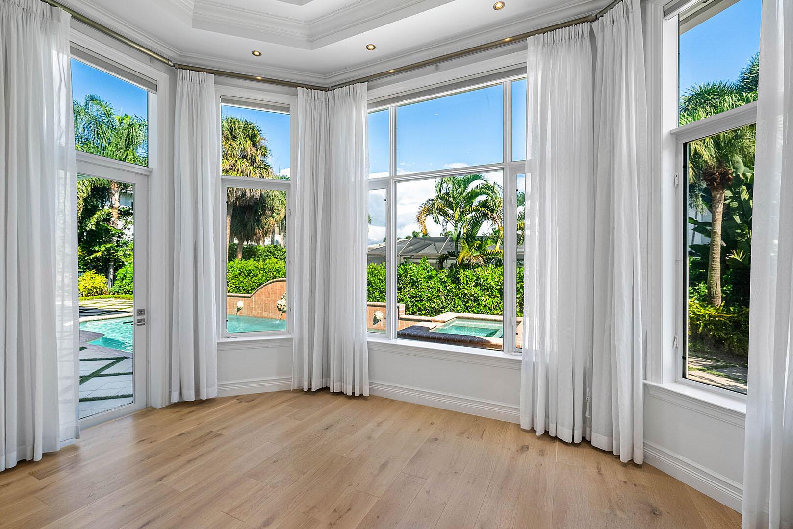 Welcome to 2124 West Maya Palm Drive, a beautifully renovated transitional estate in Boca Raton's Royal Palm Yacht & Country Club. Designed with elegance and comfort, this home offers a light-filled layout and refined finishes. The formal living room features a marble fireplace and serene backyard views. The first-floor primary suite is a luxurious retreat with new hardwood floors, dual custom closets, a spa-like bath with marble vanities, separate water closets, a soaking tub, and motorized shades. The main level also has a private office with built-ins, an elegant powder room, and a guest suite with new flooring and an updated bath. The gourmet kitchen has been reimagined with ample storage, sleek countertops, and dual dishwashers, opening a spacious family room perfect for