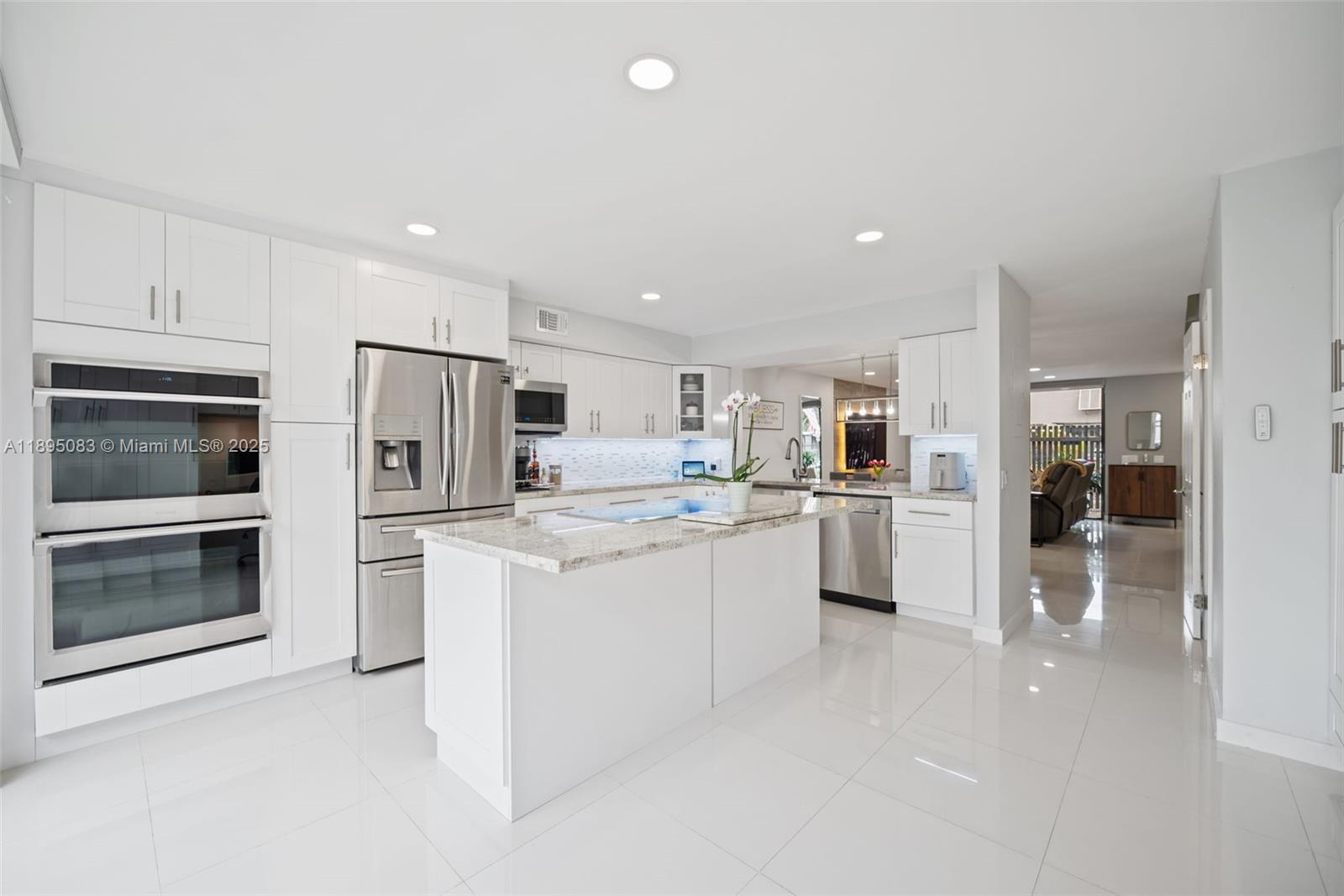 Thoughtfully updated and move-in ready! Enjoy 24x24 porcelain tile downstairs, laminate up, and a remodeled kitchen with granite, Samsung stainless & soft-close cabinetry. Primary bath features a walk-in shower; primary closet adds a barn door. LED high hats in living, kitchen, both bedrooms & primary bath, plus Nest thermostat and accordion shutters on all sliders. Most upgrades in 2019 (floors, kitchen, bath, A/C, roof for section). Popular community amenities—pool, tennis & basketball courts, clubhouse. HOA includes basic Comcast cable, and the unit has 2 assigned parking spots.