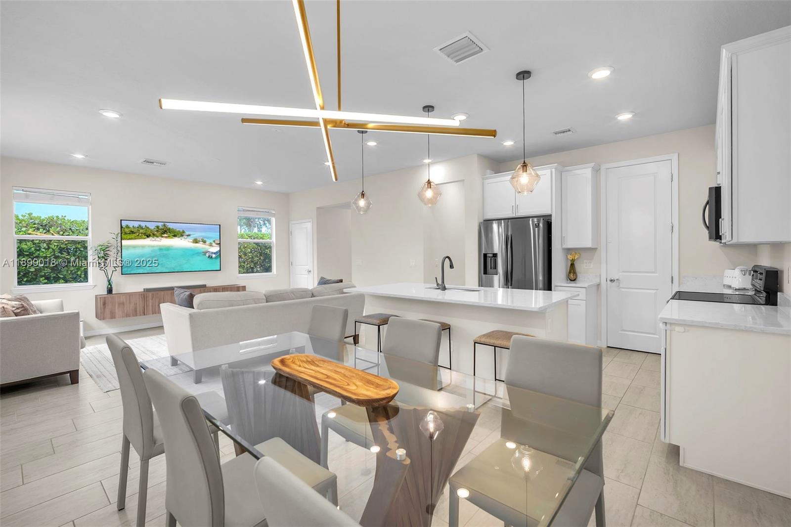 Rarely available corner lot townhome! Stunning 3BR/2.5BA home with 2-car garage on an oversized lot and beautiful lake views. Enjoy outdoor living with a screened covered porch and open patio- Perfect for entertaining. Inside, this spacious home features upgraded tile and carpet flooring, 8’ doors, and an open-concept layout with a modern kitchen showcasing an island, quartz countertops, and plenty natural light throughout the family and dining rooms. Additional highlights include impact windows & doors and smart-home readiness with Vivint security system. Resort-style amenities include a clubhouse, pool, fitness center, tennis courts, and a 70-acre park with scenic bike & walking trails. Prime location with easy access to Turnpike, I-95, beautiful beaches, and top dining!