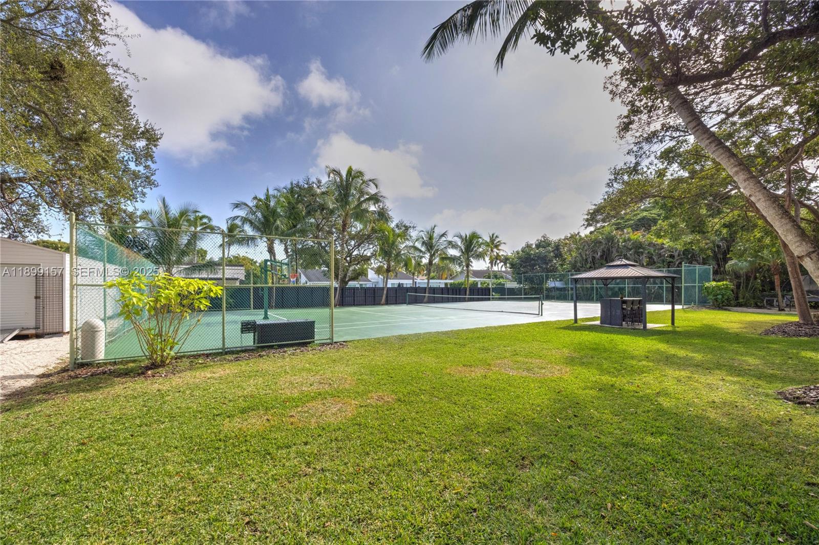 Nestled on over one acre of manicured grounds, this 5-bedroom, 4-bath home offers a rare blend of space, comfort, and resort-style amenities. Featuring a formal living, dining & family room w/ beautifully renovated kitchen and appliances. The primary suite features dual vanities & walk-in closets, while a private guest wing of living room, wet bar, and ensuite bedroom ensures ultimate privacy for visitors. Step outside to a large covered patio with bar overlooking the beautiful pool leading to the koi pond, fire-pit, tennis court, expansive lawn, and large storage shed. The home has an 8 yr roof and full impact rated doors & windows. Located in one of Miami’s most peaceful enclaves just moments from Palmer Trinity School, this estate offers the perfect balance of tranquility & elegance