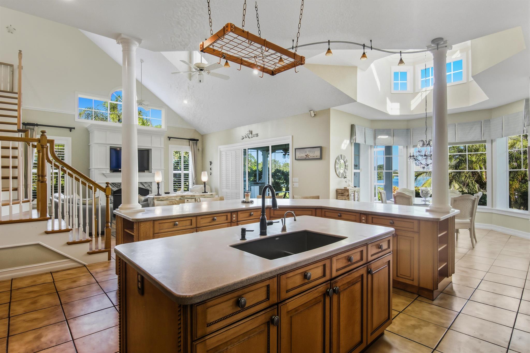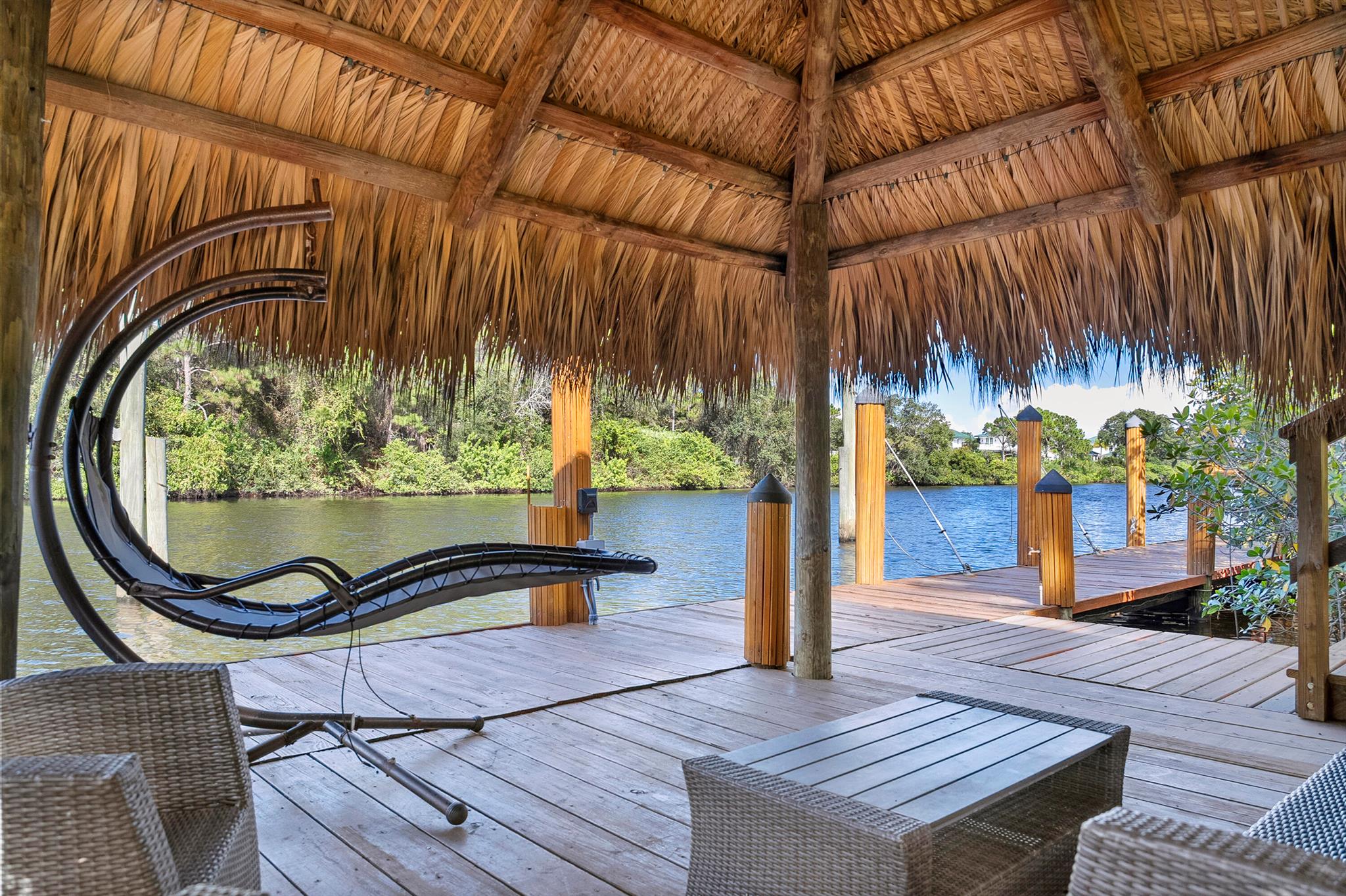 Discover serene living in this magical waterfront home nestled on a pristine peninsula with breathtaking views of water and nature in every direction. Enjoy deep water ocean access with no fixed bridges, your own private sandy beach, swing from your sprawling oak tree, or have a fire pit on your sweeping lawn sitting high above the intersecting waters of the C-23 Canal, Bessy Creek and the St. Lucie River. Privacy, peace, nature, water and sky ..