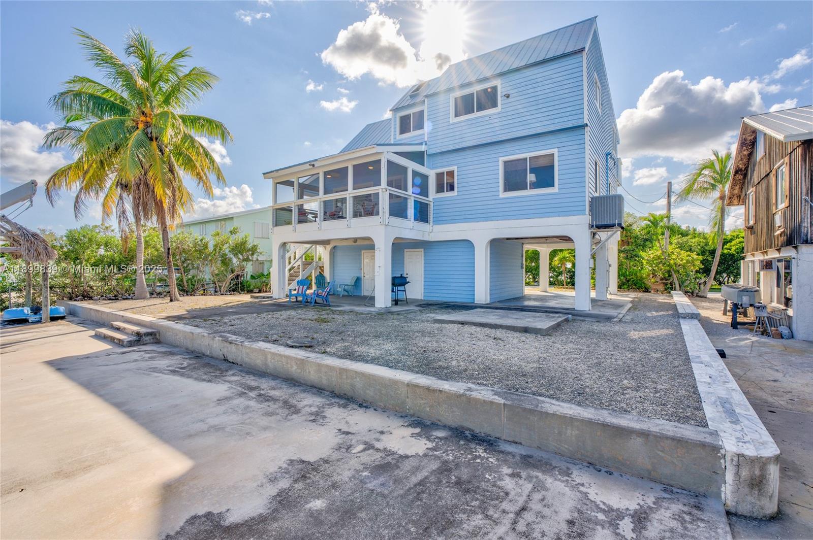 Stunning water views and gorgeous sunsets will be yours from this slice of Keys paradise where the 7,000 sq. ft. setting couldn't be more peaceful! It's a short, 300 ft. canal ride to the Pine Channel; the Content Keys are about 20 minutes away by boat and the Atlantic is also within easy reach. A few of the property's highlights are the 70 ft. concrete seawall with davits, multiple porches, impact-resistant windows and doors, and the soaring cathedral ceiling. Offered furnished, this 2-story, 1674 sq. ft., 4-bedroom, 2-bath home has 2 bedrooms and 1 bath on each level; the upper level has a spacious loft, a porch off the primary bedroom, and more spectacular views. Additional features are covered parking and storage on the ground level, a fish cleaning station and davits.
