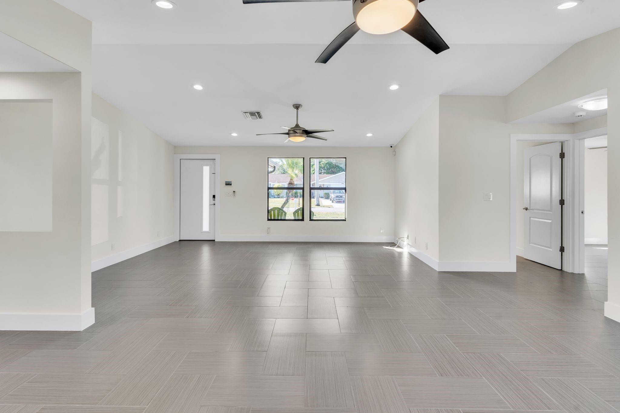 Fully Renovated Home - Move-In Ready! ?Interiors: It features 3 spacious bedrooms and 2 elegant bathrooms, this home boasts an open floor plan and a beautifully kitchen with vaulted ceilings. Outdoor Living: Enjoy a fully fenced backyard and a cozy screened patio, perfect for entertaining or relaxing. Peace of Mind: Equipped with full hurricane protection, a recently replaced water heater and roof installed in 2018. ?Modern Conveniences: Includes a laundry room and a 2-car garage. The master bathroom offers a seamless glass-enclosed step-in shower and a double sink. Ample closet space throughout, including a master closet. Nestled in a quiet and family-oriented neighborhood. Conveniently located close to shopping plazas, major highways, and just 15 mins from the beach!