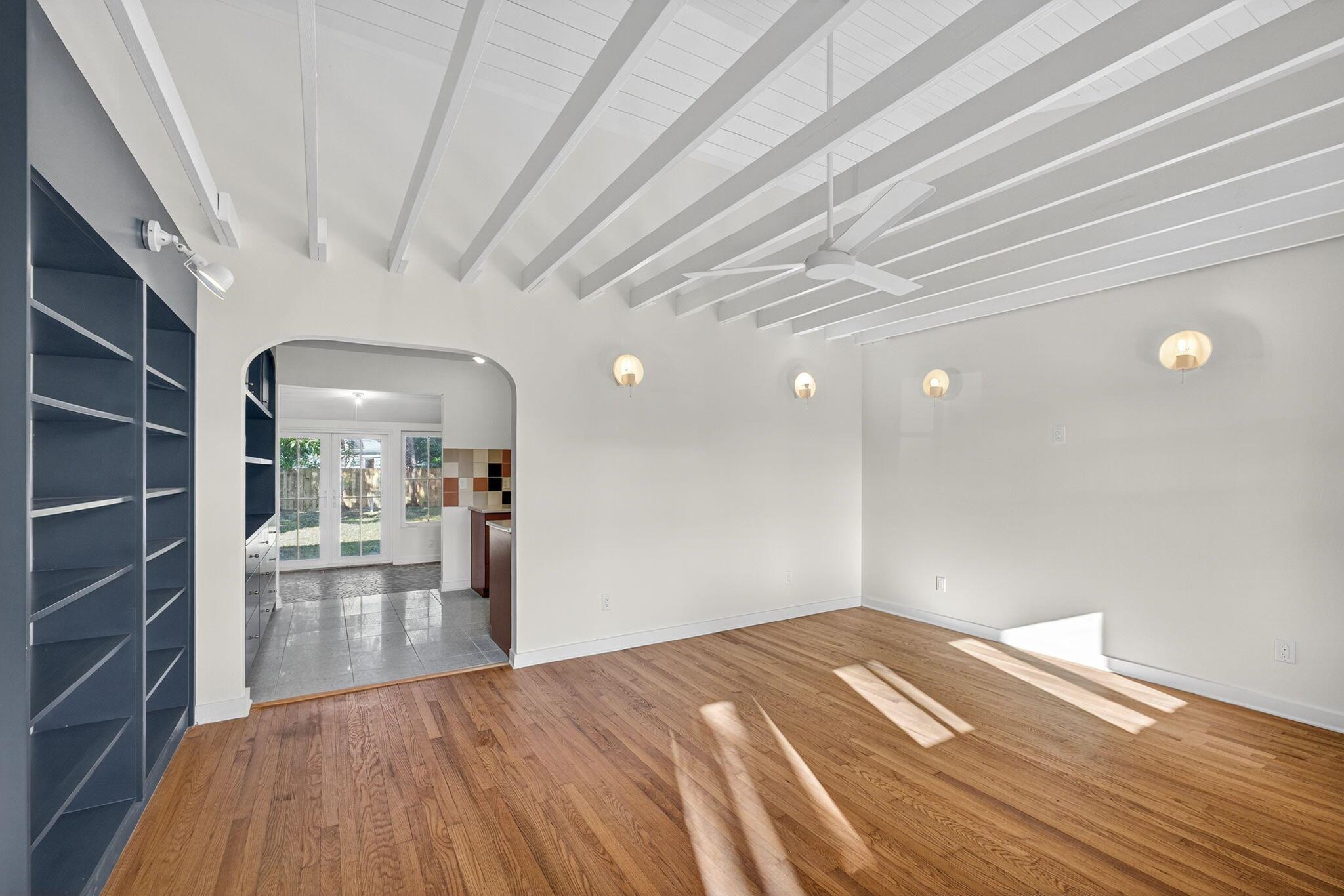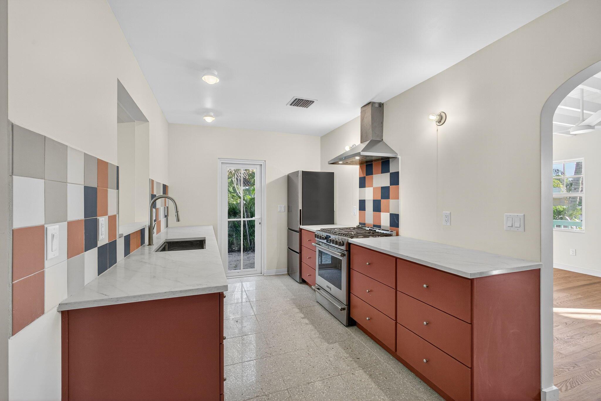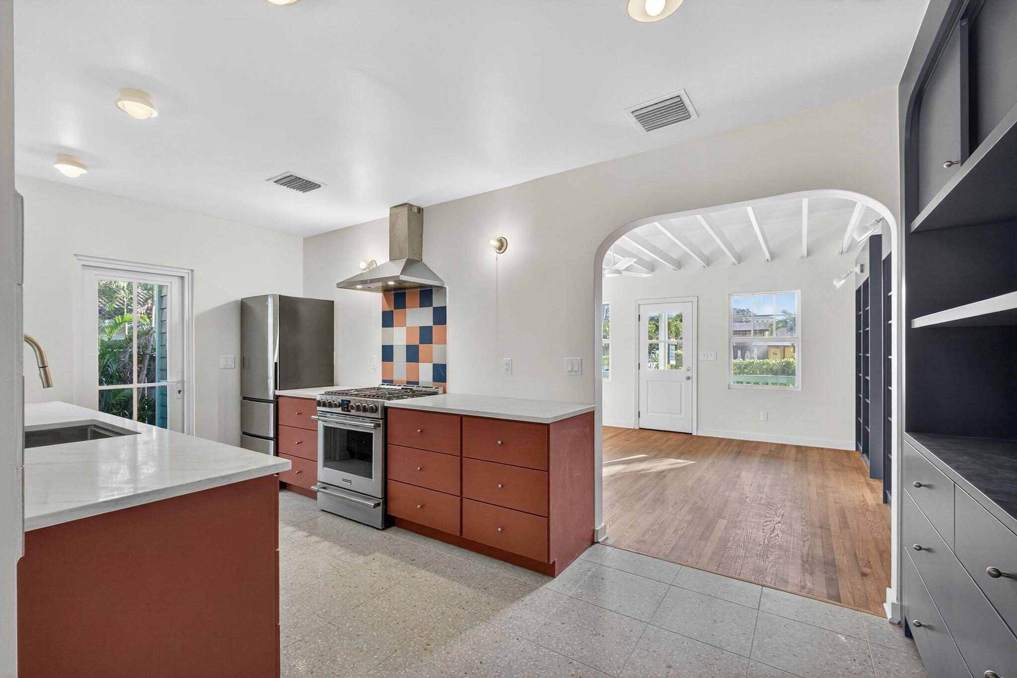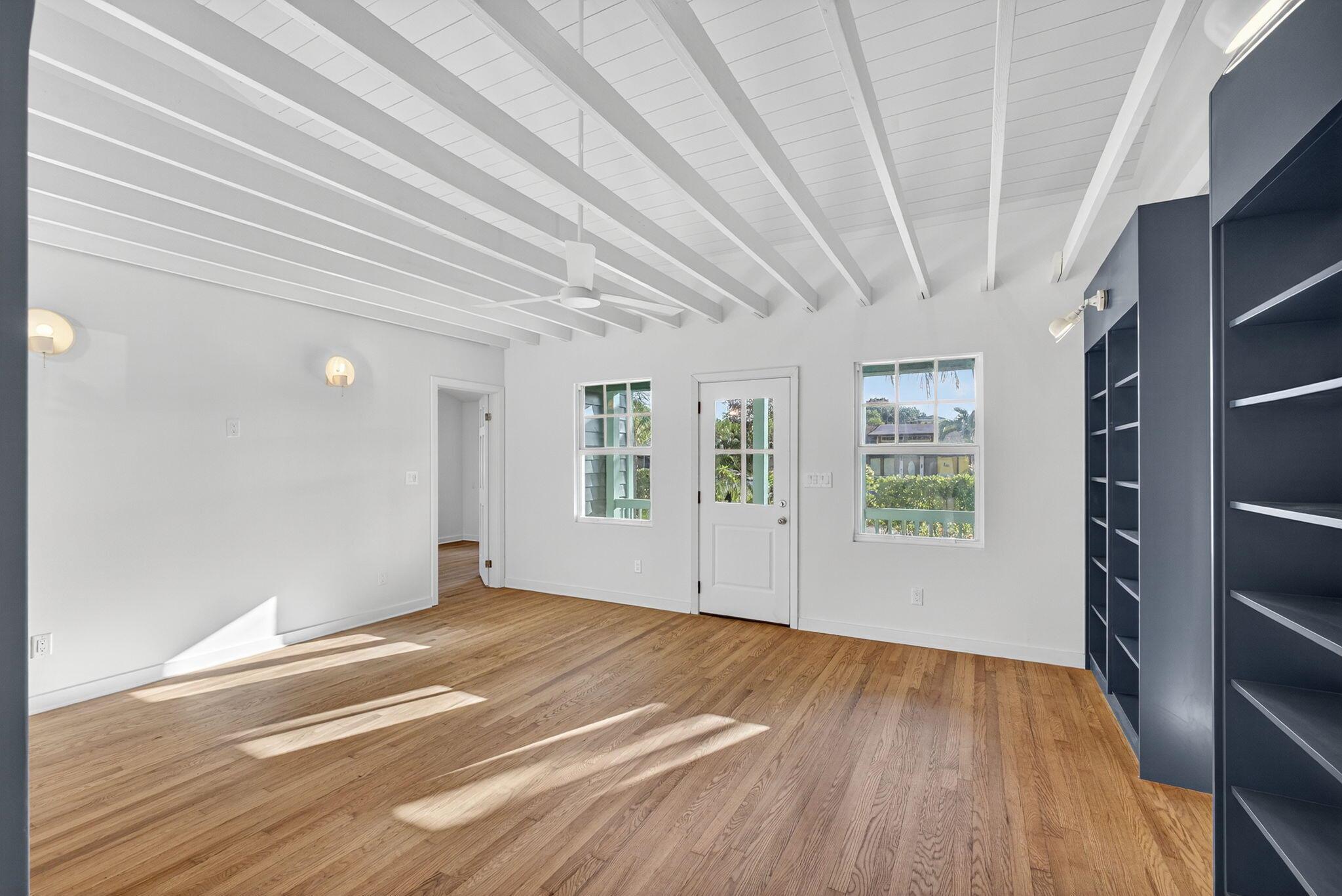This is your opportunity to own a piece of Lake Worth Beach's rich history. This 3 bedroom, 2 bath cottage with a split floor plan has been completely renovated top to bottom, all with permits. Just move in and enjoy! No detail has been overlooked in this exceptional fresh and modern renovation. Its location is prized - only one block from the Intracoastal and Bryant Park waterfront, 3 blocks from town and a half mile from the beach. All impact windows and doors. The ceiling in the living room has been opened up to create a vaulted ceiling with open beams. Custom built-in shelves anchor the living room. The custom chef's kitchen with open shelving features a gas range. Gorgeous original wood floors have been preserved and refinished. The primary bedroom wing has a spacious