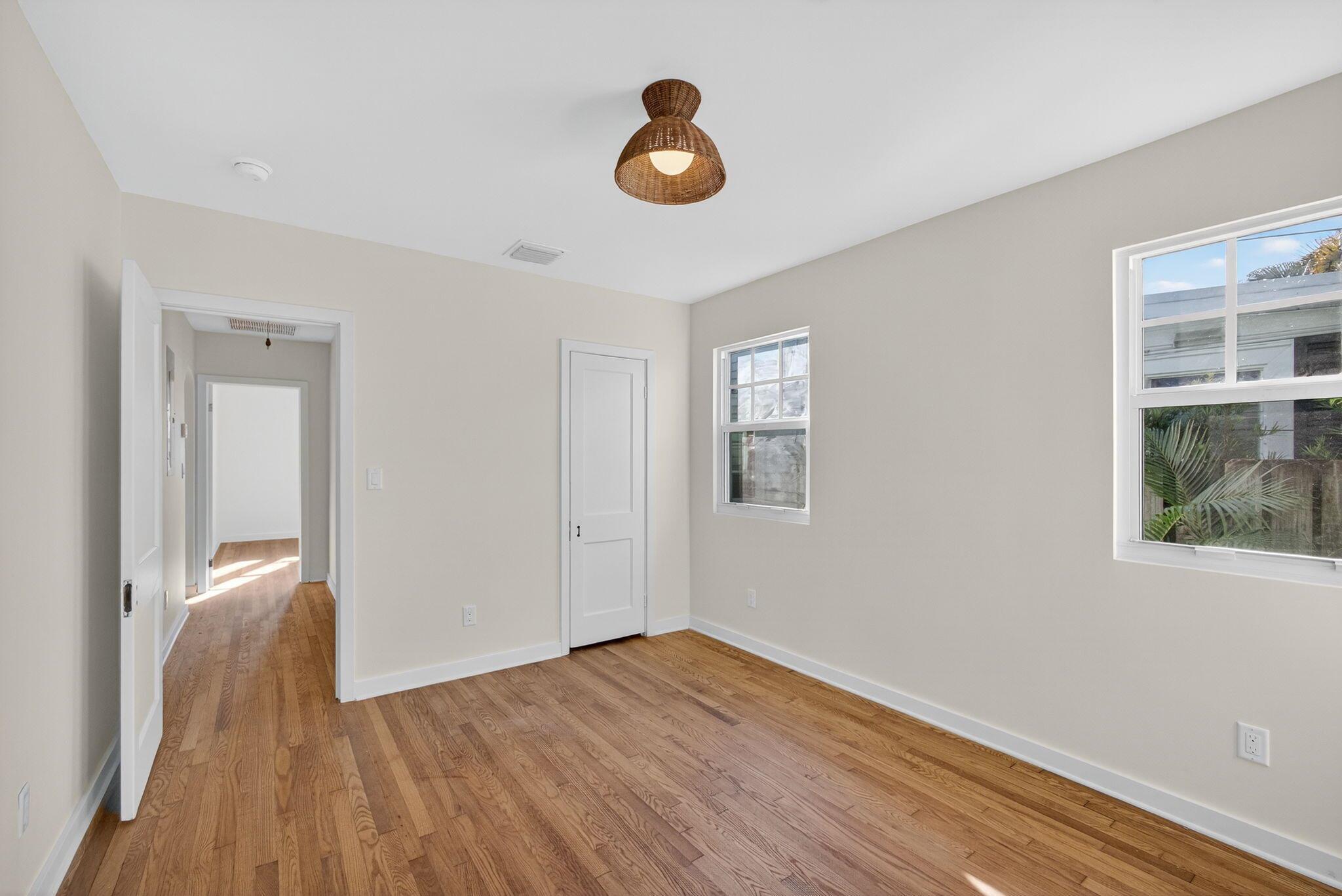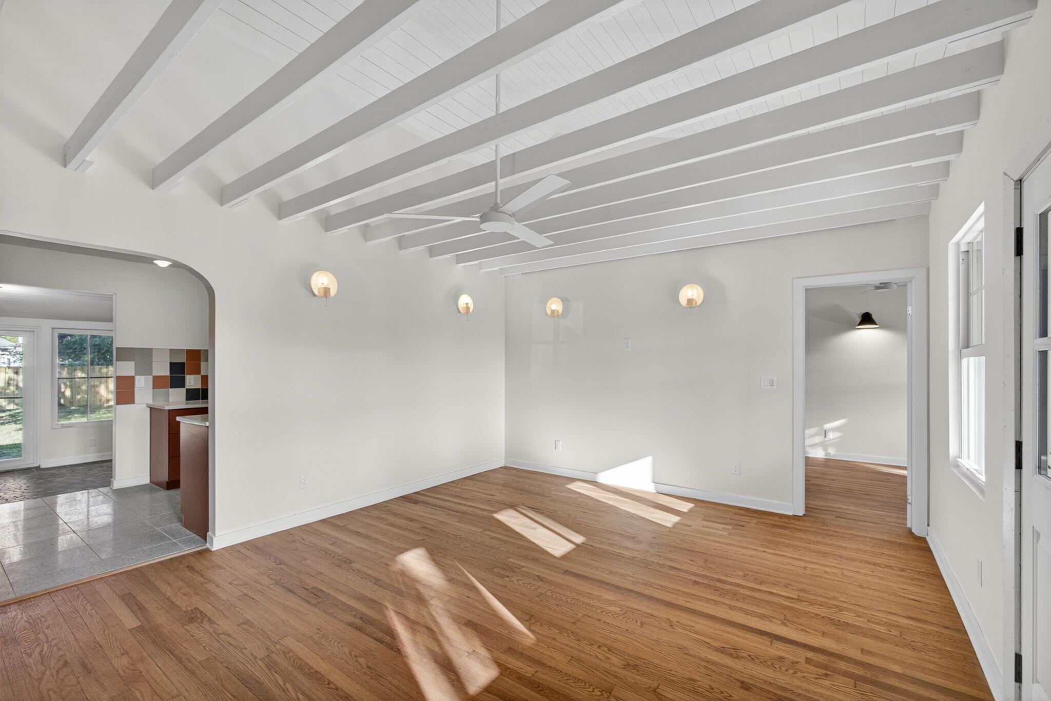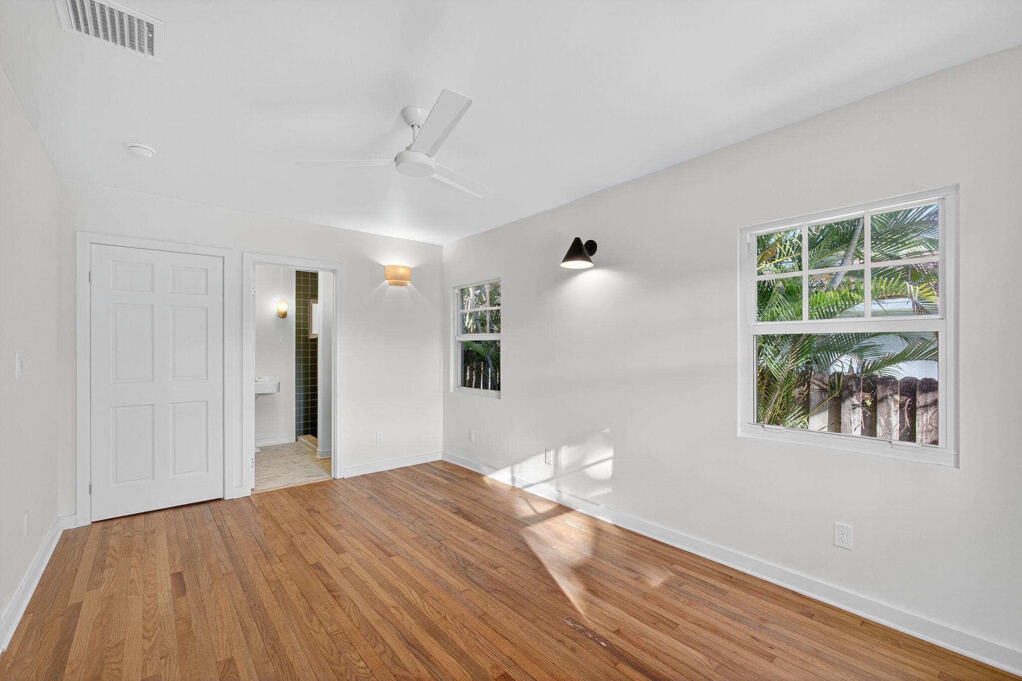 This is your opportunity to own a piece of Lake Worth Beach's rich history. This 3 bedroom, 2 bath cottage with a split floor plan has been completely renovated top to bottom, all with permits. Just move in and enjoy! No detail has been overlooked in this exceptional fresh and modern renovation. Its location is prized - only one block from the Intracoastal and Bryant Park waterfront, 3 blocks from town and a half mile from the beach. All impact windows and doors. The ceiling in the living room has been opened up to create a vaulted ceiling with open beams. Custom built-in shelves anchor the living room. The custom chef's kitchen with open shelving features a gas range. Gorgeous original wood floors have been preserved and refinished. The primary bedroom wing has a spacious