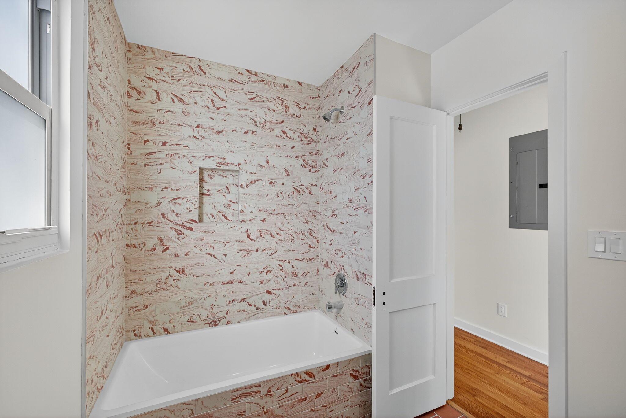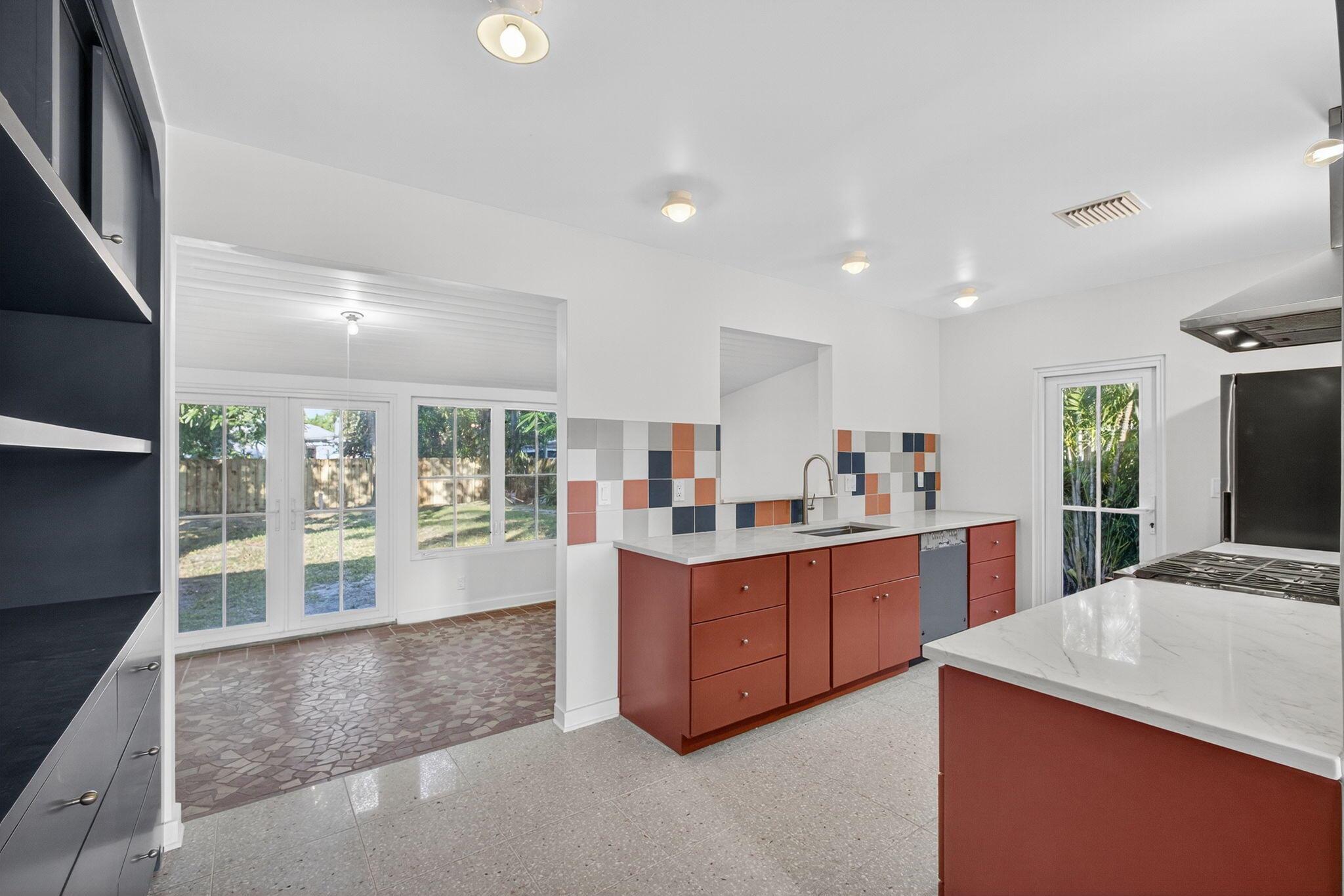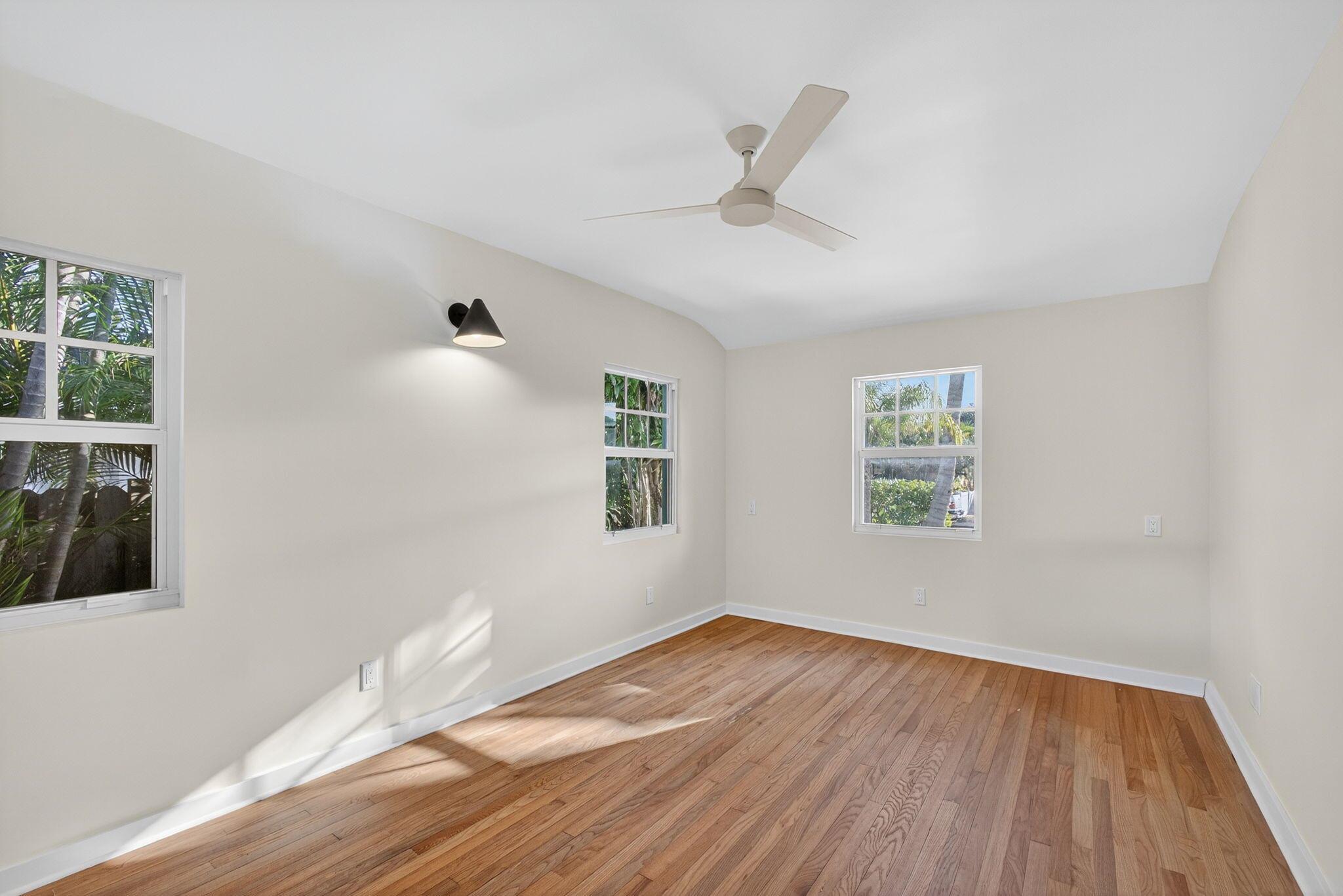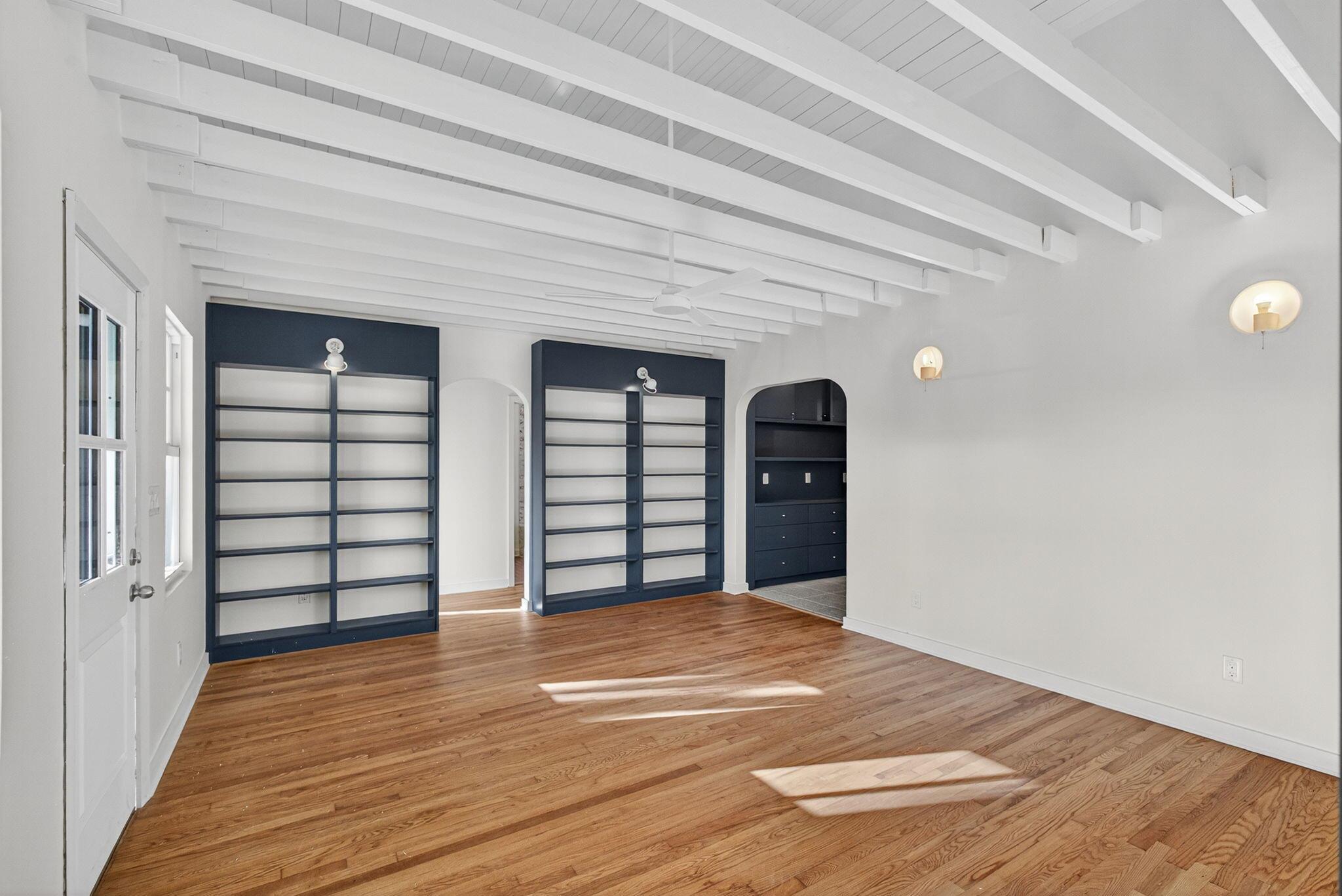 This is your opportunity to own a piece of Lake Worth Beach's rich history. This 3 bedroom, 2 bath cottage with a split floor plan has been completely renovated top to bottom, all with permits. Just move in and enjoy! No detail has been overlooked in this exceptional fresh and modern renovation. Its location is prized - only one block from the Intracoastal and Bryant Park waterfront, 3 blocks from town and a half mile from the beach. All impact windows and doors. The ceiling in the living room has been opened up to create a vaulted ceiling with open beams. Custom built-in shelves anchor the living room. The custom chef's kitchen with open shelving features a gas range. Gorgeous original wood floors have been preserved and refinished. The primary bedroom wing has a spacious