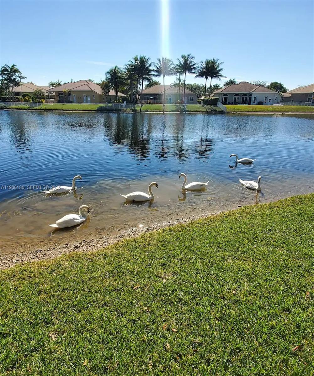 Welcome to this beautifully maintained 6-bedroom, 4-bath of which 2 of the bedrooms are located downstairs with a full shower and private entrance. Home has a spacious 2-car garage, perfectly nestled in a vibrant, amenity-rich community. Thoughtfully updated for modern living, it features impact windows and doors installed within the past year and a newer AC system for year-round comfort and efficiency. Enjoy the convenience of brand-new Samsung appliances, washer, dryer, and refrigerator, all less than six months old. A newly added sprinkler system keeps the lush landscaping looking pristine with minimal effort. Step outside to a serene lakefront backyard, perfect for peaceful evenings or hosting friends and family. With its spacious interiors, quality upgrades, and tranquil water views, this home is the perfect blend of comfort, style, and the best of Florida living.