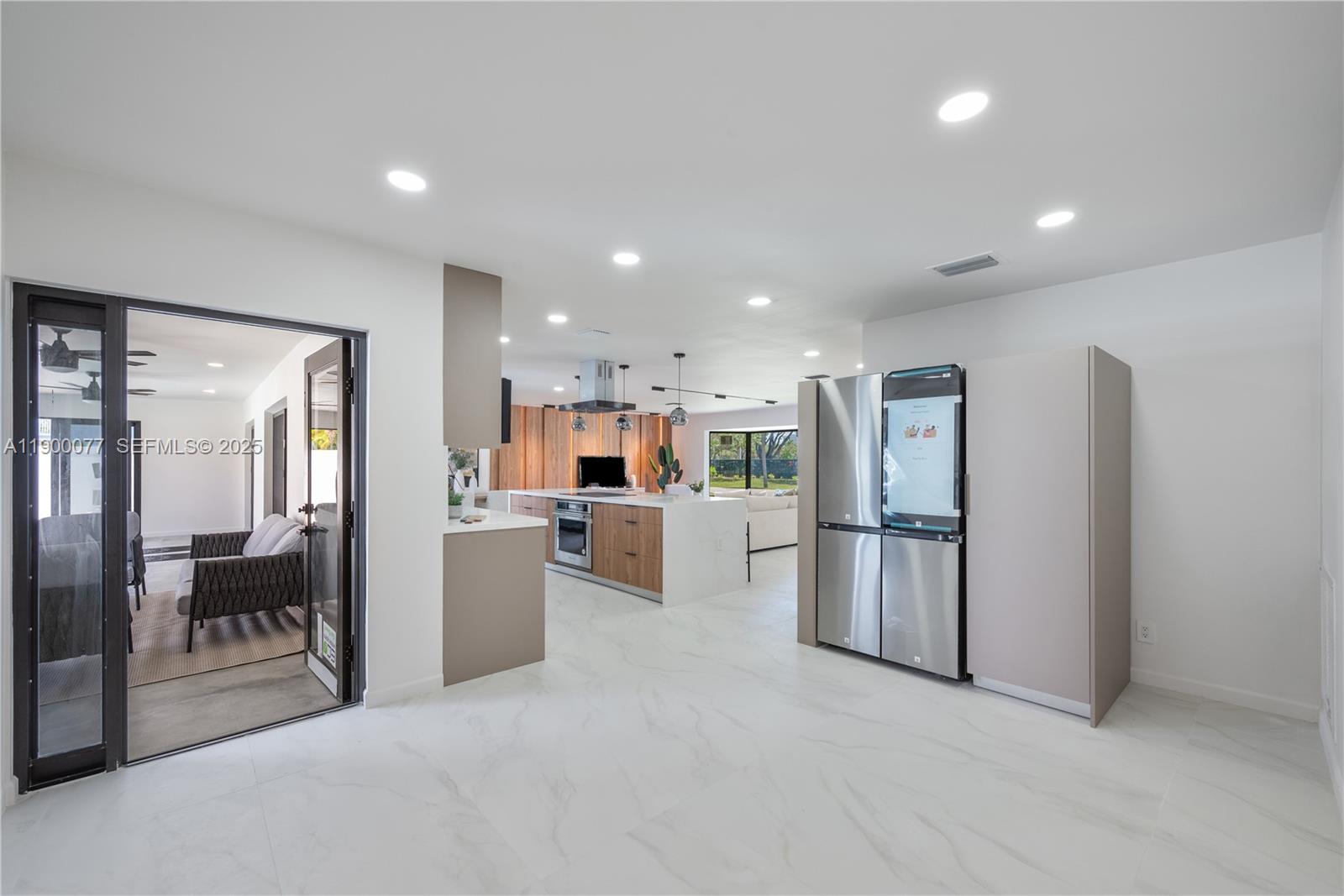 This stunning, completely renovated home has it all! Enjoy worry-free living with new 2025 roof, new plumbing, electrical, HVAC, brand new impact windows/doors. Every upgrade was fully permitted, ensuring quality. This house offers 3 spacious bedrooms, 3 full bathrooms, one of which is a cabana bath. ALL new kitchen with quartz counters and all new top-of-the-line appliances. BEAUTIFUL ALL new tile floors throughout. This home offers a LOT of natural lighting, Florida room under air condition and a beautiful pool area with outdoor kitchen with built-in Weber grill. This home is 100% hurricane ready as well! Full 2 car garage and double driveway for ample parking. Located in one of the most desirable areas. TRULY a must see!