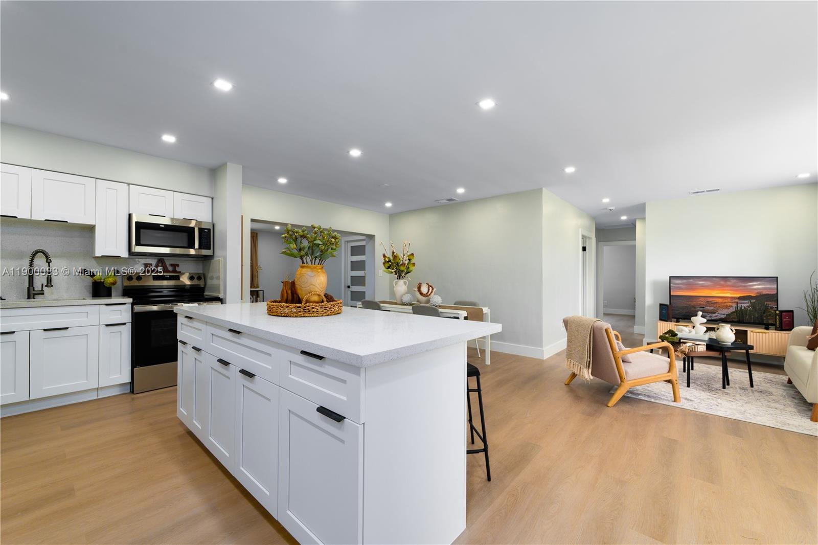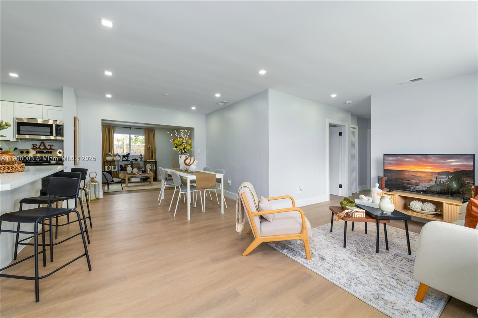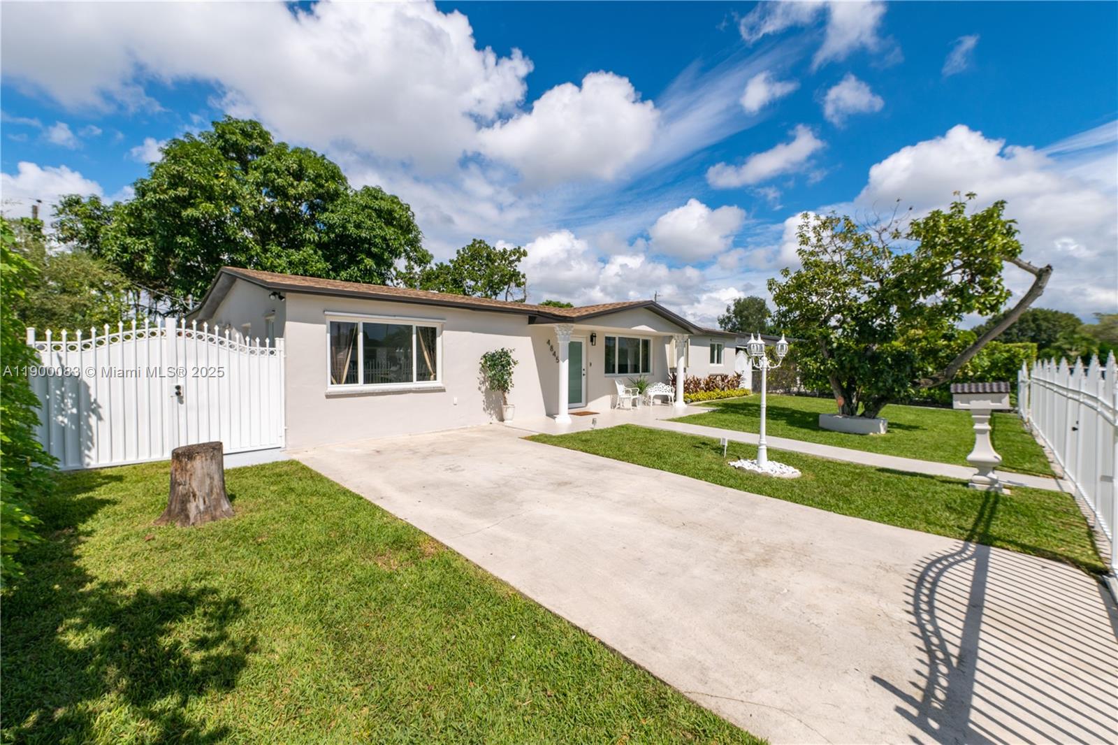 Completely remodeled home with brand new electrical, plumbing, windows with shutters, and impact doors. Open concept layout with a spacious kitchen designed for entertaining, new flooring, brand new bathrooms, and modern appliances. The massive master suite includes a private entrance. The backyard is large with mature fruit trees and plenty of space for gatherings. Roof and A/C are only 3 years old. The property also features a fully remodeled 1 bedroom 1 bath apartment with a private entrance, perfect for in-laws or rental income. This is a must-see property that offers style, comfort, and instant cash flow.