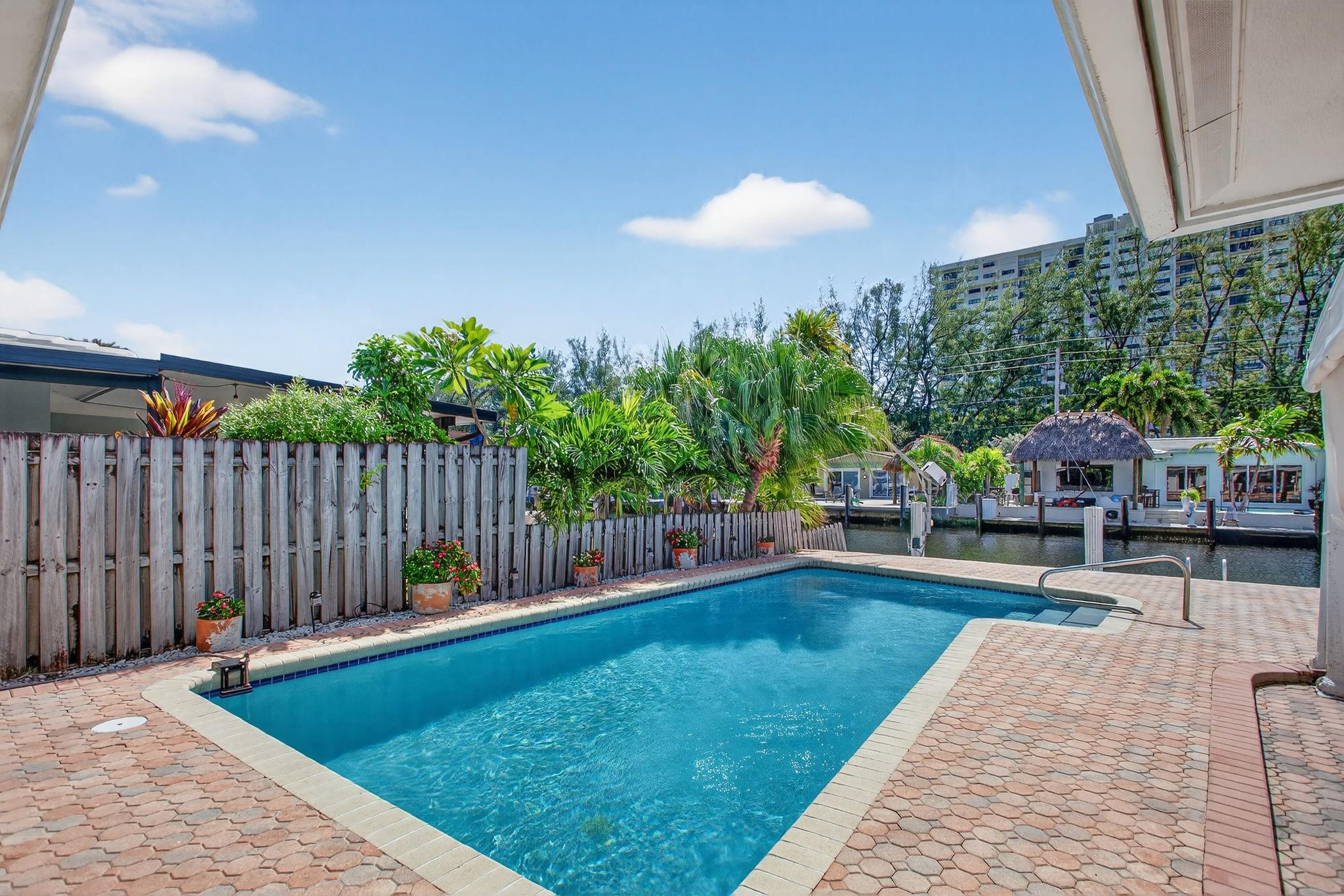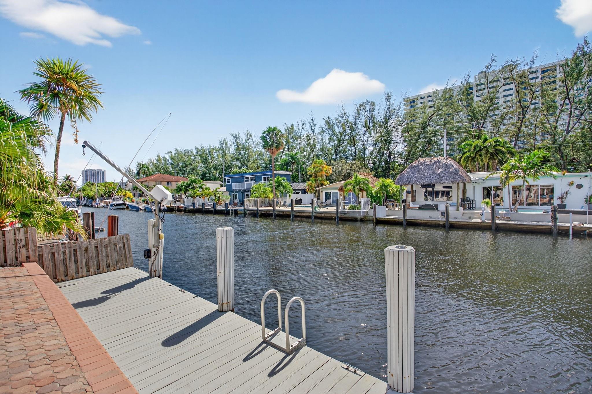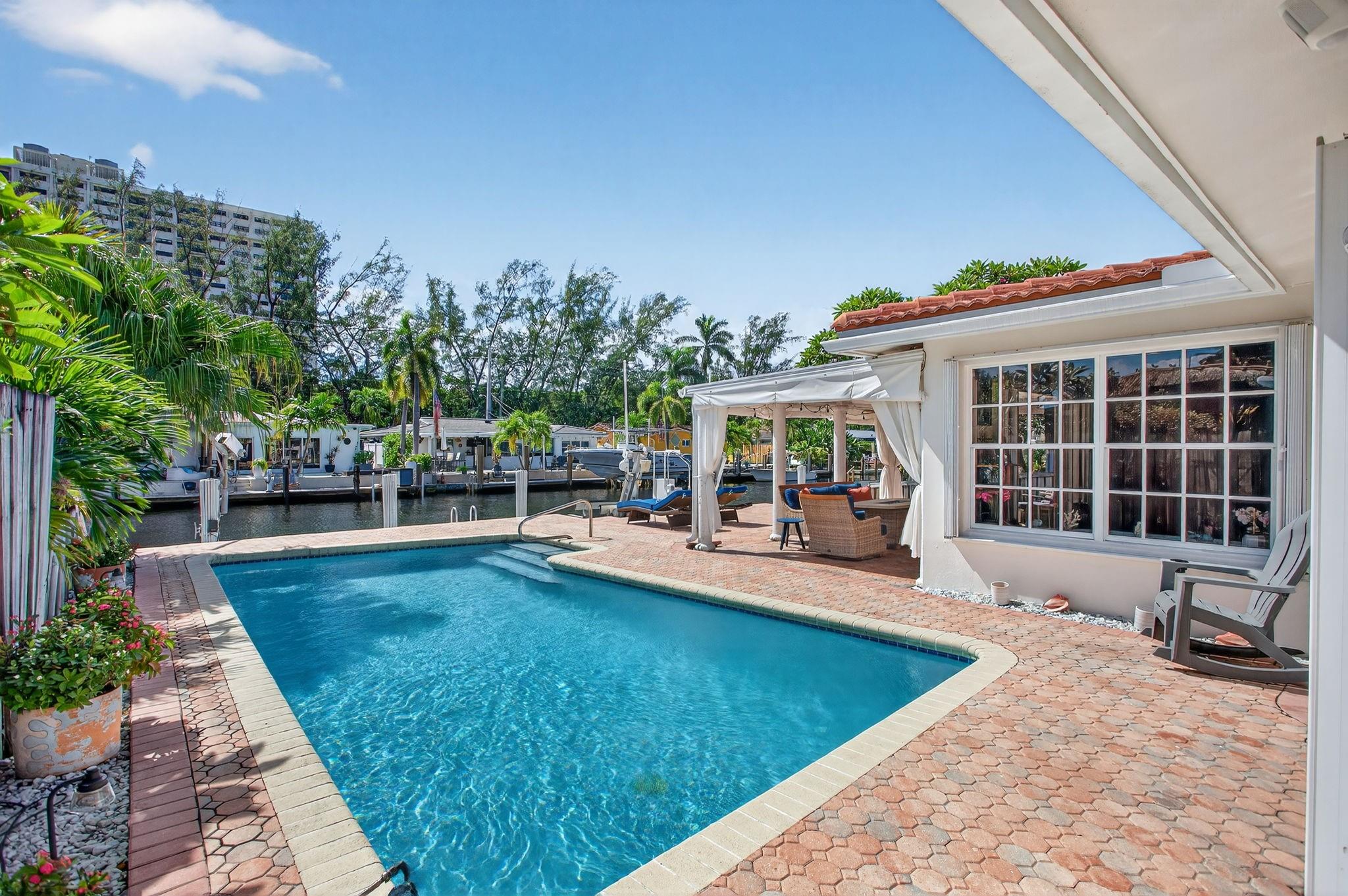 Current lowest Ocean Access waterfront in South Pompano area! 60 ft of waterfront. 14,000 pound boat lift, large dock. South facing pool area. 2 bedroom and 2 baths. French doors lead to the large Cabana area. Inviting circular paver driveway. Marble flooring. Updated kitchen. Entertainers dream. Bring your boat, kayaks, jet ski's, and enjoy the South Florida waterfront living! 1 block to Ft Lauderdale. Visit nearby Pompano Beach, one of the widest in Broward County. Control the sprinkler system, house lighting, and a/c from your smart phone or tablet. One of the largest entertaining pool and patios in the area. Travel down the street and see the amazing homes being built. Roof 2022, A/c 2021, seawall inspected/sealed 2024, pool resurfaced 2021.