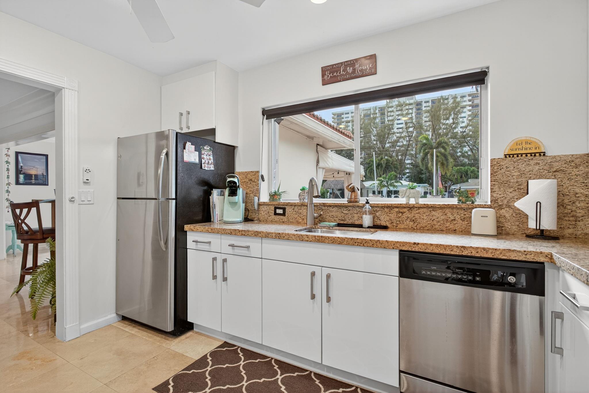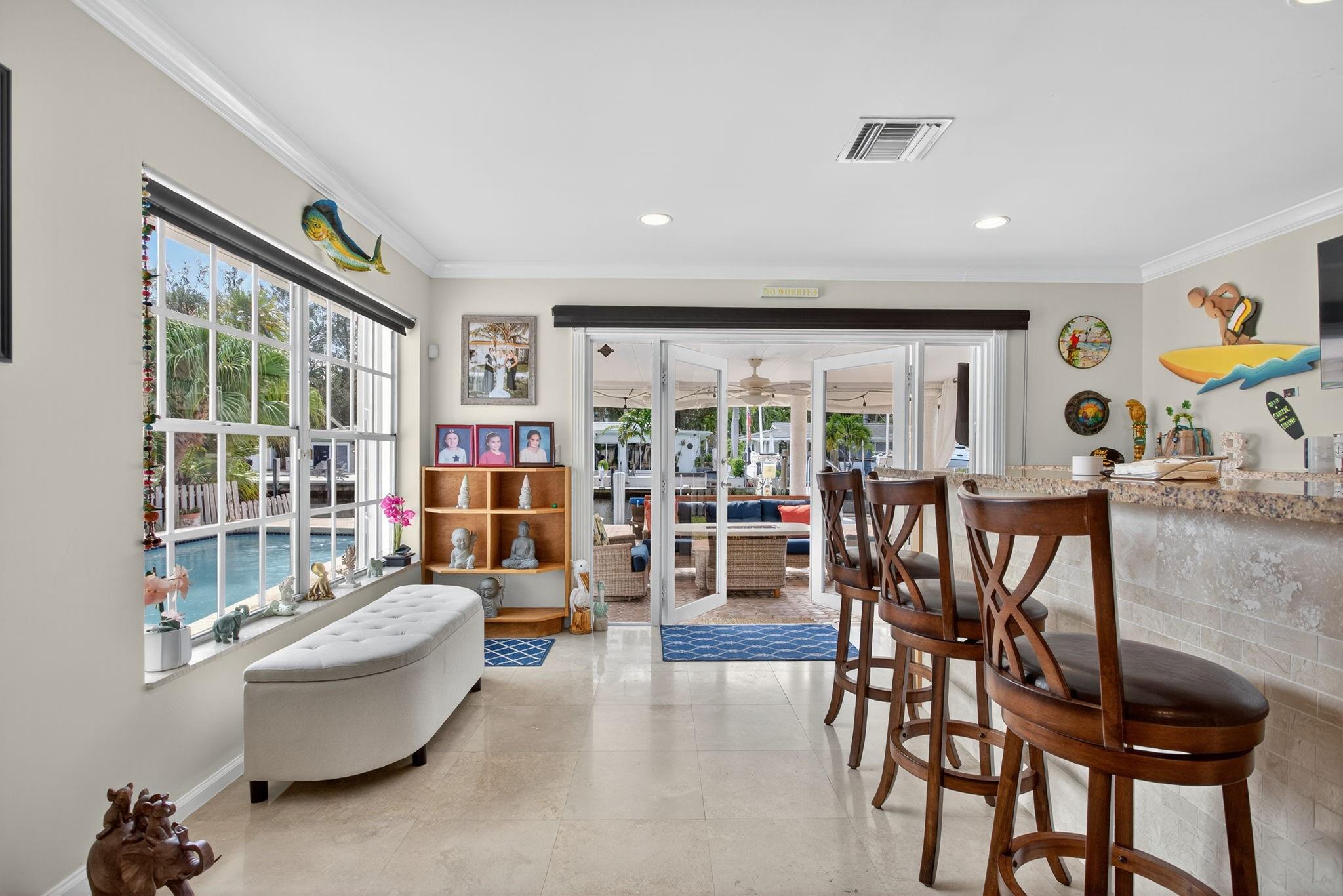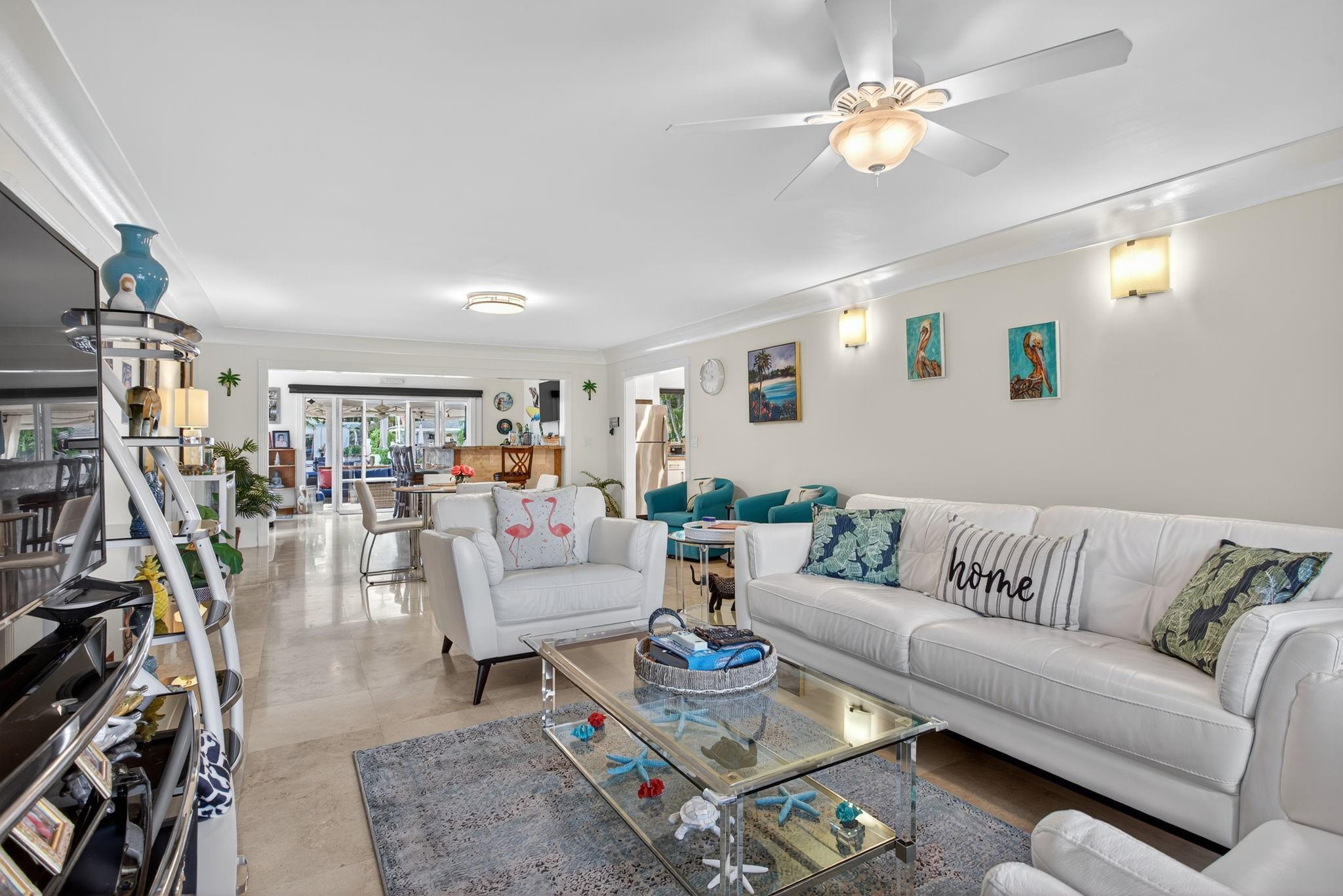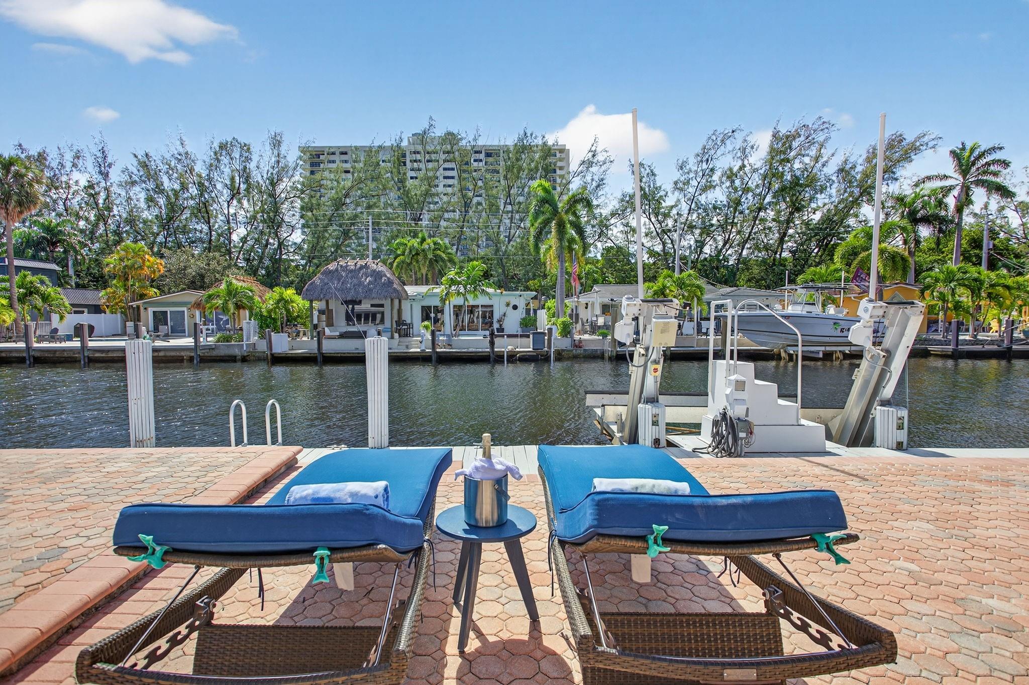 Current lowest Ocean Access waterfront in South Pompano area! 60 ft of waterfront. 14,000 pound boat lift, large dock. South facing pool area. 2 bedroom and 2 baths. French doors lead to the large Cabana area. Inviting circular paver driveway. Marble flooring. Updated kitchen. Entertainers dream. Bring your boat, kayaks, jet ski's, and enjoy the South Florida waterfront living! 1 block to Ft Lauderdale. Visit nearby Pompano Beach, one of the widest in Broward County. Control the sprinkler system, house lighting, and a/c from your smart phone or tablet. One of the largest entertaining pool and patios in the area. Travel down the street and see the amazing homes being built. Roof 2022, A/c 2021, seawall inspected/sealed 2024, pool resurfaced 2021.