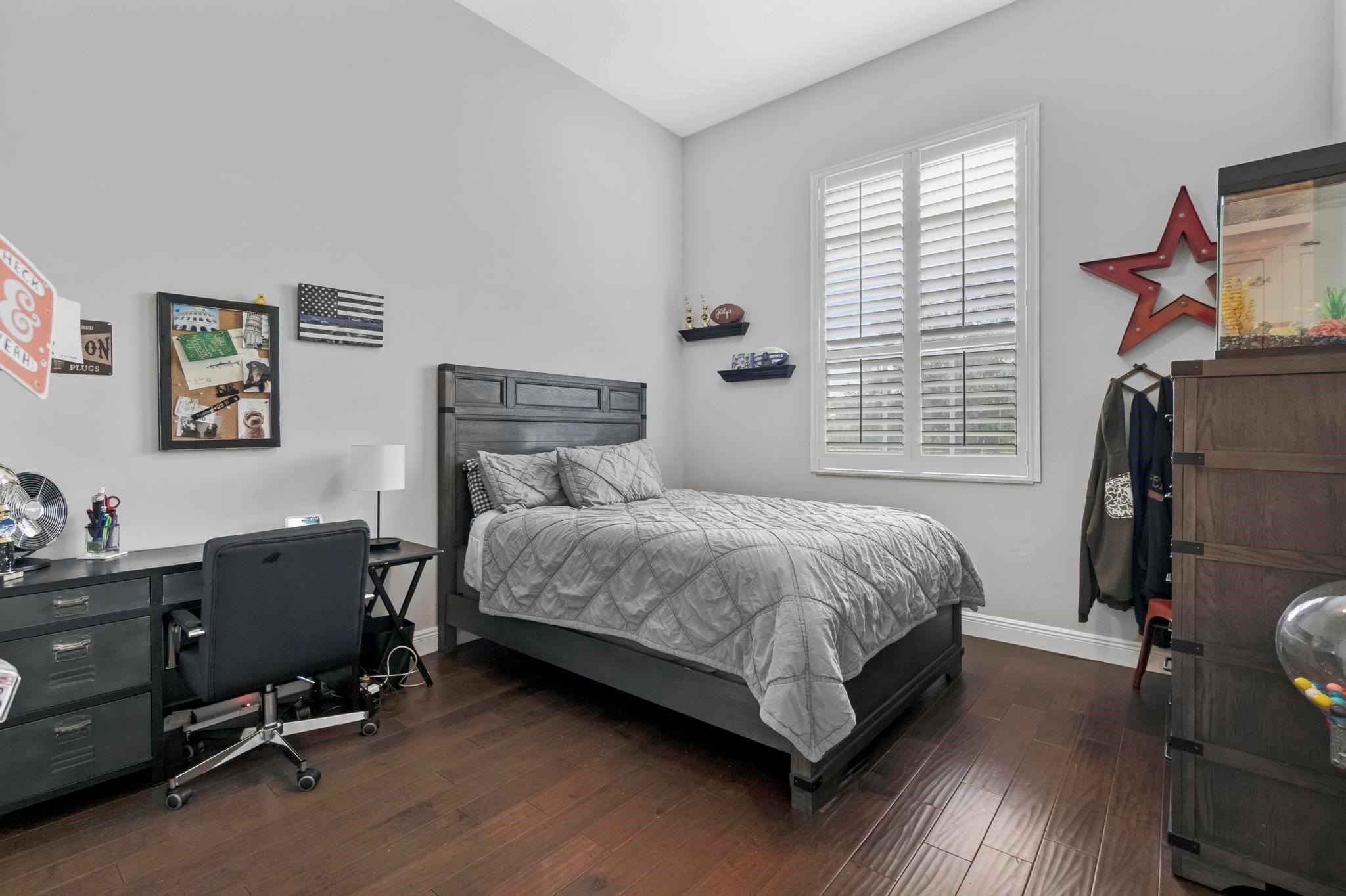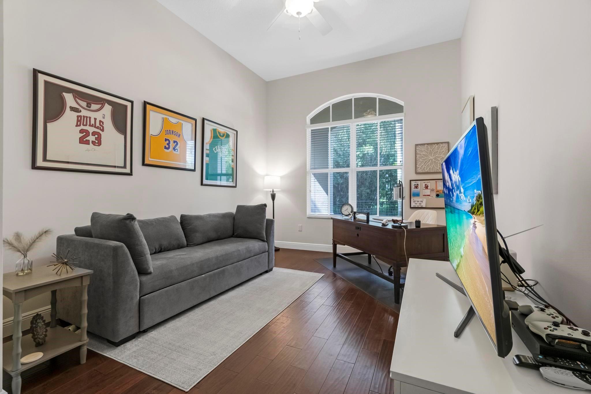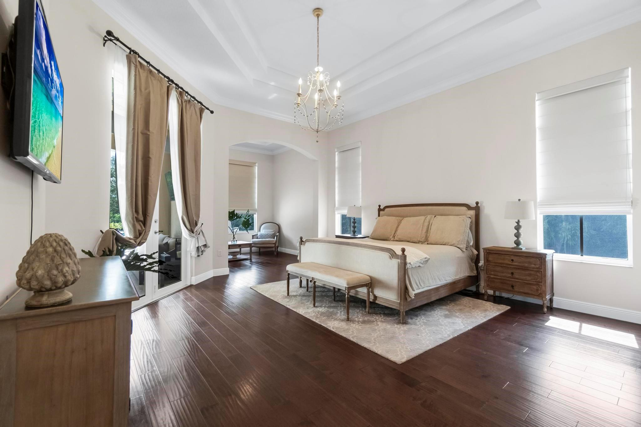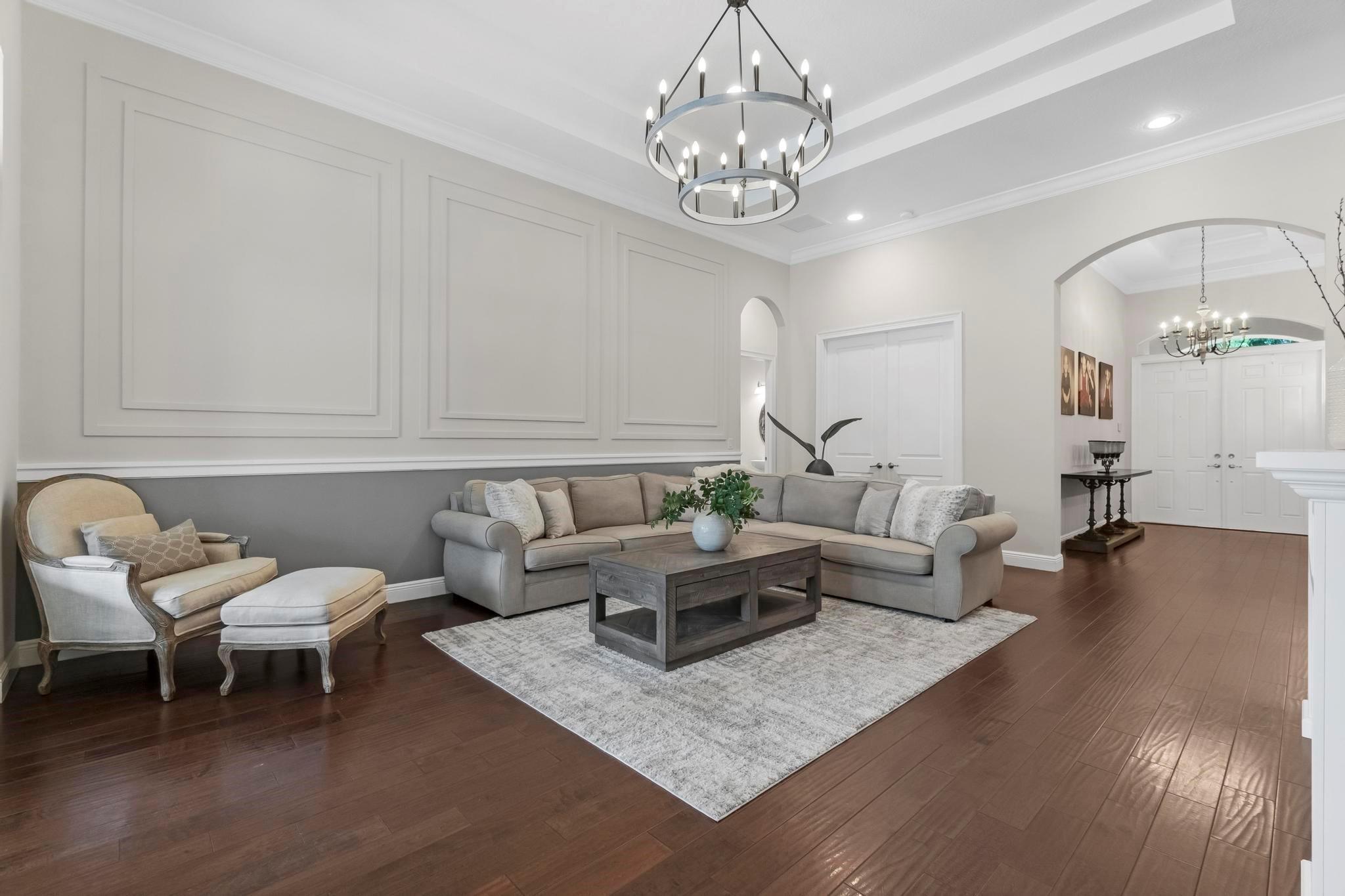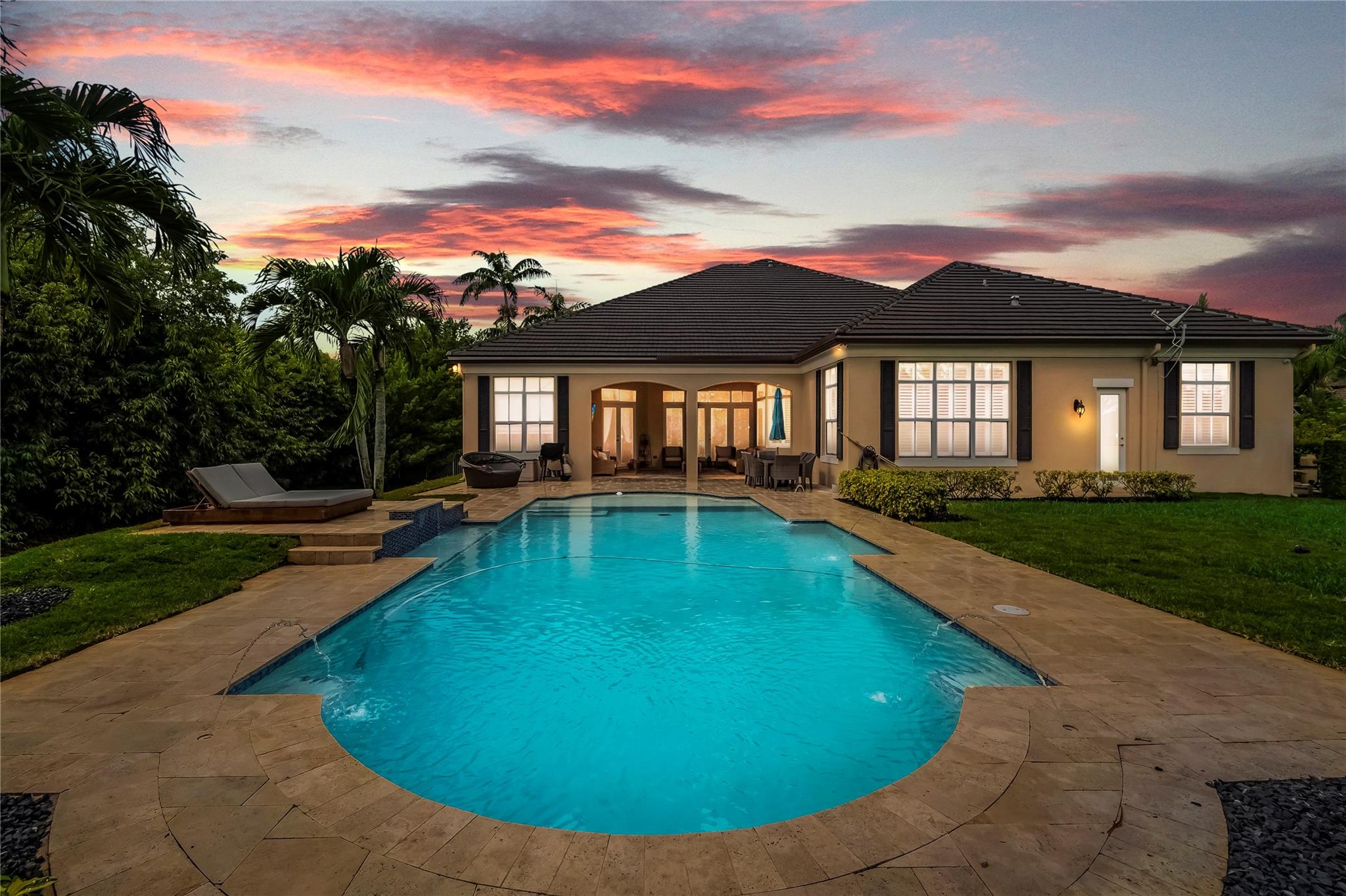 Welcome to Provence, a gated estate community in desirable Davie. This 4 bedroom 3.5 bath + office semi-custom home offers the perfect blend of luxury & comfort. Impact windows/doors, hardwood floors, & two family rooms w/ chef's kitchen that includes wood cabinetry, granite counters, walk-in pantry, large island & stainless appliances, including double ovens & electric cooktop. Primary bedroom w/ access to veranda, sitting area, & two generous closets. The en-suite bath has separate vanities, soaking tub, separate shower & private lavatory. A resort-style backyard w/shaded patio overlooking the fenced backyard, saltwater pool w/ fountains surrounded by travertine pavers. Excellent schools & convenient proximity to highways. NEW roof 2021. This property is an ideal choice for families!