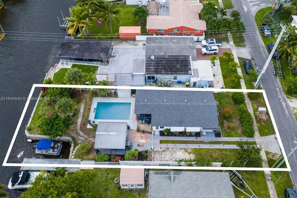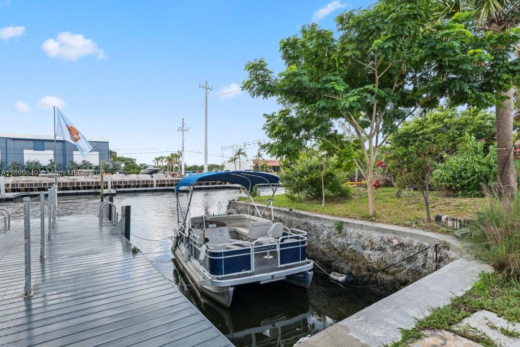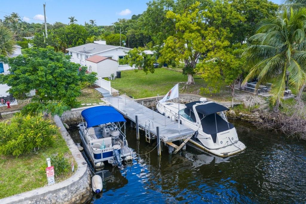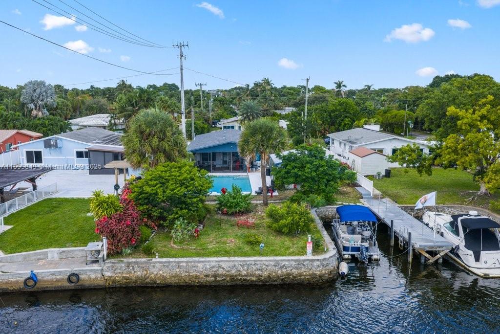 Upscale WATERFRONT home with mid-century flair in the hidden gem of Melaleuca Gardens! Enjoy total privacy on a spacious lot with an open concept layout, marble floors, high-end European cabinets, and massive windows flooding the space with natural light. Versatile den with attached bath can easily convert to a 2nd bedroom. Kitchen is perfect for entertaining with ample storage. Remodel in the last few years include roof, paint, impact/soundproof windows & doors, electrical panel, and A/C ducts, Heated pool and water heater. Relax on the screened porch or dock your boat (fits 45'+) at the shared dock with 100 feet of seawall. For boaters - Ocean access minutes to intercoastal and inlet. Beautiful gardens. Boat/RV parking, carport. Close to the airport, shopping, beach, dining & more!