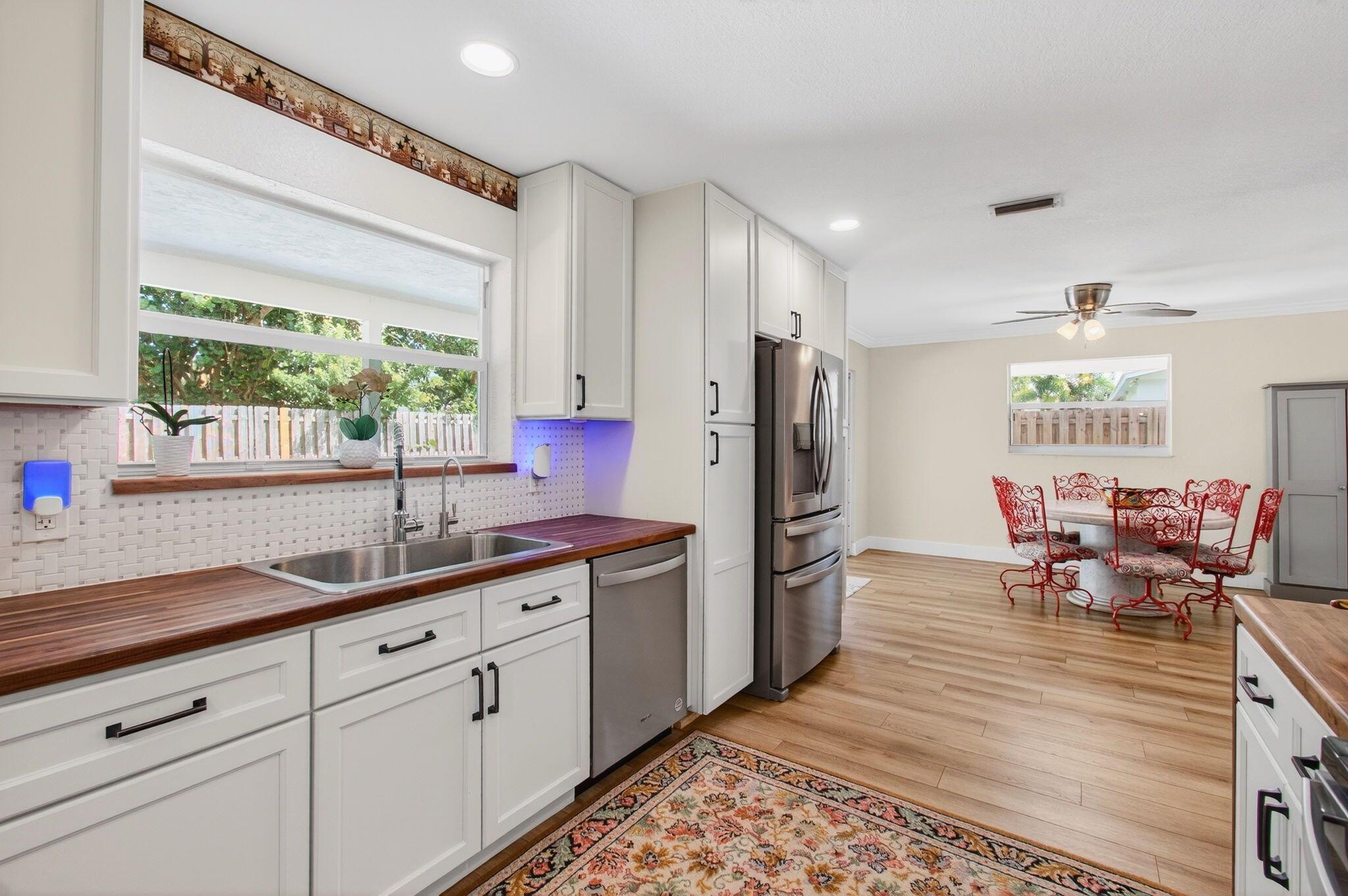 Welcome to 920 Lighthouse Drive, a spacious and updated two-story home located in the highly sought-after Village of North Palm Beach. With over 3,200 sq ft & plenty of room for Boat or RV Storage, this 4-bedroom, 3-bathroom residence offers the perfect combination of comfort, function, and Florida charm.Step inside to discover a thoughtfully updated open-concept kitchen featuring all new appliances, a dedicated breakfast area, and seamless flow into the living and dining spaces. The main floor includes a full cabana bath and a versatile fourth bedroom that also works perfectly as a home office or guest suite. Upstairs, the expansive master suite boasts a fully remodeled spa-like bathroom with a 5x7 walk-in shower, dual vanities, a linen closet, and a large custom walk-in closet.