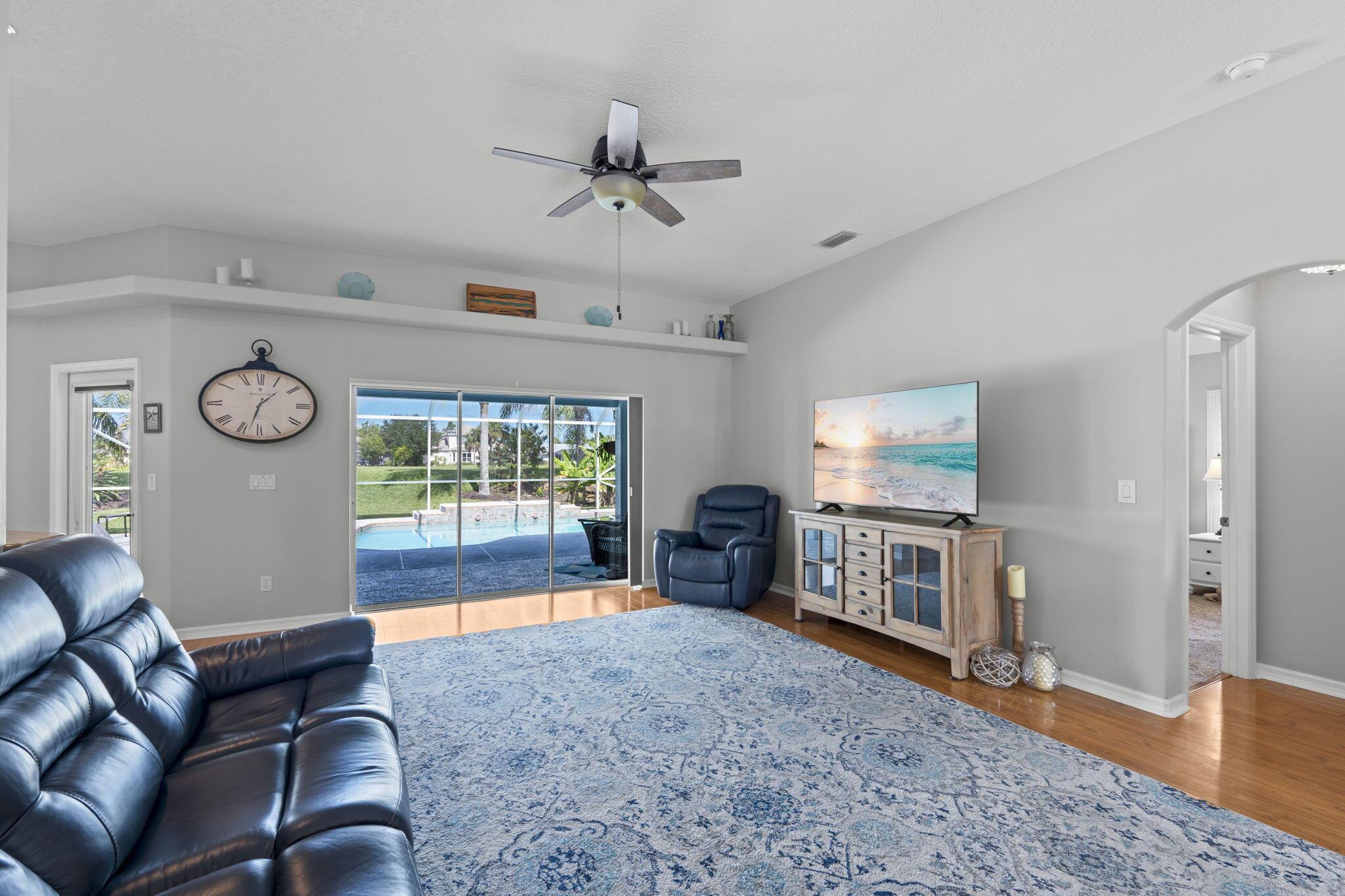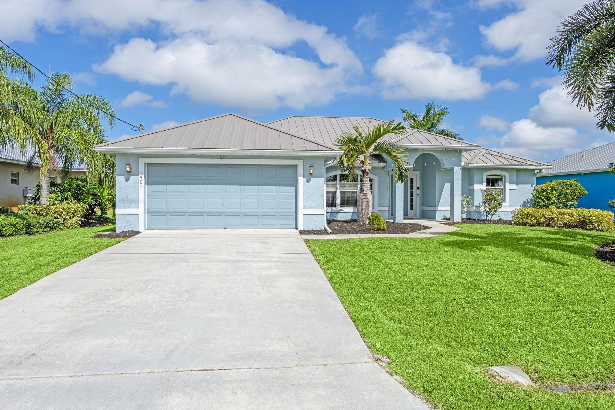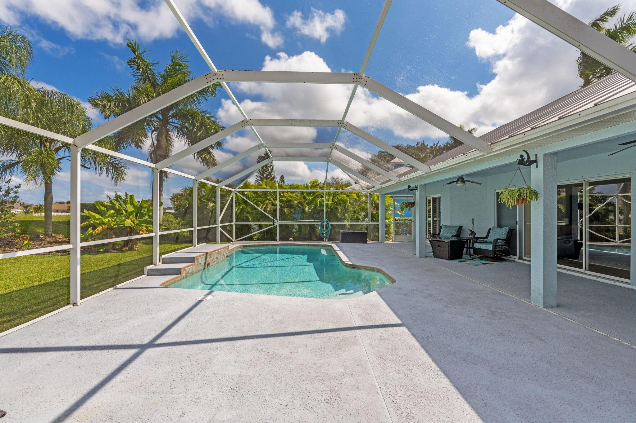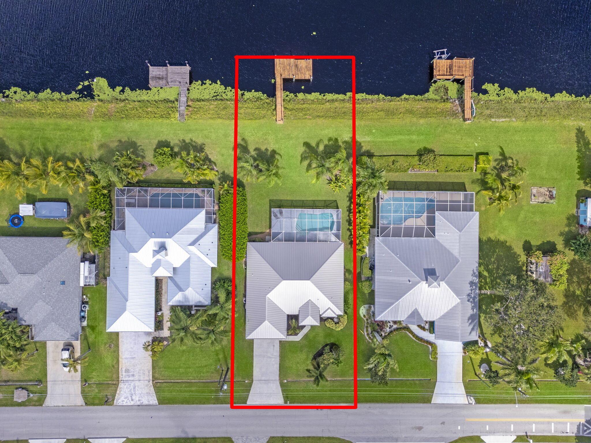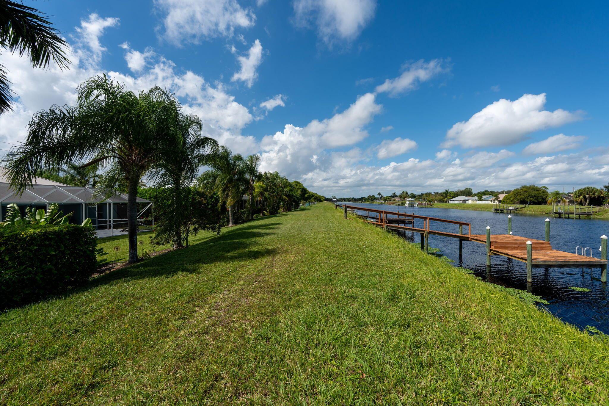 Welcome to your dream waterfront home! This beautiful 3-bedroom, 2-bath residence blends comfort, style, and true Florida living. Enjoy peace of mind with a metal roof, new AC, new water heater, and updated shut-off valves. Inside, the open floor plan, plantation shutters, and freshly painted cabinets and vanities create a bright, modern feel. Step outside to your screened-in heated pool and spacious patio with Pocket Sliding glass doors perfect for relaxing or entertaining. The private 12'x24' dock With 12' Walkway on the C-24 canal for boating enthusiasts. 10 Minutes away from C-24 Canal Park, which offers river and ocean access. With no HOA, a generator power inlet, and a newer washer and dryer, this home has everything you need for easy, worry-free living.