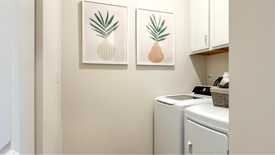 This new two-story home is a modern take on a classic design. The foyer leads to an open floorplan among the kitchen, dining room and living room in a breezy layout that prioritizes functionality, along with an attached patio to offer outdoor moments. Throughout the home is a sprawling upstairs loft made for entertainment and a total of three bedrooms, including the tranquil owner's suite with a full-sized bathroom.
