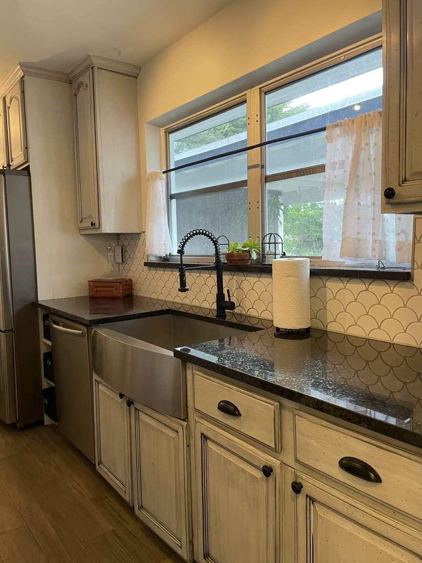 Look Ma! An original North Palm home with no pink/blue/yellow bathrooms! MOVE IN READY! Welcome to this tastefully renovated 3/2 in the heart of North Palm Beach on nearly 1/4 acre. Fully fenced back yard. No HOA! Bring your boat or Rv to park right beside the home. The spacious back yard offers opportunities for a pool and/or addition to the home. Be all buttoned up for a storm with accordion shutters on the sides/back and aluminum panels in the front. The central location of this house has you at the beach or 95 in no time. Shop at a recently & beautifully renovated Publix without ever going through a stoplight. Cosmetic upgrades include granite countertops, stainless steel appliances, completely renovated master bath, new flooring, freshly painted inside/out and upgraded trim/moulding.