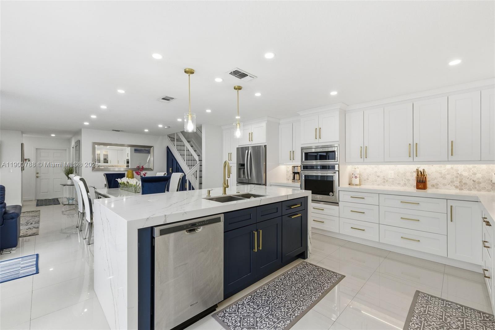 A rare and stunning, fully renovated townhouse in The Hammocks, West Kendall. This spacious 1,790 sq. ft. home offers five bedrooms, with the fifth created from a converted garage featuring a kitchenette and laundry area. Enjoy two elegant full baths and a guest bath, all with modern finishes. Every detail was reimagined with new flooring, a designer kitchen, and stylish fixtures throughout. Hurricane impact windows and doors provide peace of mind, complemented by a new roof and an HOA that covers the exterior and roof for lower insurance costs. The community maintains strong reserves, qualifies for 3% down financing, and offers resort-style amenities with lakefront trails, pools, tennis courts, lush parks, and nearby Publix and The Hammocks Town Center, just a 4-minute drive away.