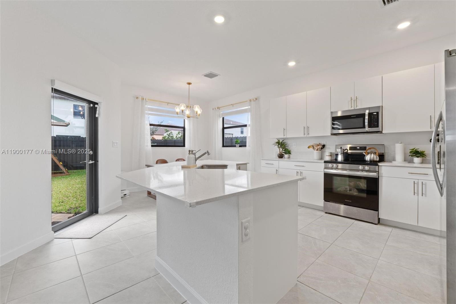 Welcome to this stunning 2-story home in Homestead featuring a 2-car garage with epoxy flooring and a spacious modern layout. Enjoy a bright open-concept first floor with recessed lighting (high hats) throughout, elegant light fixtures, and natural light. The kitchen offers white quartz countertops, stainless steel appliances, and a large island perfect for entertaining. Includes a formal dining area, family room, and separate laundry room. The oversized master suite features a huge walk-in closet and beautifully upgraded bathroom. Step outside to a large fenced backyard with plenty of room for a pool, ideal for gatherings or relaxation. PRICE IS FIRM!!!