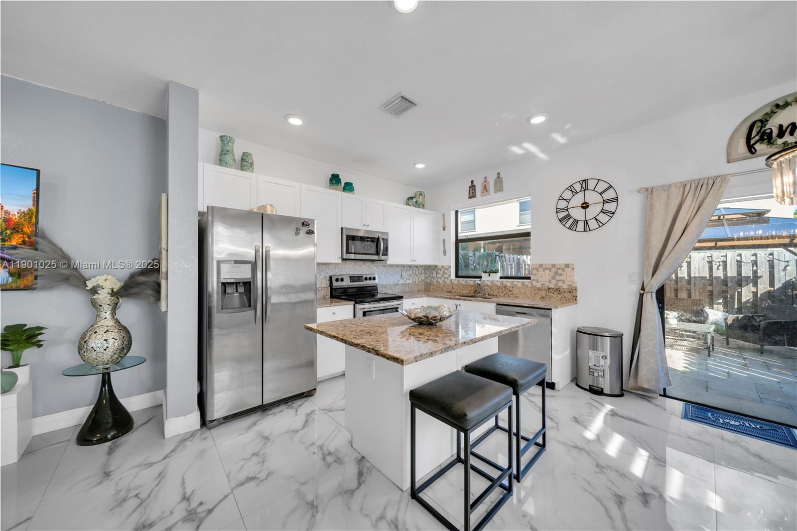 Beautiful 2019-built corner-unit townhouse with very low HOA fees! This spacious 3-bedroom, 3-bath home offers an open-concept layout with a modern kitchen, granite countertops, and a large granite island perfect for entertaining. Fully tiled with laminate in select areas, it blends style and comfort effortlessly. Two bedrooms feature elegant glass-enclosed standing showers. Enjoy outdoor living with a private fenced patio. Washer and dryer conveniently located on the second floor. Tile roof, 2 assigned parking spaces, and move-in ready condition! The low-maintenance HOA fee of $236.44 includes landscaping and rodent pest control. Community amenities include a pool, gym, clubhouse, kids play area and country club—offering resort-style living at an incredible value!