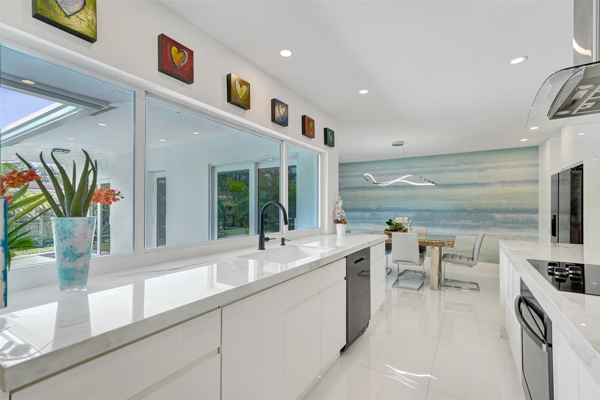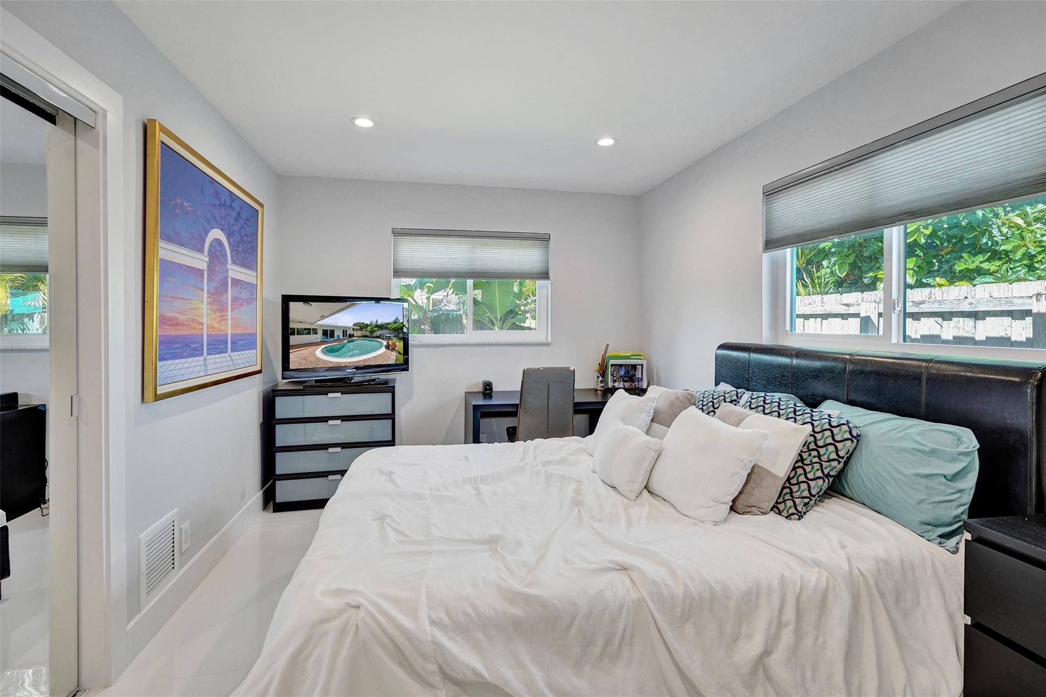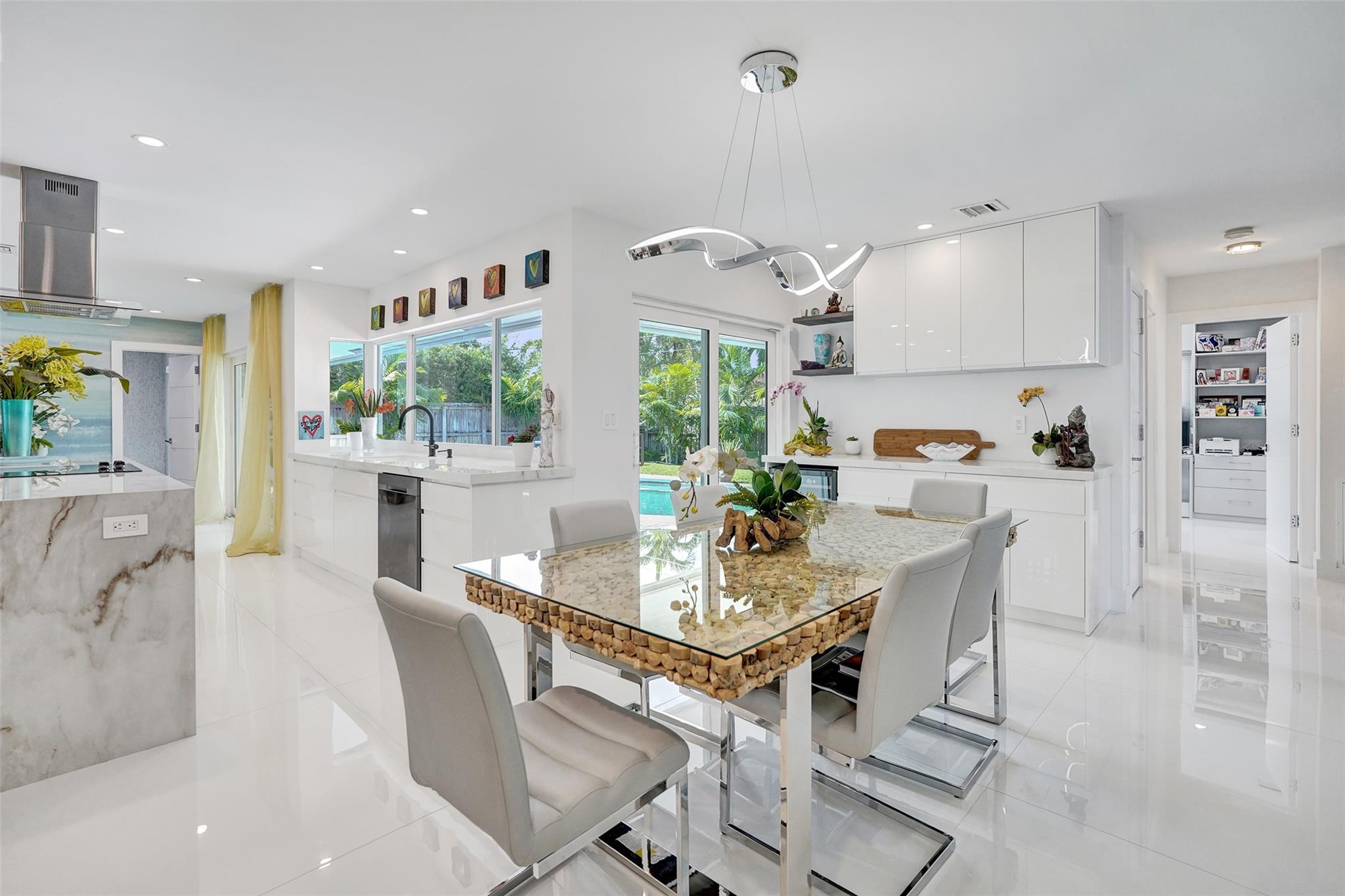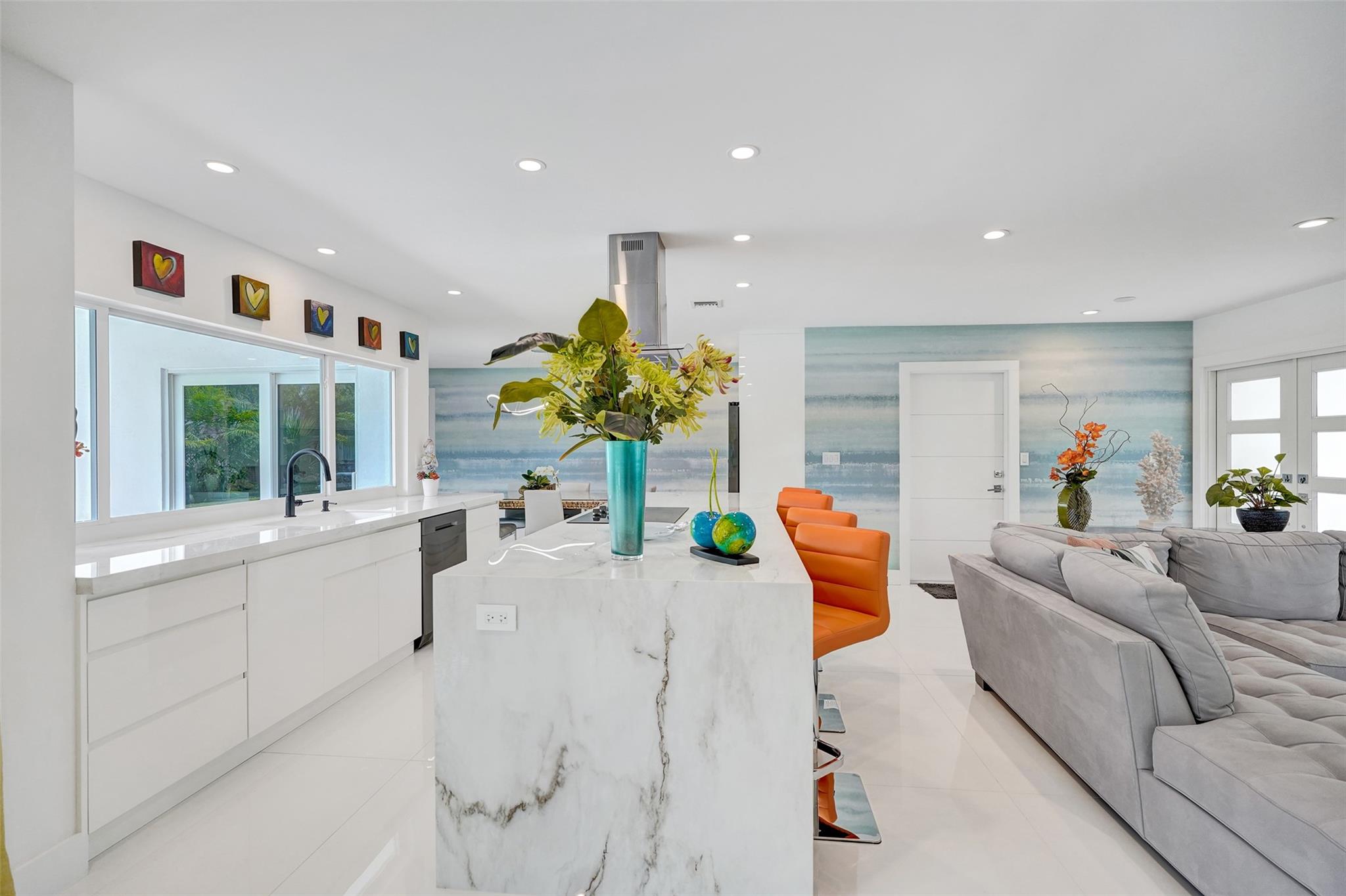 Gorgeous Imperial Point Renovation! This expansive estate home features 4 spacious bedrooms & 3 beautifully appointed bathrooms, including a versatile In-Law/Teen/Rental Suite with private exterior access & kitchenette. Complete interior update in 2021 included open living/kitchen layout with huge island, porcelain waterfall countertops, all bathrooms, white porcelain floors, Philip Jeffrey custom textured wallpaper, custom lighting, AC, electrical, & PVC drainage plumbing. California Closets & custom storage throughout. All impact windows/doors, roof was just professionally cleaned, sealed, & painted. Fresh landscaping front & back, mature Mango tree, auto well irrigation! Large garage with epoxy flooring + even more storage. Sonos, FRAME TV, and portable generator included in sale.