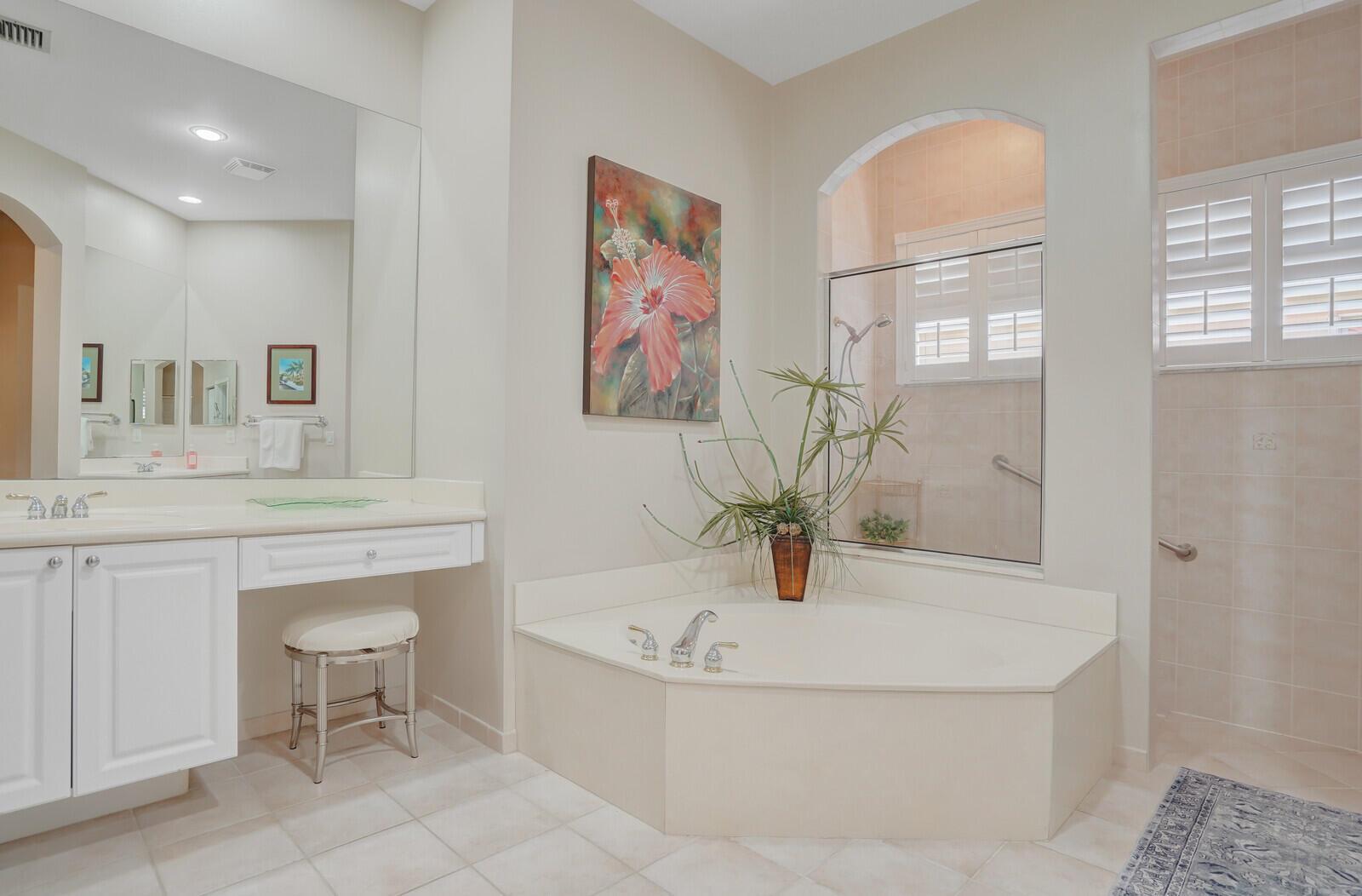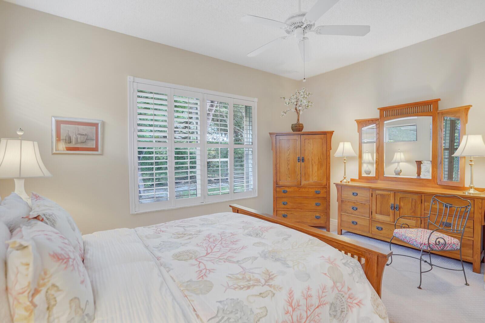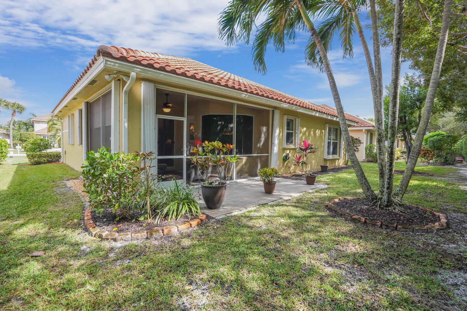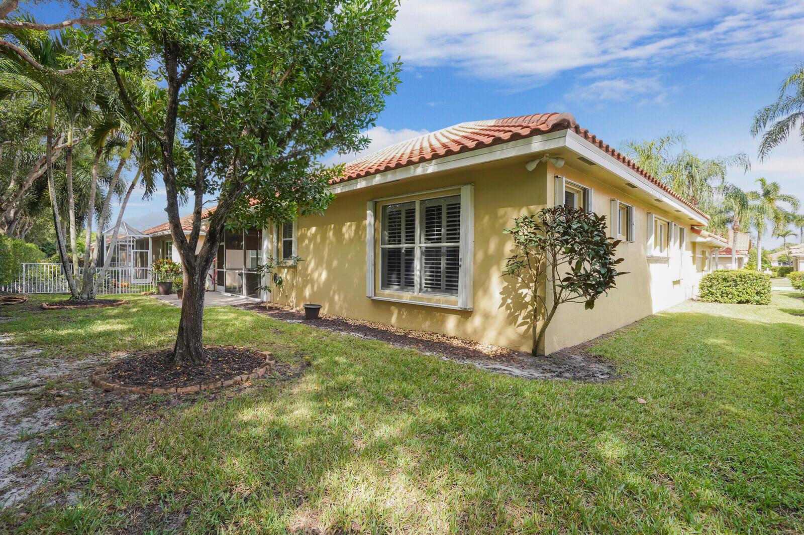 THIS HOME WAS GREATLY LOVED AND WELL MAINTAINED. LOW HOA! NO FLOOD ZONE! 20 MIN TO AIRPORT. EAST LOCATION. THIS 3 BEDROOM BEAUTIFUL HOME HAS THE PERFECT LAYOUT. ALL PLANTATION SHUTTERS THROUGHOUT. THE PRIMARY BEDROOM IS AN EXTREMELY SPACIOUS LARGE SUITE. THE SPLIT BEDROOM LAYOUT OFFERS PRIVACY FOR YOU AND YOUR GUESTS. AN ENGLISH STYLE SCREENED IN PATIO HOSTS BEAUTIFUL LANDSCAPING VIEWS. THE OUTER PAVED PATIO IS A GARDEN OF TRANQUILITY SOUNDS OF BIRDS CHIRPING ALL AROUND. A PEACEFUL & SERENE OUTDOOR SETTING. THIS EXTRAORDINARY HOME COULD BE YOURS. JOG ESTATES IS A GATED 55+ SMALL NEIGHBORHOOD WITH DIFFERENT STYLE HOMES. FRIENDLY & UNIQUE. A PRETTY COMMUNITY POOL & CLUBHOUSE. JOG ESTATES IS NEAR ALL SHOPPING, RESTAURANTS, 5-8 MILES TO CLOSEST BEACH, NEAR ALL HWY'S. CLOSE TO BOCA & DELRAY