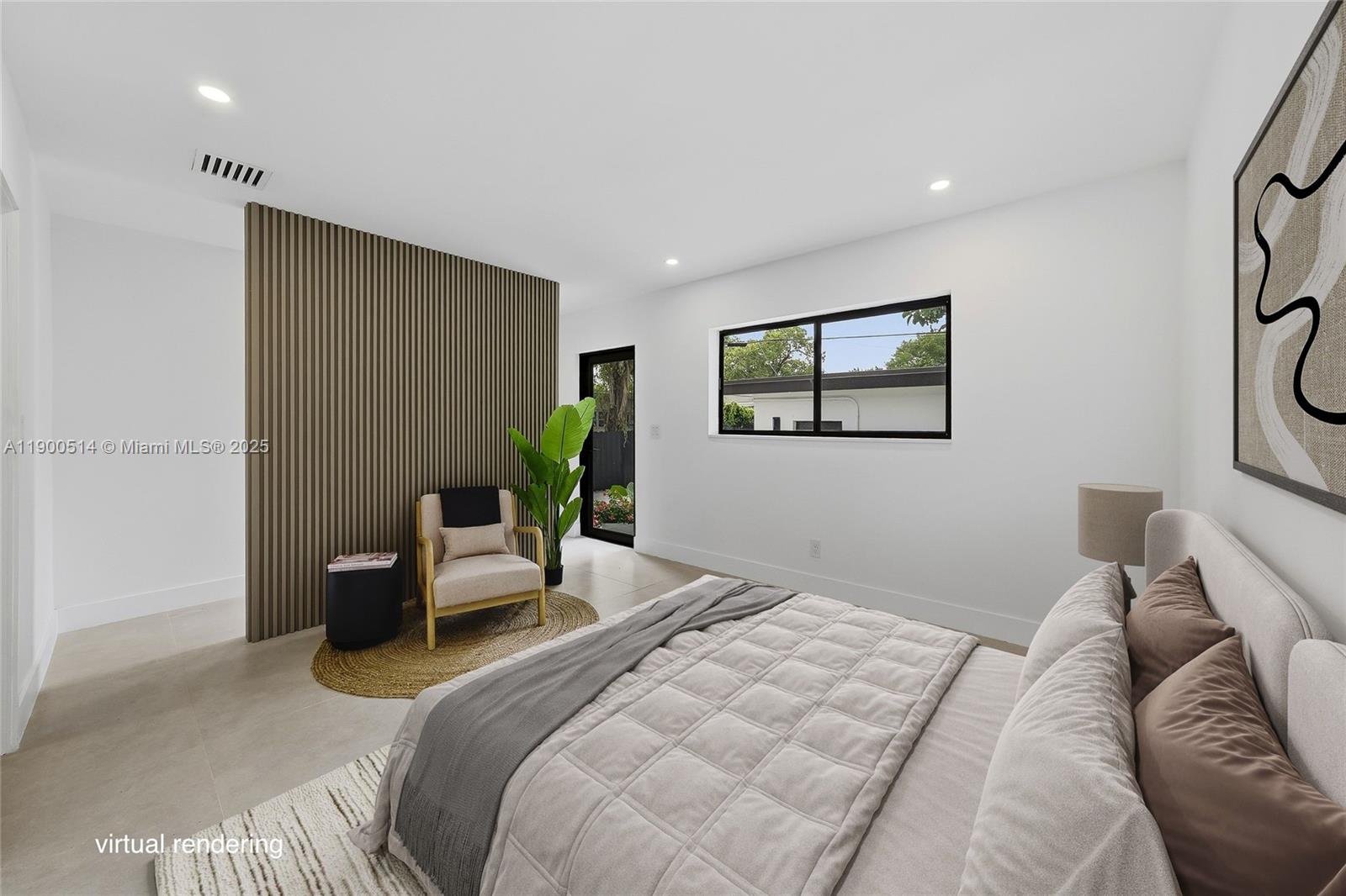 Modern 3-bed, 3-bath home with a detached cottage meticulously renovated. The cottage includes a full bathroom and kitchenette. Upgrades include new plumbing, electrical systems, impact windows, doors, and a 2020 roof in the main house. The bright, open kitchen features quartz countertops and stainless steel appliances. Elegant Italian tile floors throughout. Primary bedroom offers an en-suite bath and a generous walk-in closet. The cottage matches the home's aesthetic and works as a home office, gym, guest house, or rental. A fenced garden offers space to add a pool. Just ten minutes from Brickell, Coral Gables, and The Grove, with easy access to highways, public transportation, and the airport. Shenandoah is increasingly popular among professionals and families seeking space and value near the urban core.