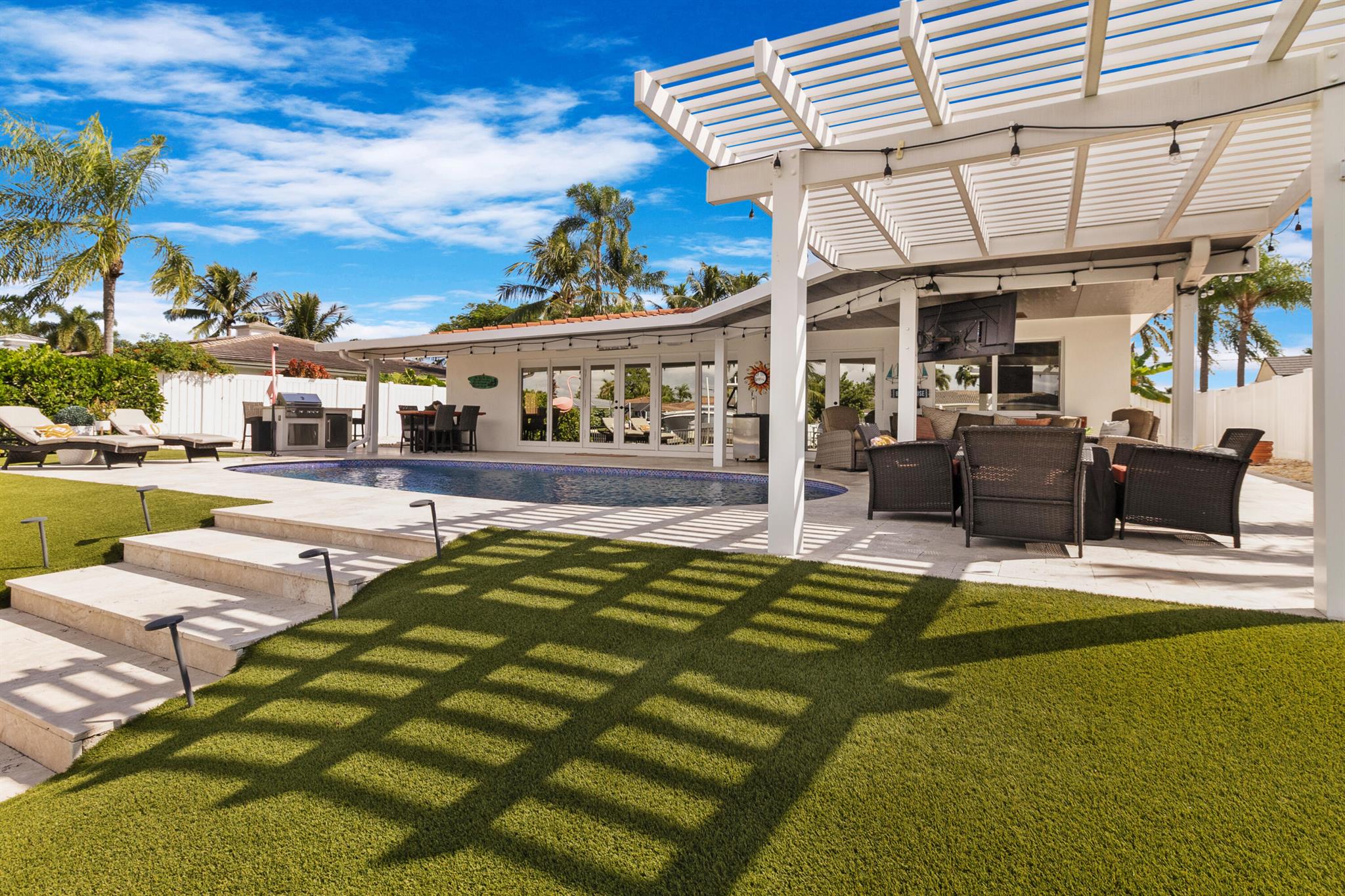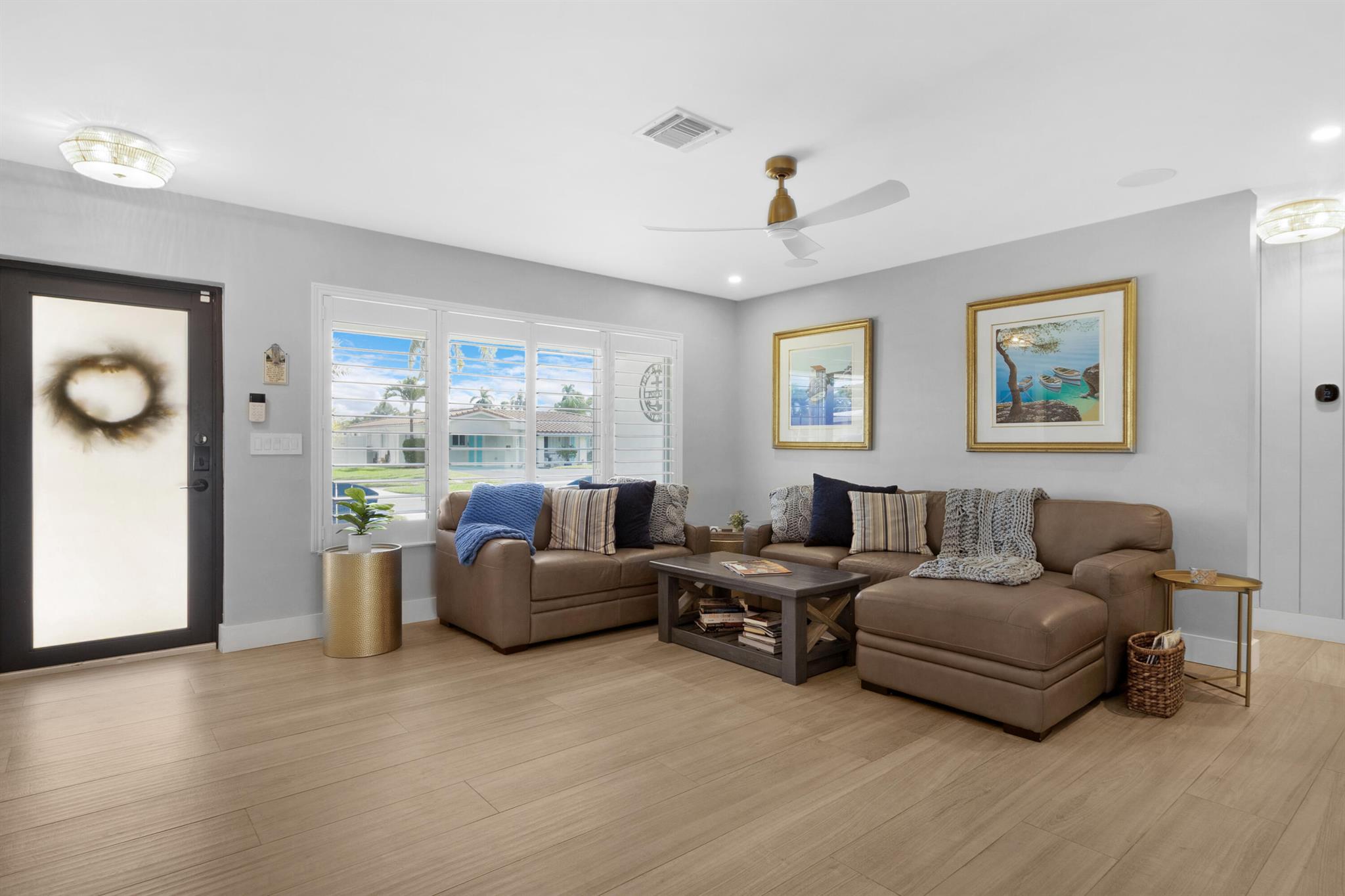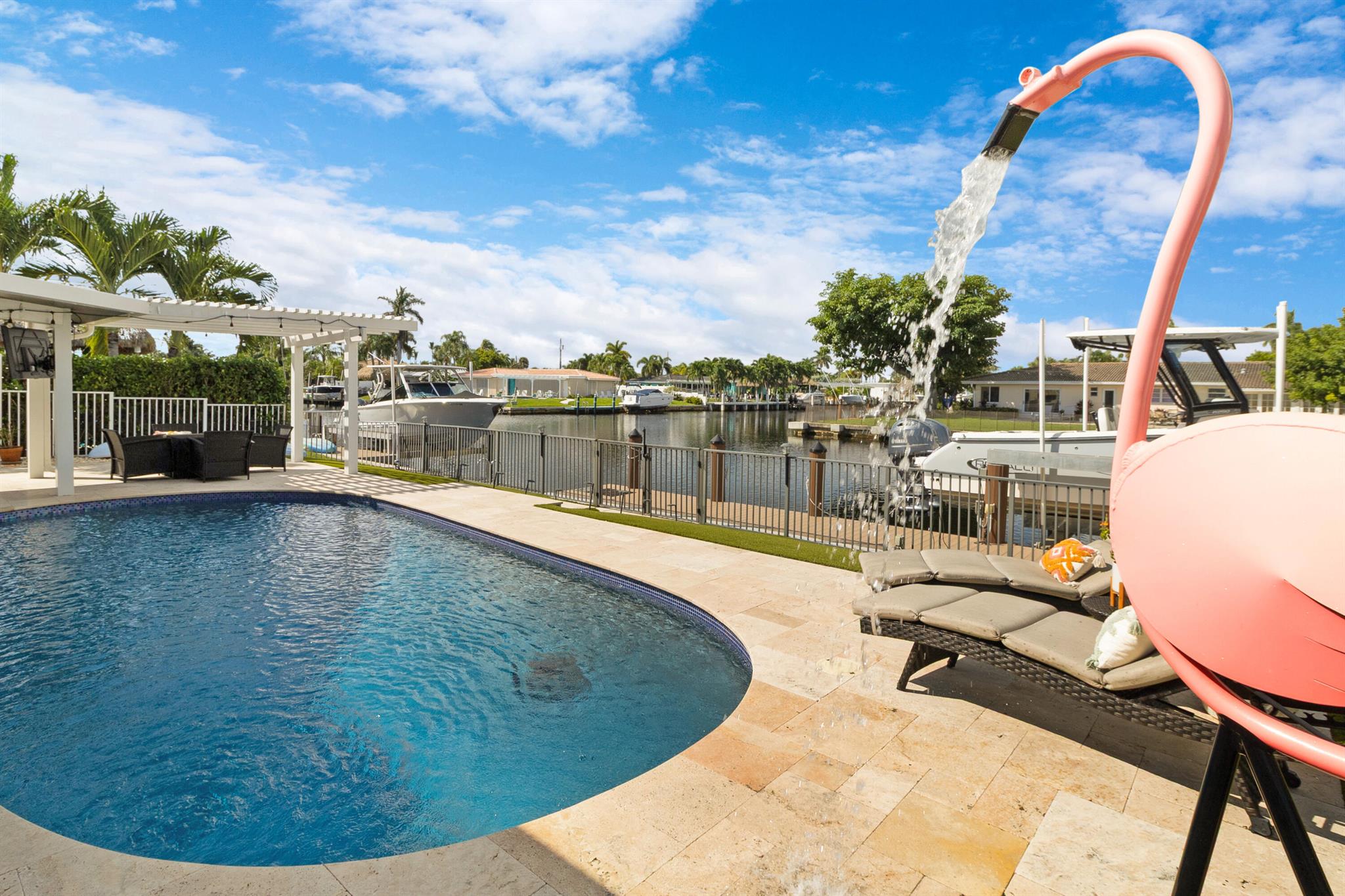 Welcome to this exquisite waterfront residence where luxury living meets modern comfort in one of Pompano Beach's most sought-after neighborhoods. Boasting 75 feet of prime waterfront, this fully remodeled 3-bedroom, 3-bathroom home embodies the ultimate South Florida lifestyle.Inside, the open-concept design blends sophistication and ease. Large impact glass windows fill the home with abundant natural light while providing peace of mind during storm season. The custom chef's kitchen is both stylish and functional, featuring Quartz countertops, a coffee bar, gas stove, and upgraded stainless-steel appliances--perfect for everyday living and entertaining.The primary suite offers a serene retreat with a spacious master bathroom that includes dual sinks, a private enclosed area