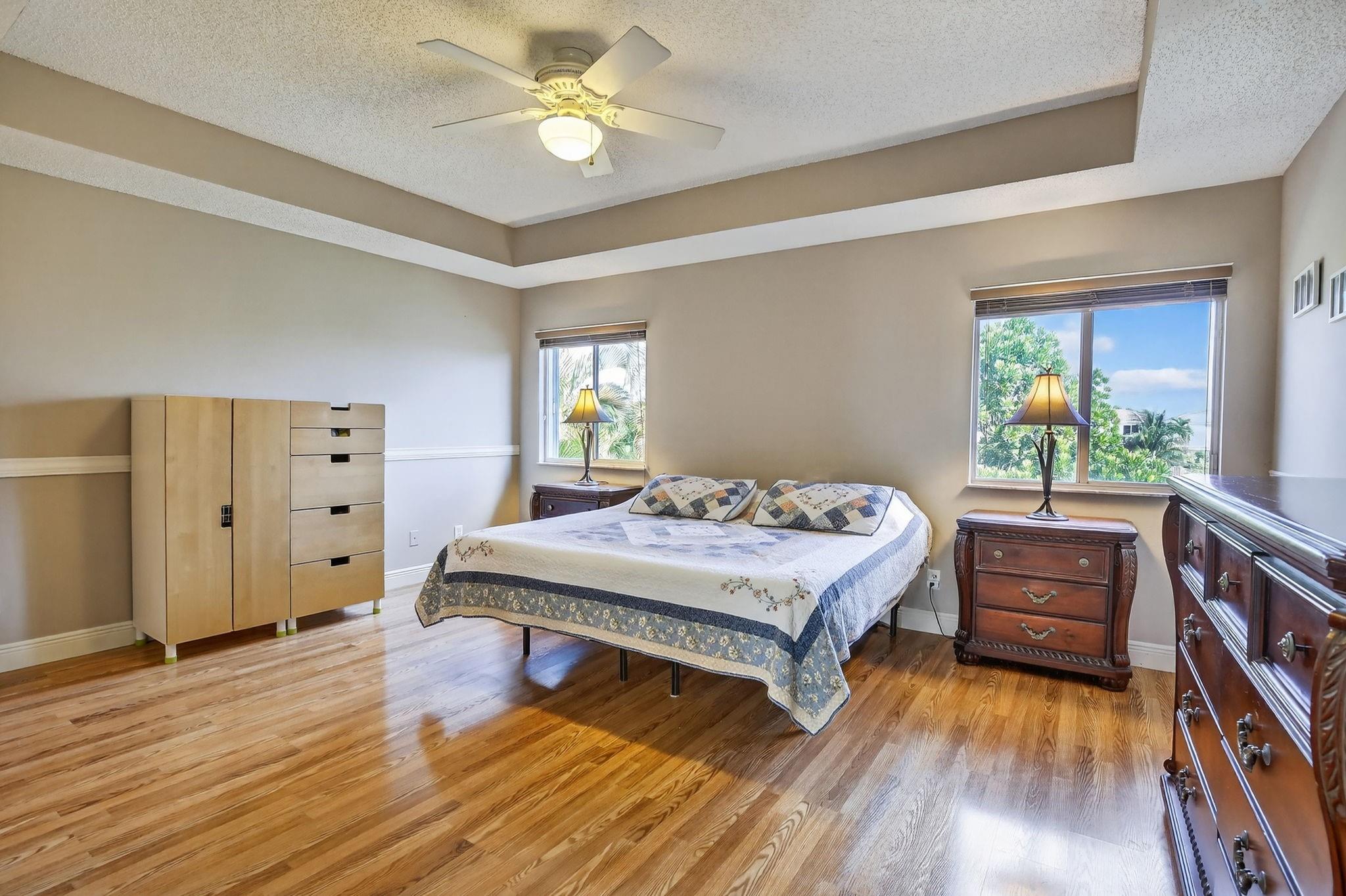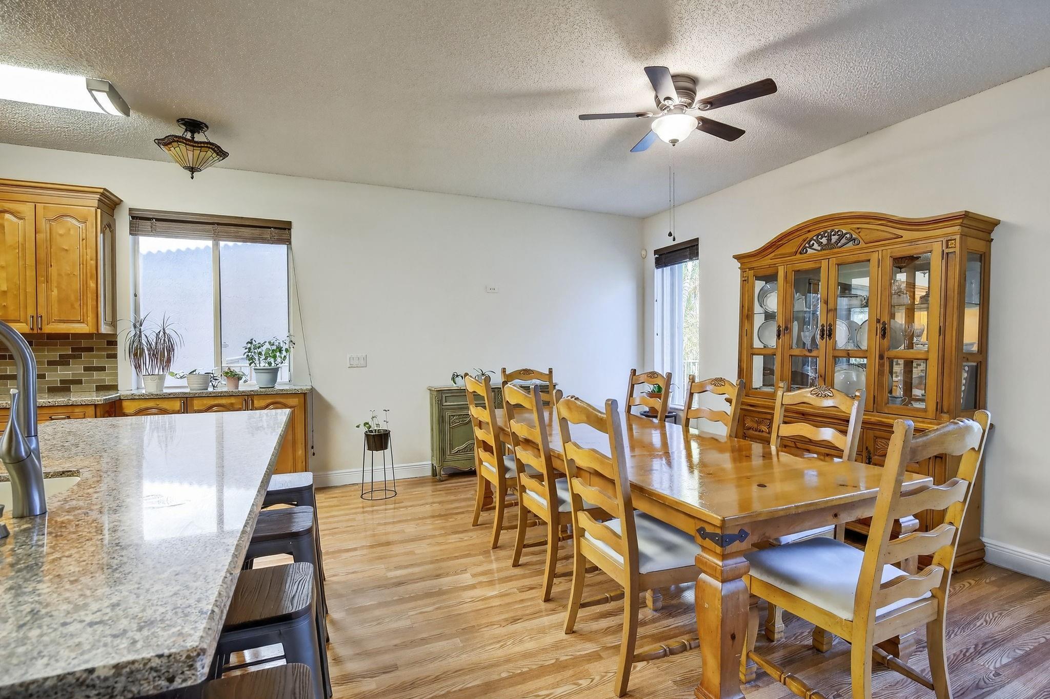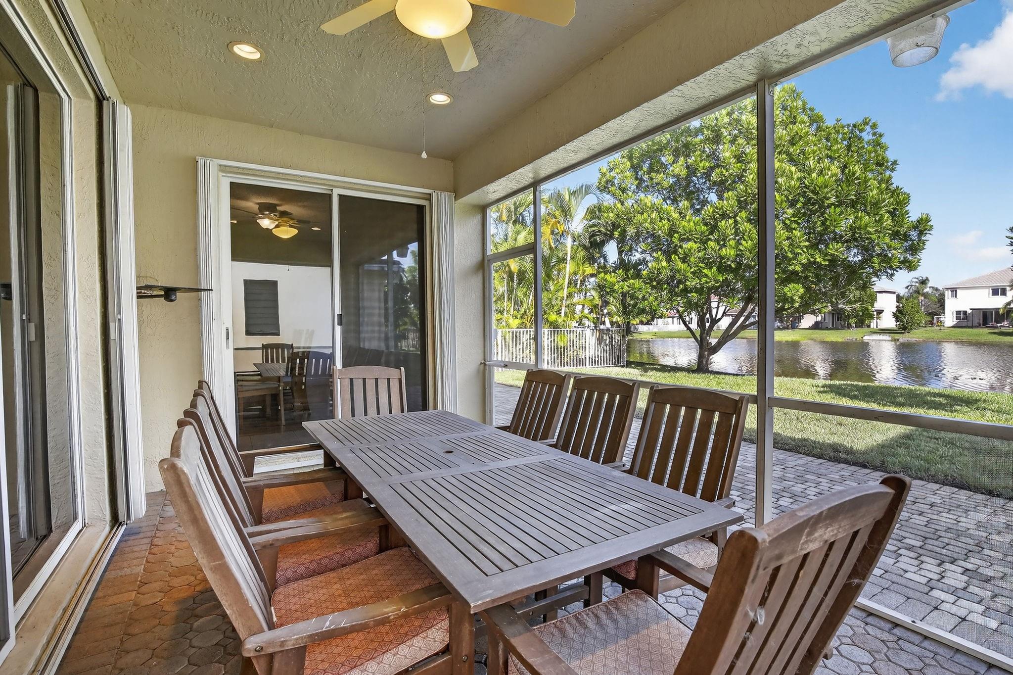 Rare DelMar Model in Laguna Isles! Beautifully updated 5 bed 3.5 bath, 2-sty home with over 2,500 sqft in sought-after Laguna Isles. This unique model offers a side-load garage and a builder-optioned addition, adding 2 extra bedrooms and a full bath for a spacious, flexible layout. The upgraded kitchen features crowned wood cabinets, granite counters, stainless appliances, and natural gas cooking and water heater. The dining room and primary bedroom showcase tray ceilings, and large windows fill the home with natural light. Enjoy wood and tile floors throughout, updated baths, and a freshly painted interior. Outdoor highlights include a screened, covered patio, paver brick driveway and patio, plus accordion shutters. A rare opportunity to own one of Laguna Isles’ most desirable floor plans