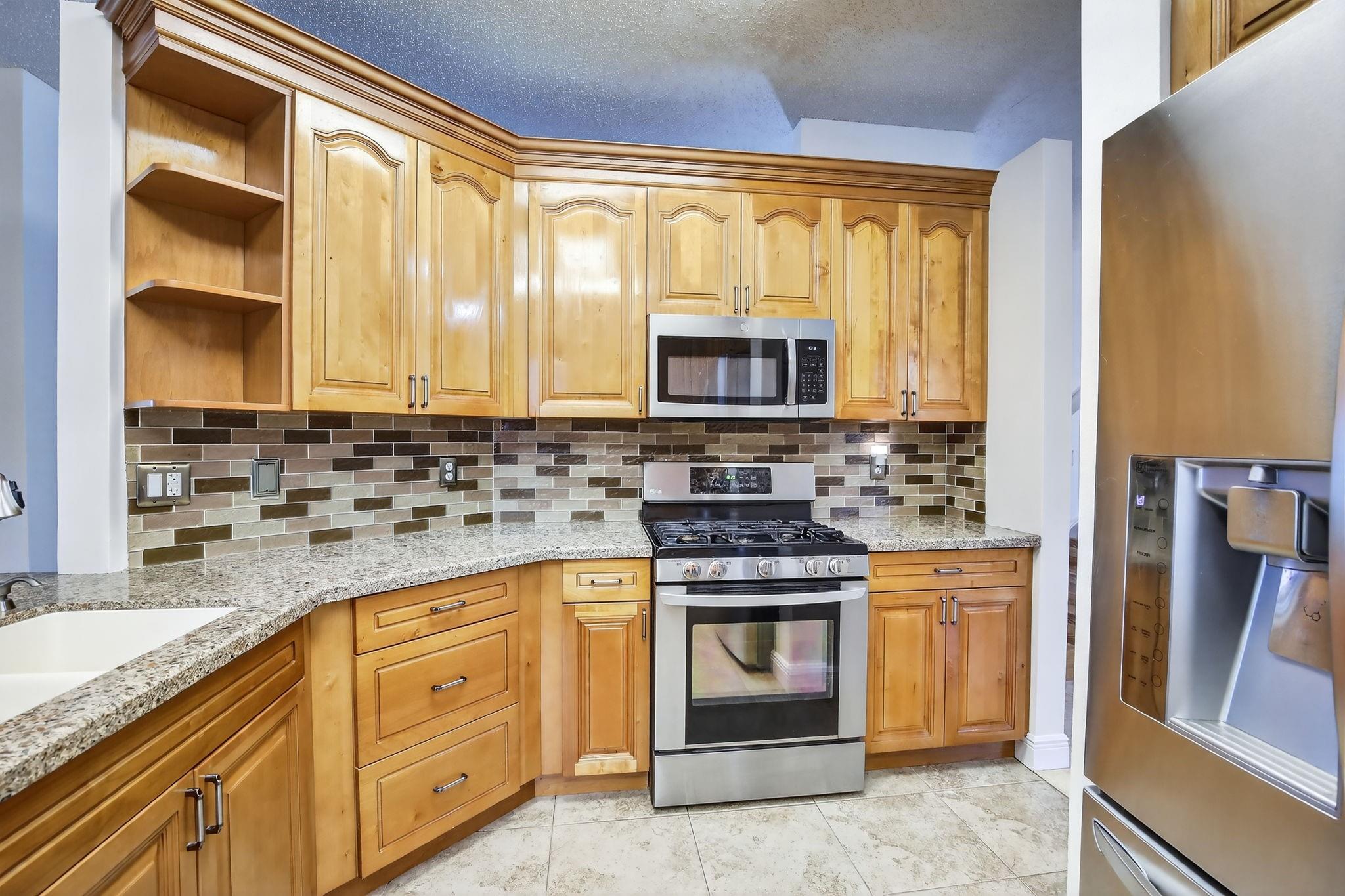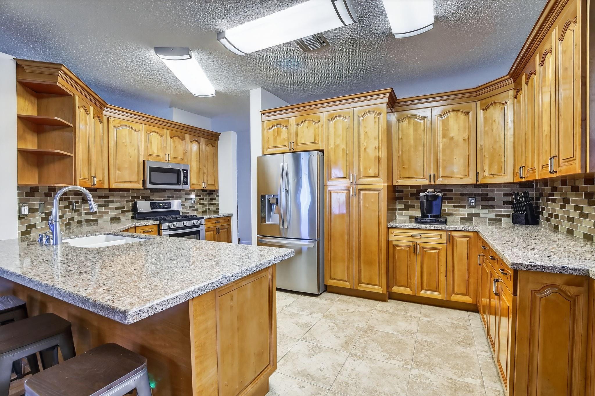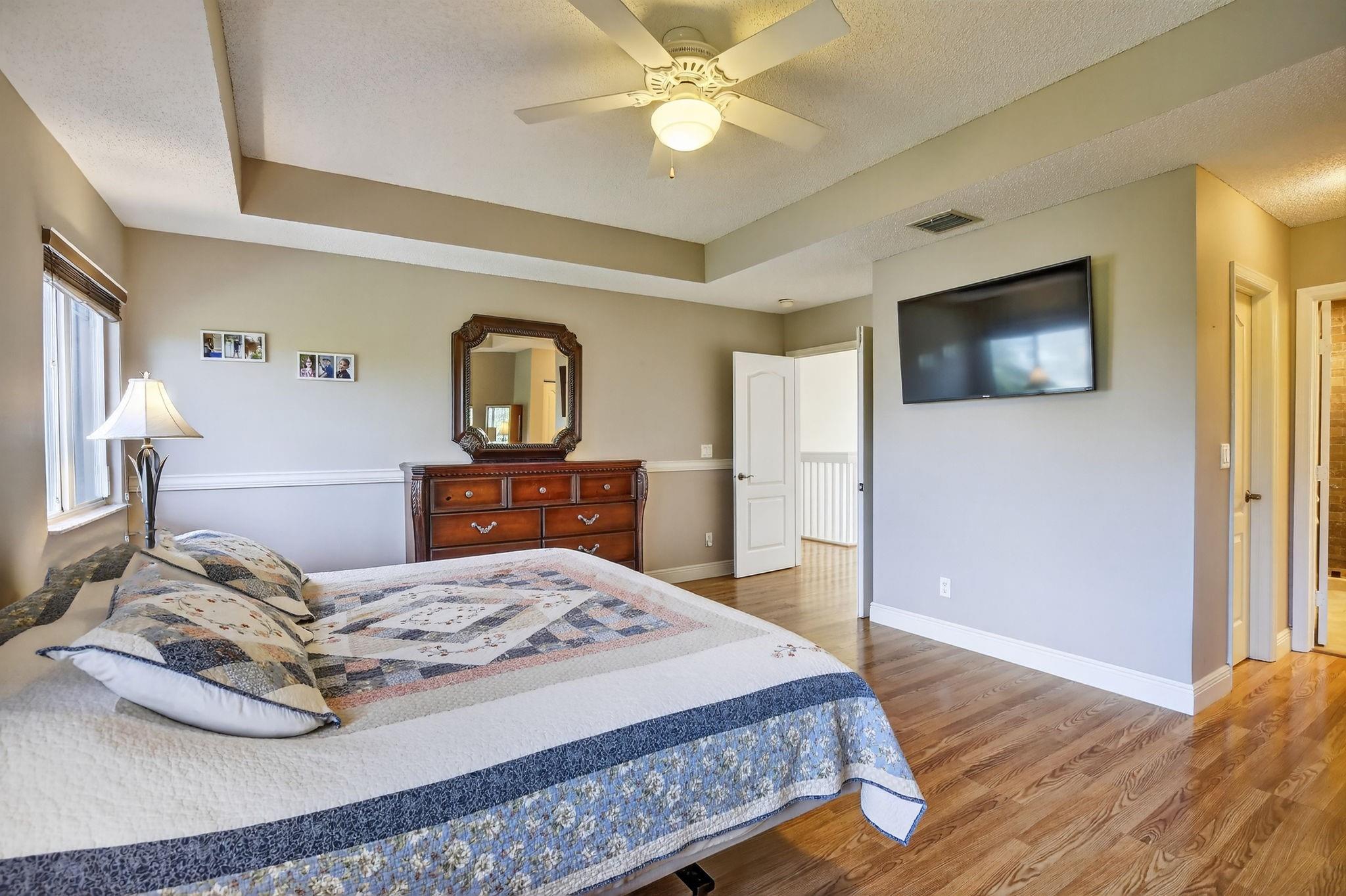 Rare DelMar Model in Laguna Isles! Beautifully updated 5 bed 3.5 bath, 2-sty home with over 2,500 sqft in sought-after Laguna Isles. This unique model offers a side-load garage and a builder-optioned addition, adding 2 extra bedrooms and a full bath for a spacious, flexible layout. The upgraded kitchen features crowned wood cabinets, granite counters, stainless appliances, and natural gas cooking and water heater. The dining room and primary bedroom showcase tray ceilings, and large windows fill the home with natural light. Enjoy wood and tile floors throughout, updated baths, and a freshly painted interior. Outdoor highlights include a screened, covered patio, paver brick driveway and patio, plus accordion shutters. A rare opportunity to own one of Laguna Isles’ most desirable floor plans