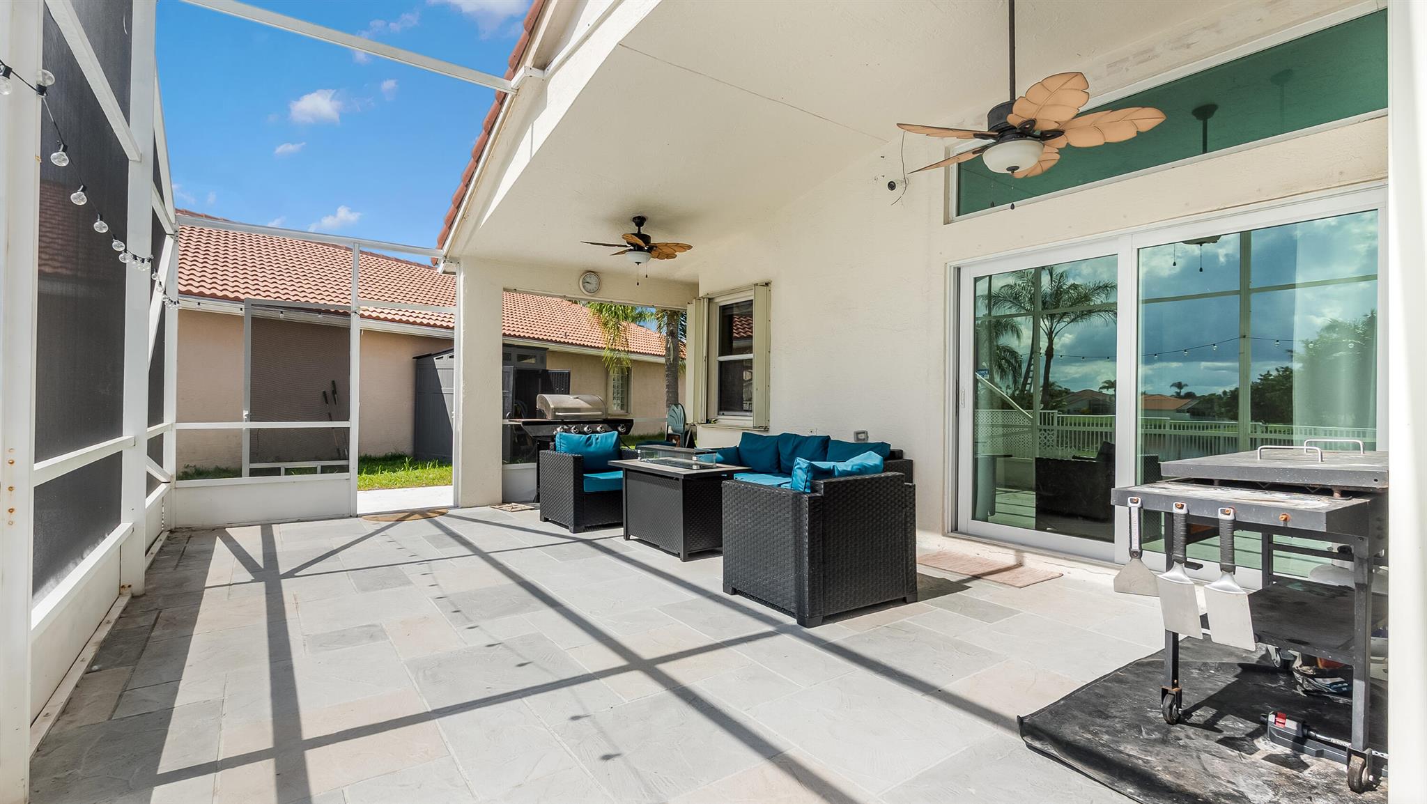 Discover Your Dream Home in the Grand Isles Community in Wellington! Here you'll find a beautifully maintained 3-bedroom/2-bath home combining comfort, style, and modern upgrades. Enjoy tranquil lake views from the screened-in patio or heated saltwater pool (new heat pump 2024). Recent updates include a BRAND NEW ROOF (2025), 7-year-old A/C, impact glass sliders leading to the backyard with accordion shutters everywhere else for full storm protection. Inside features vaulted ceilings, stainless steel appliances, granite countertops, and elegantly renovated bathrooms (2021 & 2022). Perfectly located just off of 441 on Lake Worth Road, close to top schools, shopping, and dining. Grand Isles offers resort-style amenities for the ultimate Florida lifestyle. Live the dream in Grand Isles Today