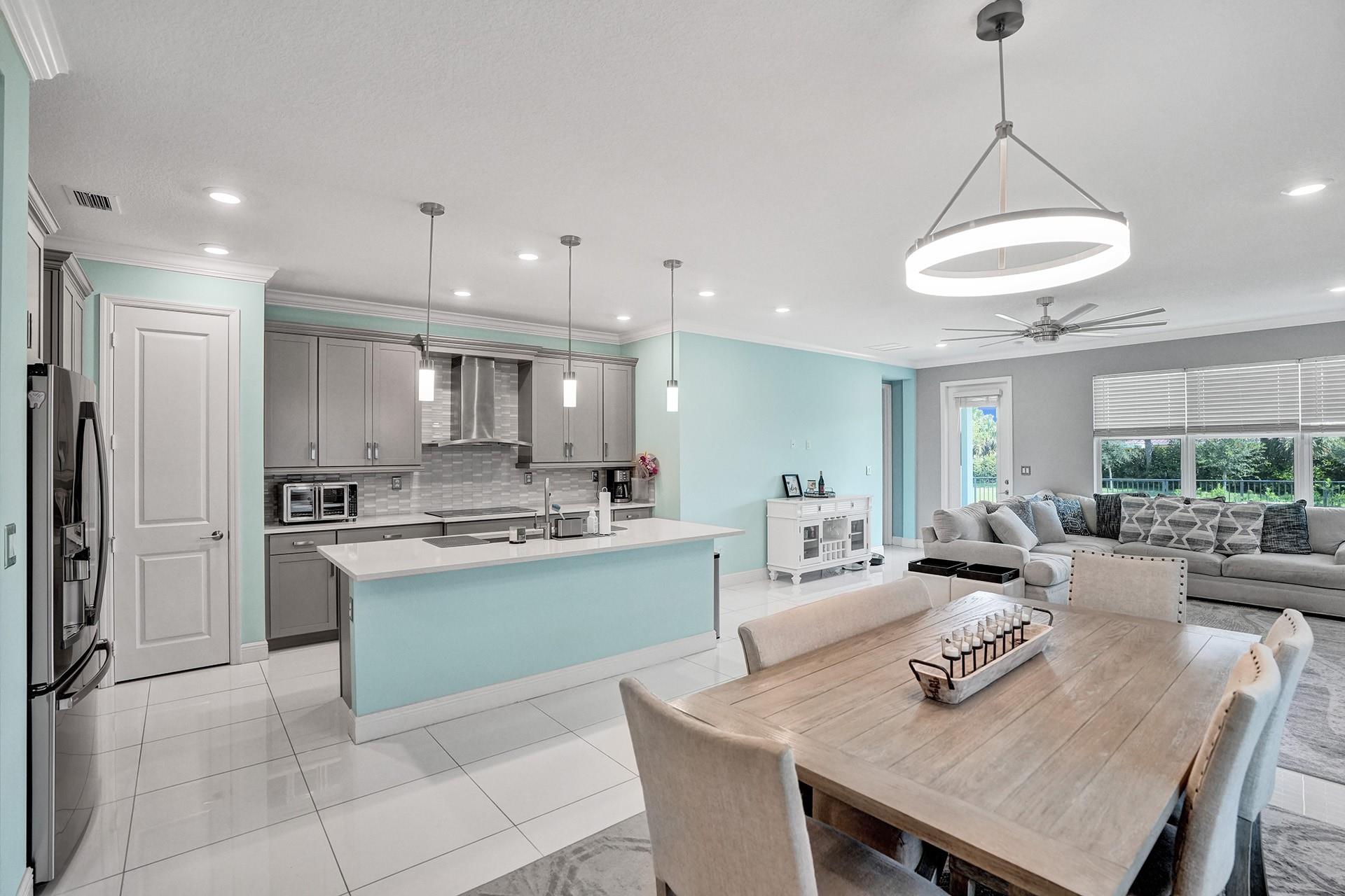 Turnkey waterfront home with 4 bedrooms and 3 baths in a newer, well-managed gated community, featuring a 2-car garage, impact windows, and an open-concept layout flooded with natural light. The first floor includes a convenient bedroom for guests or in-laws, while the oversized kitchen offers abundant counter space and storage. A living room with views of the gated backyard opens to a wide canal, delivering a serene, vacation-like atmosphere right at home. This rare waterfront opportunity combines modern updates, safety and energy efficiency, and family-friendly amenities—making it easy to move in and start enjoying from day one. Schedule a showing to experience the flow, light, and views for yourself before it’s gone.
