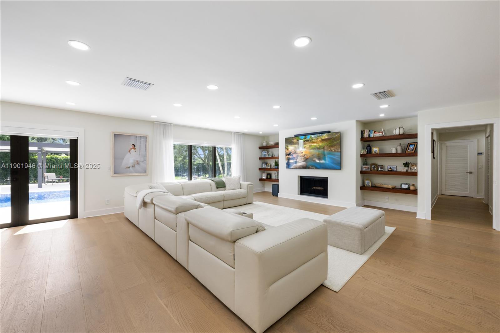 Homes are rarely available in SW Ranches' Ivanhoe Estates! This sanctuary sits on 1+ acre of manicured landscaping and fruit-tree splendor. Inside a fresh, contemporary vibe that flows effortlessly throughout the home. This 5/5 home features a primary suite PLUS two additional master bedrooms. The heart of the home: the great room-an open-concept that seamlessly integrates kitchen, dining, family and living spaces within once connected space. Luxury kitchen with Taj Mahal stone & high-end s/s appliances. A resort-style terrace with pool, oversized pergola and a full cabana bath! Move-in ready with impact windows/doors throughout, including garage. The split floor plan provides a perfect haven for multigenerational families, guest, or WFH professionals. Walkthru video available. Must see!