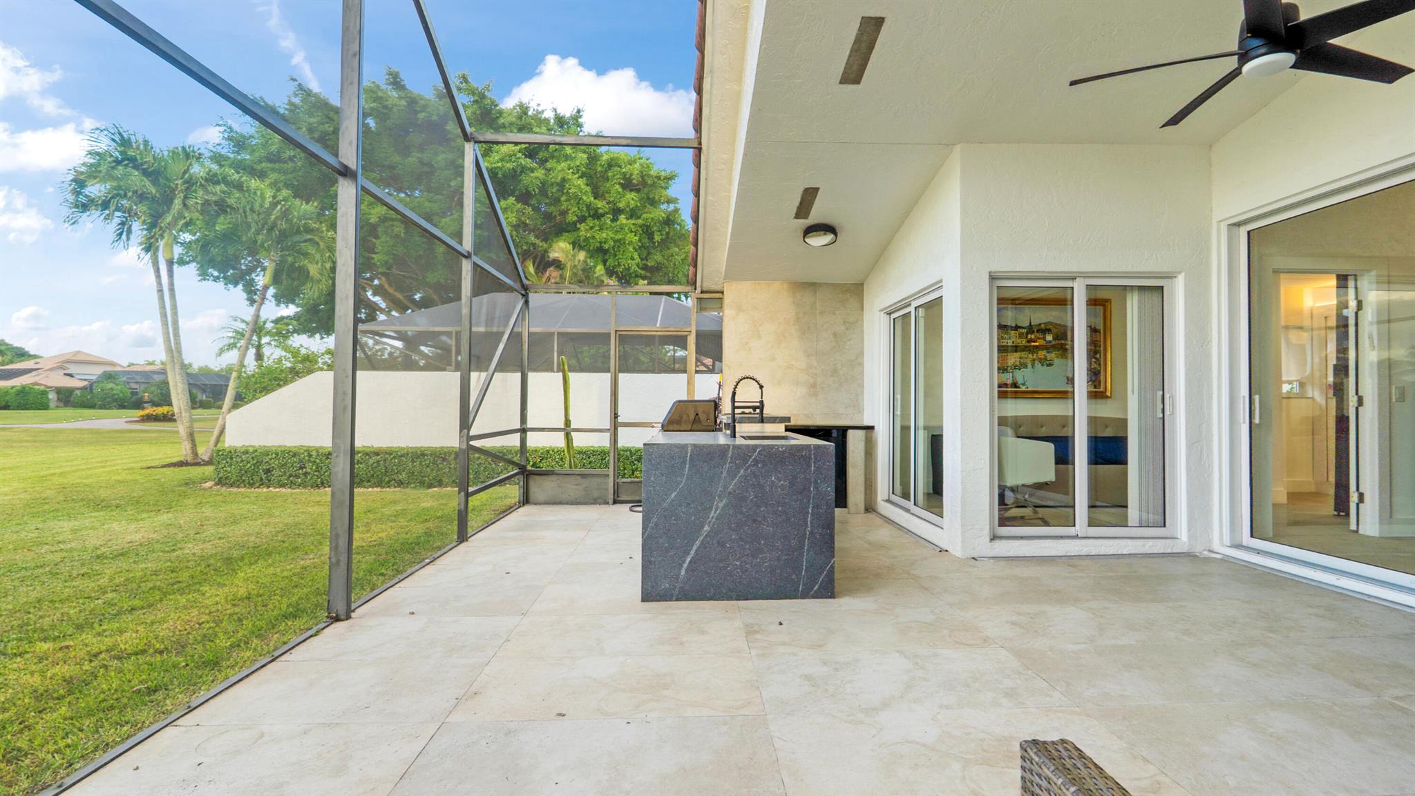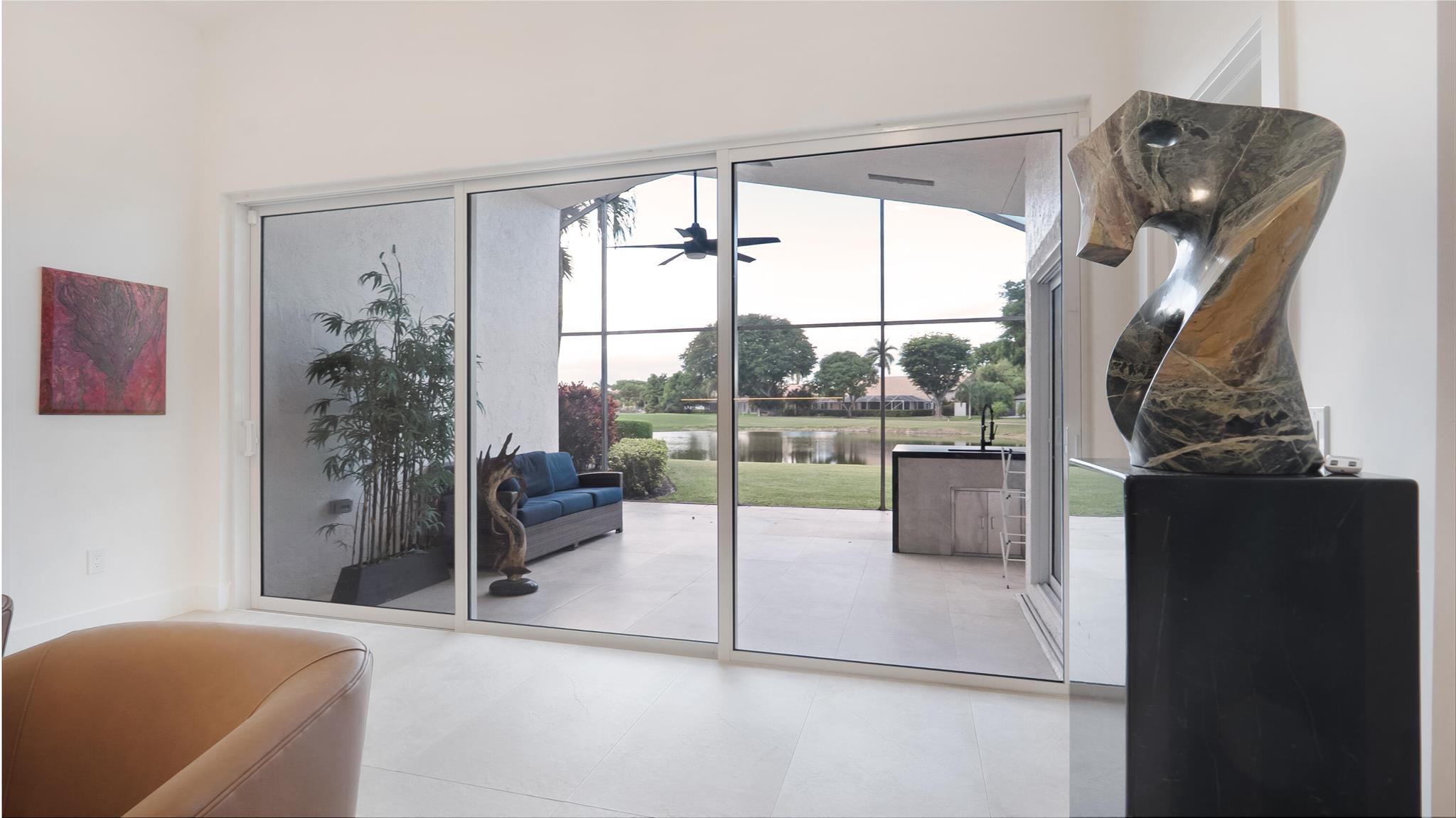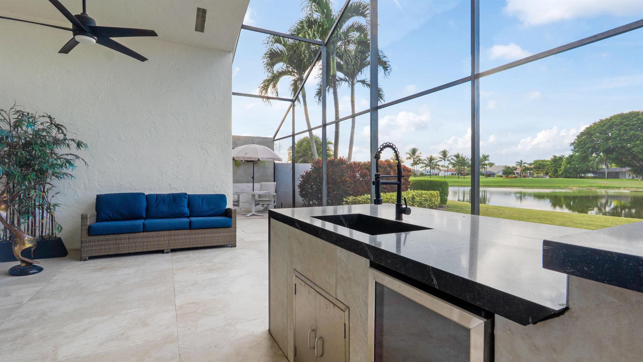 Bring only your toothbrush and move right into your dream home! Completely redesigned with the finest finishes, this 3BR/3.5BA home offers luxury and comfort at an incredible price. Enjoy a chef's kitchen with a butler's pantry, stunning custom cabinetry, and high-end appliances. Each bedroom is an ensuite with custom walk-in closets. The built-in outdoor kitchen overlooks a beautiful golf and lake view, perfect for entertaining or relaxing in total privacy. Elegant, move-in ready, and located in the prestigious Boca Woods Country Club--this home is a true gem!