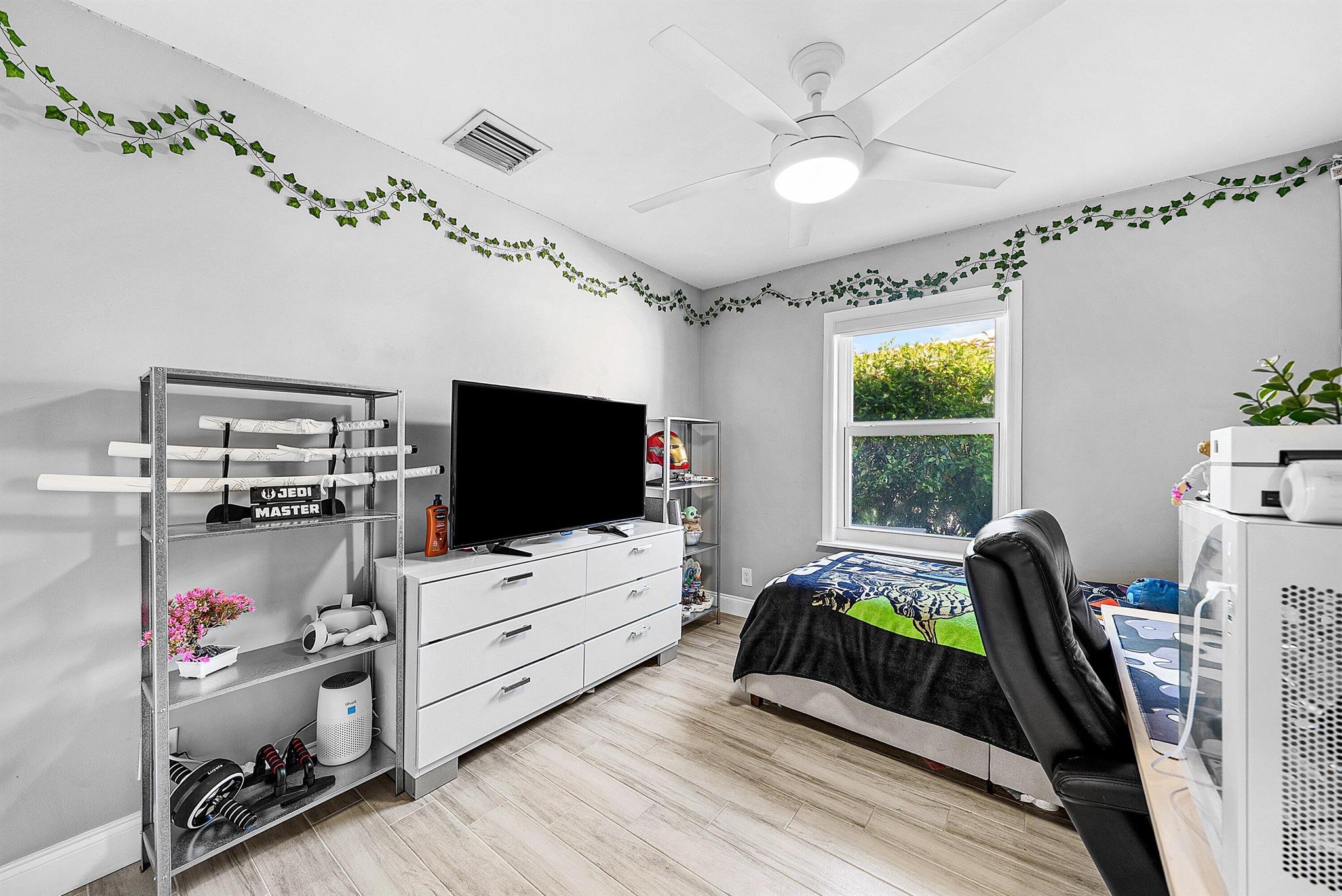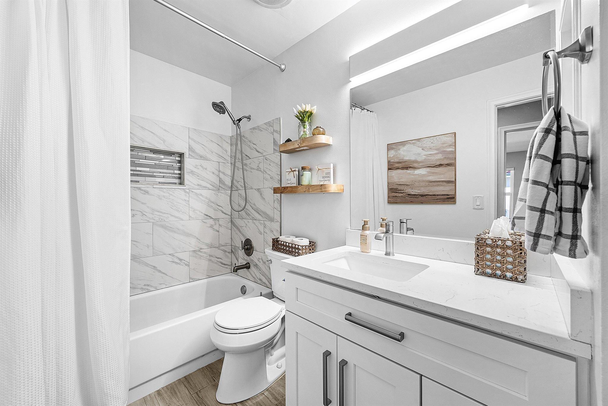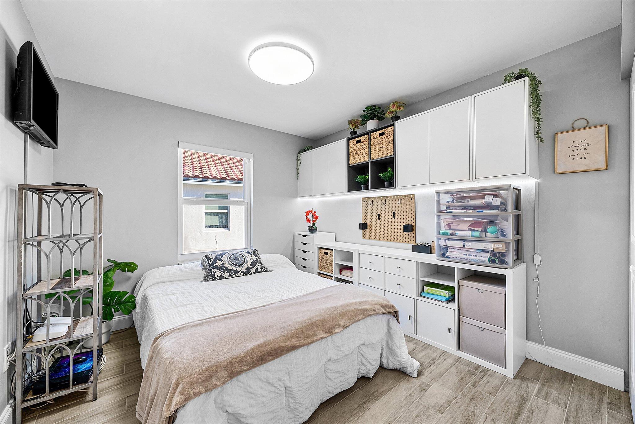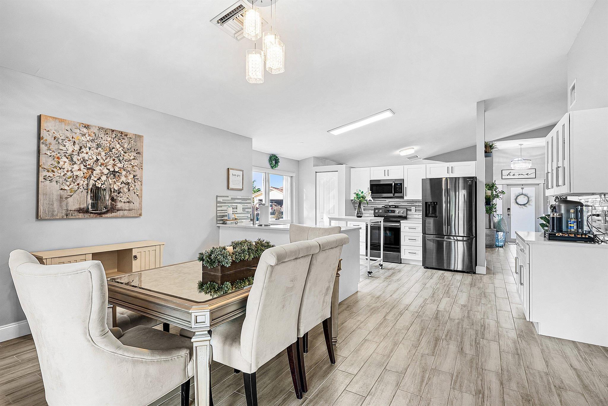 Welcome home to this beautifully renovated 3-bedroom, 2-bathroom lakefront residence with a 2-car garage, perfectly situated in the sought-after community of The Colors. This home combines comfort and style in an ideal location, zoned for top-rated schools including Crystal Lakes Elementary, Christa McAuliffe Middle, and Park Vista Community High. The moment you enter through the impact privacy glass front door, you'll immediately notice the refined touches and thoughtful updates throughout. Highlights include vertically laid wood look tile flooring, 10 foot vaulted ceilings, and updated trim, lighting, and fixtures that create a warm and contemporary feel. Significant updates include a full remodel of the floors, kitchen, and bathrooms (2021), impact windows and doors,