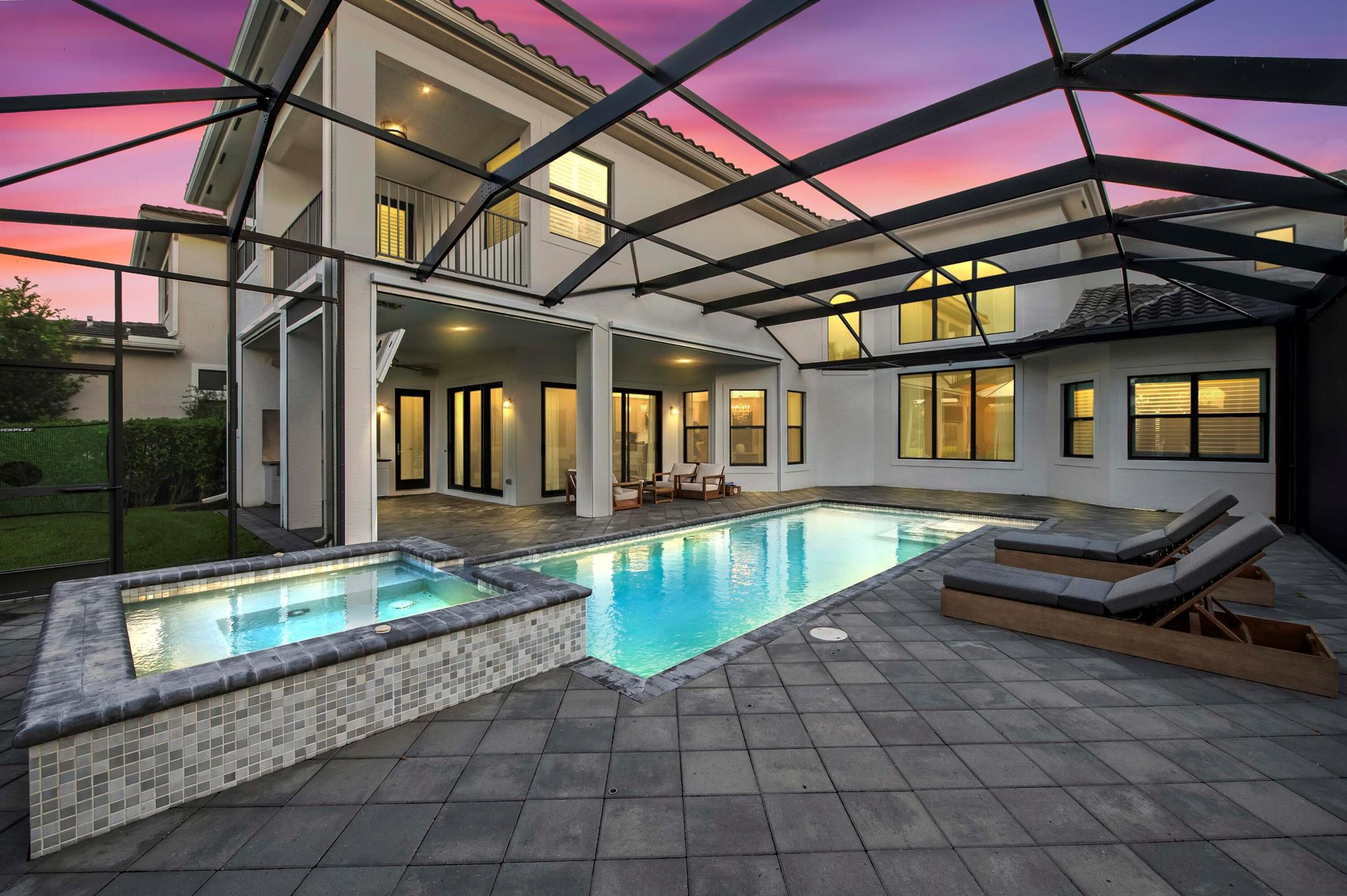 Perched on a picturesque lakefront lot with mesmerizing fountain views, this impeccably designer-decorated Bassano Grande spans nearly 6,000 square feet of luxurious, modern living. The backyard is an entertainer's paradise, featuring a screened, heated saltwater pool and spa, an outdoor TV, and a fully equipped summer kitchen with a brand-new premium grill. Inside, sophisticated high-end finishes elevate every detail, complemented by a state-of-the-art media room, a built-in office, and rich woodwork throughout. The primary suite serves as a private sanctuary, boasting his-and-hers bathrooms, custom closets, a cozy sitting area, and an exclusive balcony. Additional highlights include spacious oversized bedrooms, elegant lighting, custom window treatments, newly upgraded garage flooring,