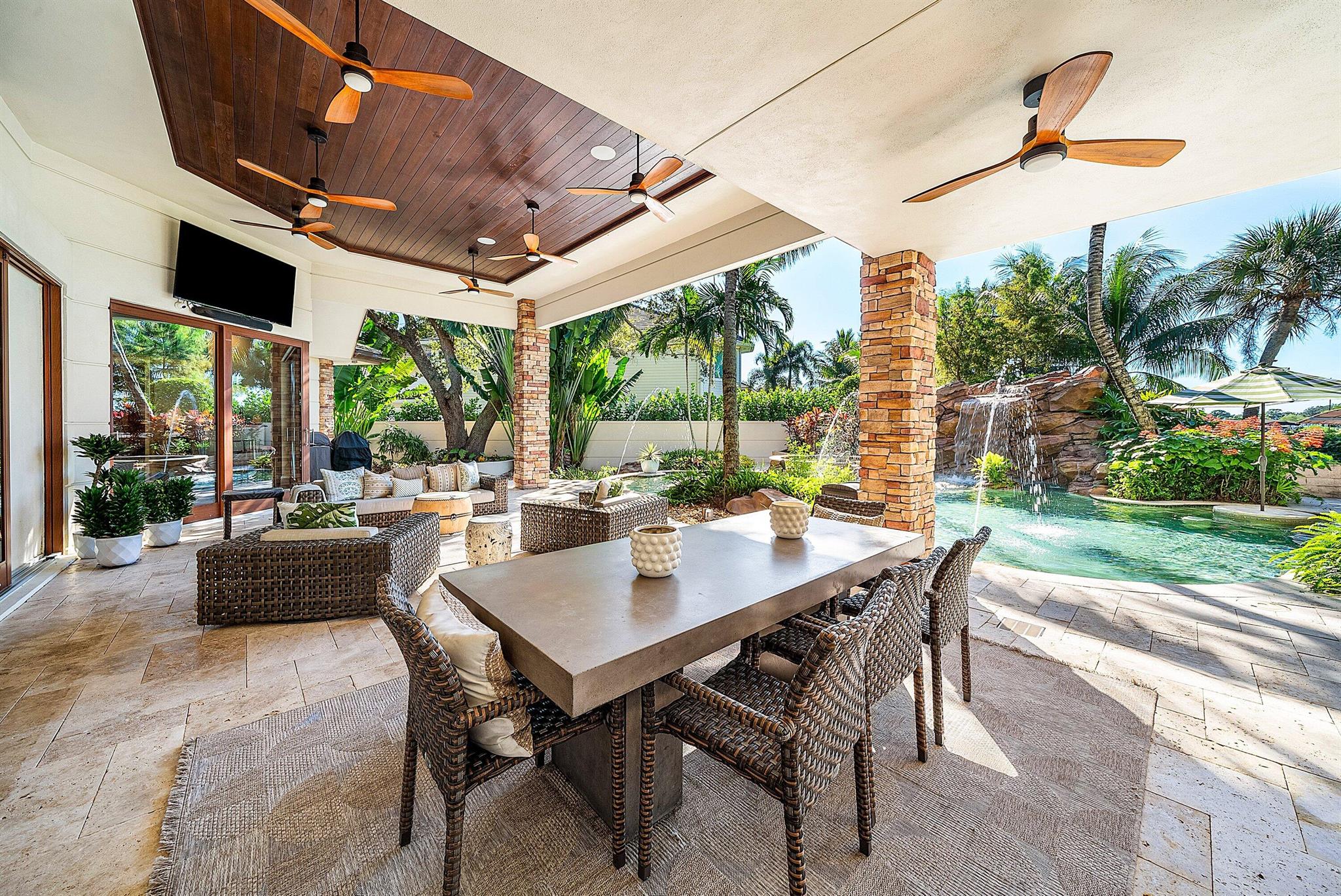 Exquisite Waterfront Estate in Prestigious River Ridge Nestled within the exclusive enclave of River Ridge , this custom-built builder / owner 2012 waterfront residence offers an unparalleled blend of sophistication, comfort, and timeless craftsmanship. With captivating long views of the Loxahatchee River gracing nearly every room, this home is a serene sanctuary designed for refined living and effortless entertaining.Meticulously reimagined in 2024-2025, the property features a state-of-the-art designer kitchen boasting dual islands, Sub-Zero and Thermador appliances, a 44-inch Galley sink, and bespoke designer lighting that perfectly complements the home's architectural elegance. The first-floor serves as a private retreat, complete with a custom fireplace, a built-in wall