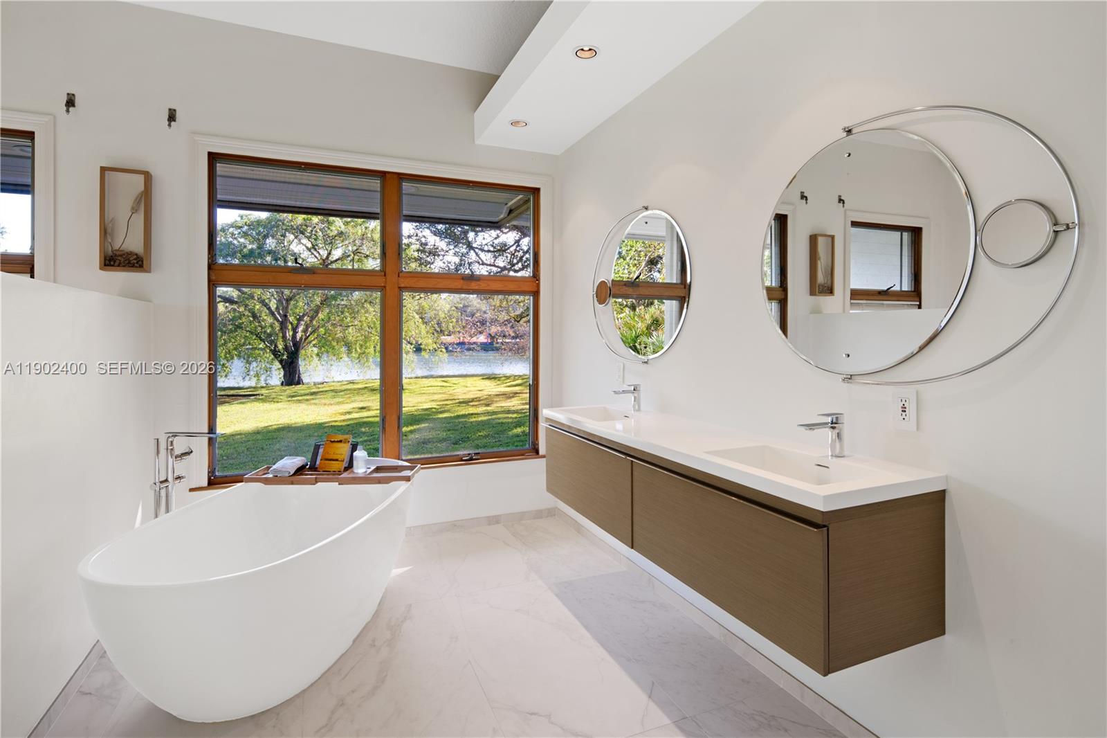 Welcome to an enchanting lakefront residence nestled within the prestigious gated enclave of Banyan Drive in Coral Gables. Remodeled in 2024, this spectacular contemporary estate offers 6,239 square feet under air, w/7,611 total square feet, set on over an acre of lush grounds graced w/majestic oak trees & sweeping water views. Hand-picked by the owner for its expansive lake vistas & the pleasure of continuous prevailing breezes, this elevated architectural masterpiece harmonizes seamlessly w/its natural surroundings & features an exceptionally low carbon footprint. Warm wood floors, brand-new chef’s kitchen, new spa-inspired baths, & multiple entertaining spaces create a refined yet relaxed atmosphere. Each room is thoughtfully designed to capture abundant natural light & frame breathtaking views of the tranquil lake & verdant landscape. The home’s exceptional orientation & generous outdoor areas make it ideal for both intimate gatherings & grand-scale entertaining w/indoor & outdoor surround sound. Experience nature’s beauty w/early morning sails & sunset kayak rides from your own backyard, embracing a lifestyle that blends elegance, comfort, & recreation. Ideally located near Miami’s finest private schools, this Coral Gables address is uniquely served by Pinecrest Elementary, offering an exceptional educational advantage. This remarkable residence embodies a lifetime of elegance, serenity, & distinction in one of the most coveted lakefront settings. A Very Special Home.