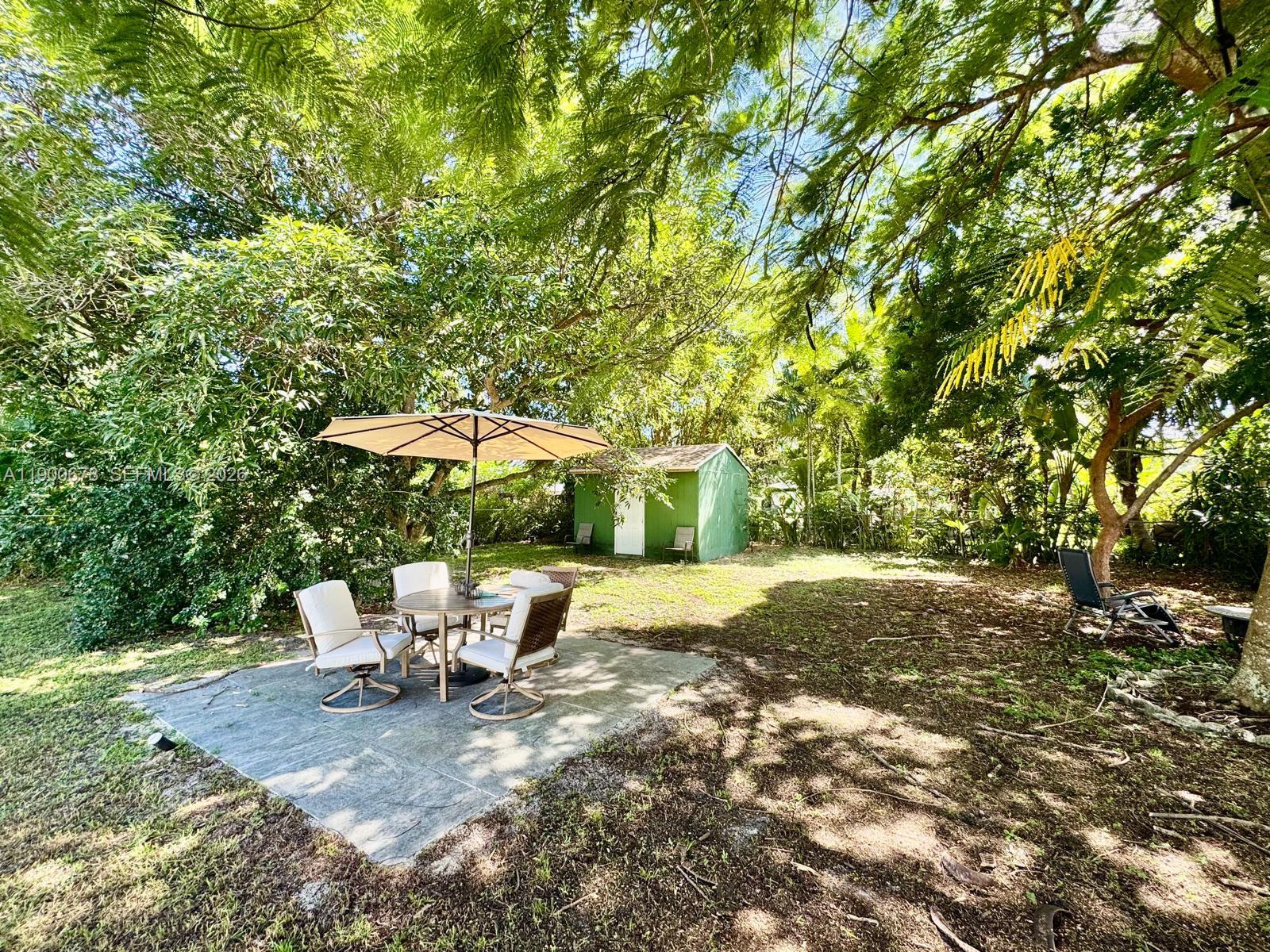Great opportunity on large, oversized lot! Charming 3-bedroom, 1-bath home with a separate rear unit currently used for storage, offering endless possibilities. Set on a generous 10,500 sq ft lot at the end of a quiet cul-de-sac. Inside, natural light fills every corner, highlighting high ceilings, new baseboards, and freshly updated finishes. The kitchen features white cabinets, butcher block counters, a wall and standard oven, stainless gas stove, and double sink. Key highlights include impact windows plus accordion shutters, approx 8 yr old roof, 2022 A/C, and gas water heater. The screened porch overlooks a huge backyard with mature trees, including a mango tree. Additional perks include a spacious laundry room/pantry and transferrable PACE energy-efficient upgrades.