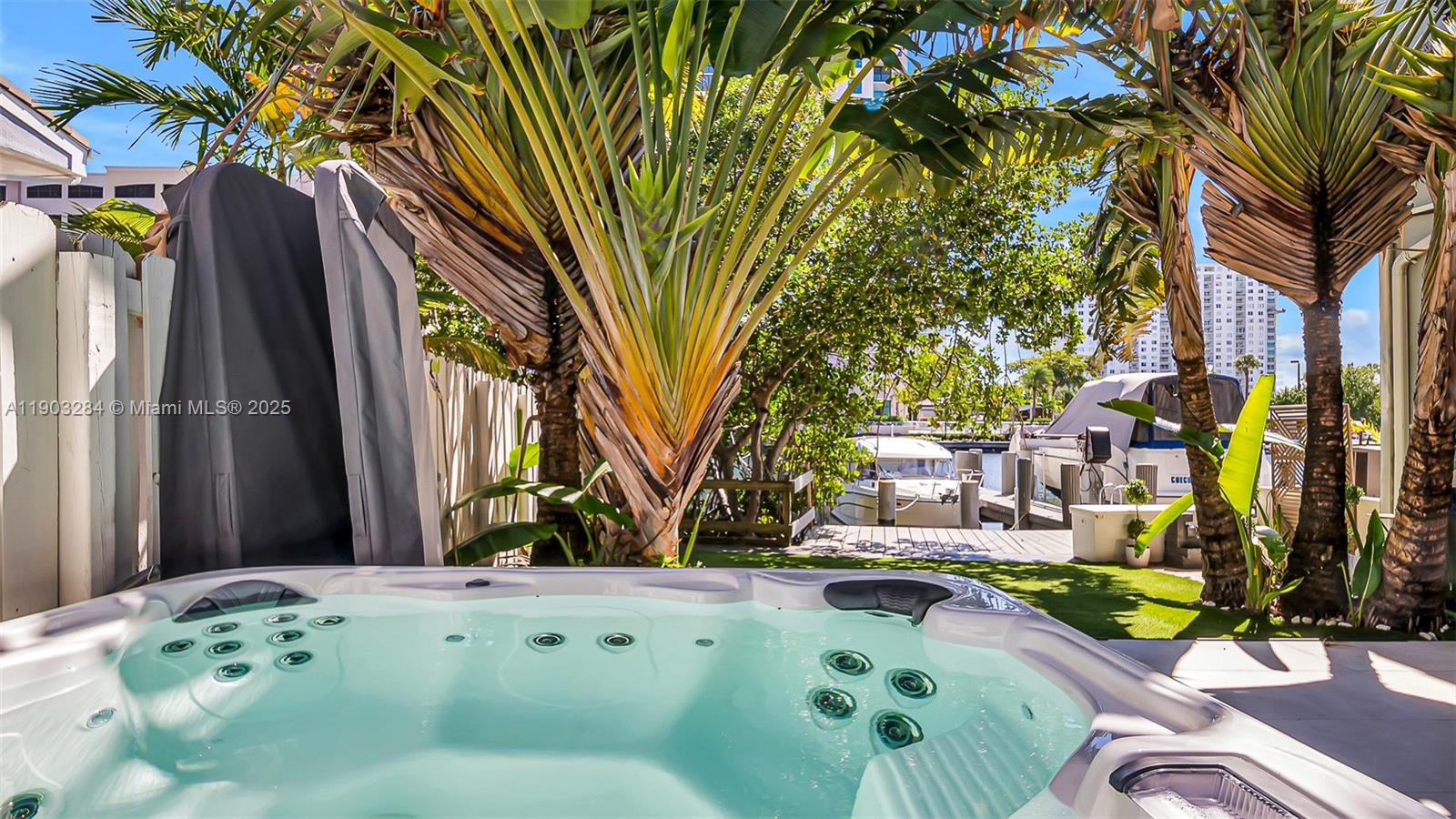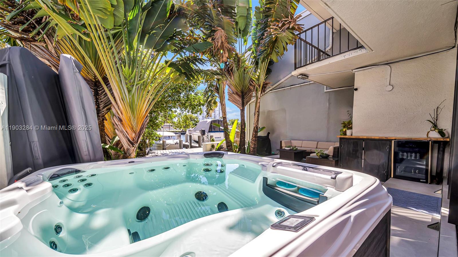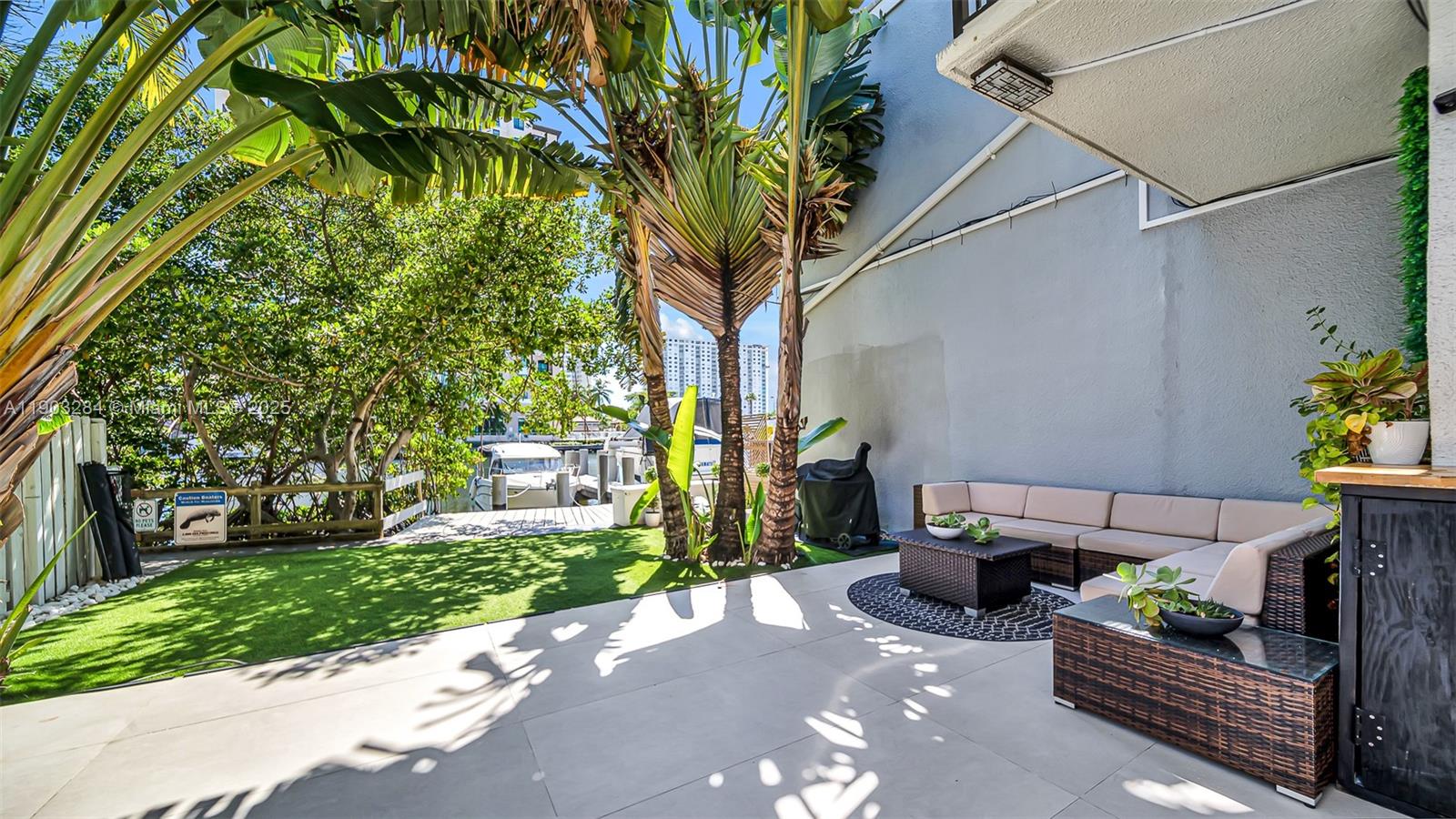 Experience Ultimate Miami Waterfront Living. Welcome to this renovated 4 bed plus a Den /3 bath Townhouse with 1 car garage located in Poinciana Island Yacht Club private guard gated community right across from the Ocean in Sunny Isles Beach Florida. This exceptional property offers 43' Boating Dock with direct ocean access, one of the few available on the Island, making it a true boaters paradise Step inside to find high ceiling with a sky light, brand new Impact doors, windows & modern finishes Nestled on a corner lot, this home offers expansive outdoor living space & features a top of the line Jacuzzi &Cold Plunge &lush tropical trees that creates a true paradise. Ample space to savor your morning coffee or watch breathtaking sunrises and sunsets!Tennis & Basketball Courts, Pools
