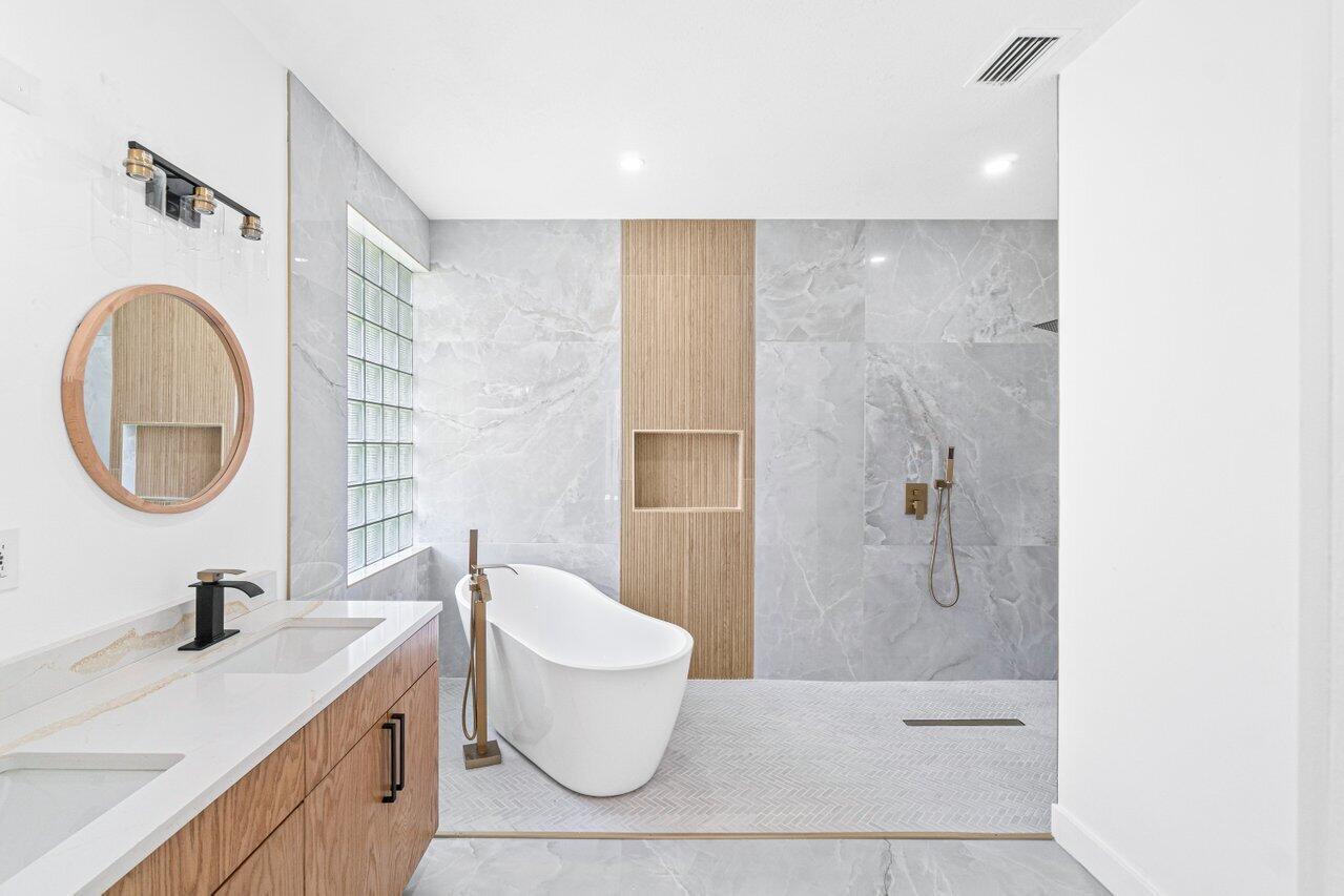 Stunning Fully Redone Home in Valencia Lakes wth a BRAND NEW ROOF at closing. This Masterpiece is Like no Other in the Community. This Home has Been Redesigned with Walls Removed to Open the Entire House. There are Modern Floors Everywhere. The Stunning Kitchen Boasts Wood Cabinets, Quartz Counters and High End Stainless Steel Appliances. The Large Primary Bedroom Includes a Luxurious New Bathroom with Huge Walk In Shower and Freestanding Tub as Well as all New Cabinets and Flooring. No Expense was Spared in Creating this Remarkable Home. Step Out to Your Screened and Covered Patio For Your Private Garden and Lake Views. New Brand New Washer & Dryer. Valencia Lakes is an Incredible Active Adult Community with a Brand New Gorgeous Clubhouse with Tons of Activities.