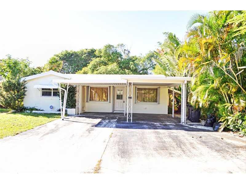This wonderfully-located 2 bedroom 2 bath home is situated in the desirable Wilton Manors area. Located near schools, shopping and nightlife, the house features custom wood kitchen cabinetry, enclosed patio with washer / dryer hookup and large back yard. New electric water heater, fresh paint and ceramic tiles in living / dining area make this home ready to move in now! Metal hurricane shutters on all main windows! Lots of potential. Lots of features make this house a must-see! Call agent for showing!