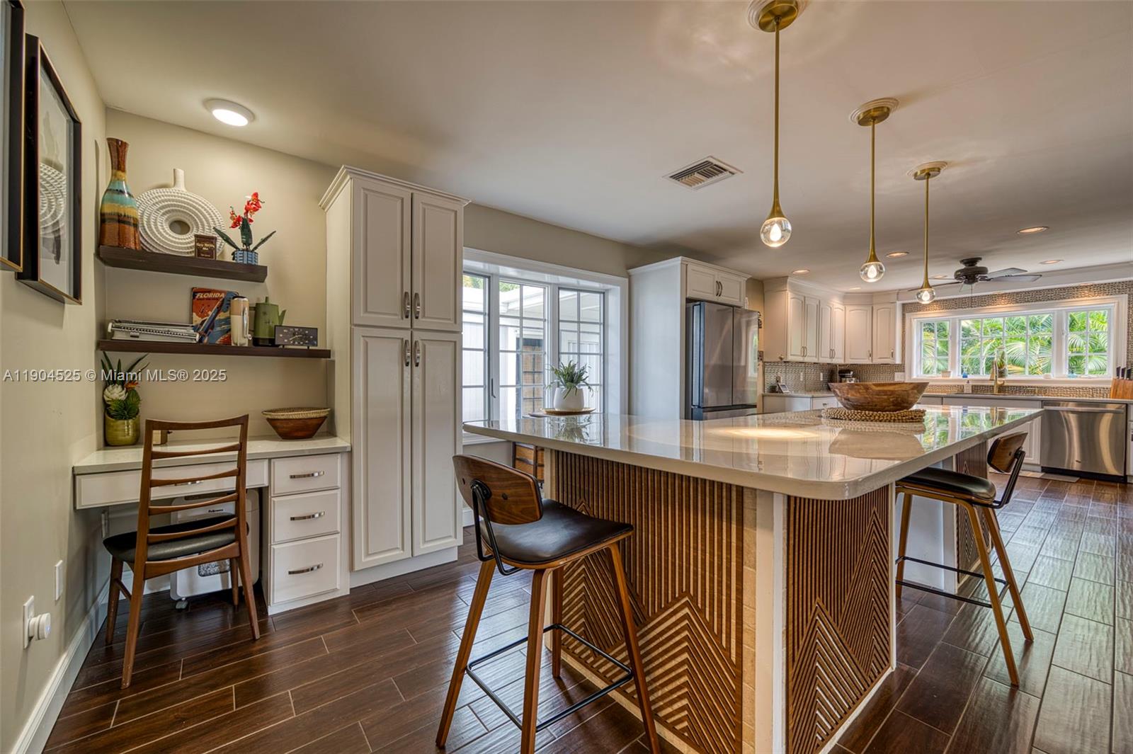 Welcome to your picturesque lakefront sanctuary in desirable Glendale Lakes! Situated on a rare 0.55-acre double lot w/ 120 ft of private lake frontage, this spacious 4-bed, 3-bath ranch offers 2,833 SF of charming Florida living. The stunning outdoor oasis is an entertainer's dream, featuring a private lap pool & new wood deck (2025). This unique home features 2 independent suites (primary & 4th bedroom), each w/ its own private entrance, offering flexibility for guests or a home office. Recent major upgrades include a new Metal Roof (2022) w/ hurricane-resistant straps, exterior painting (2022), new pool deck surface, & appliances updated (2022–2024). The 2-car garage includes a handy workshop area. This is a rare & truly exceptional property and there is no HOA! Must see!