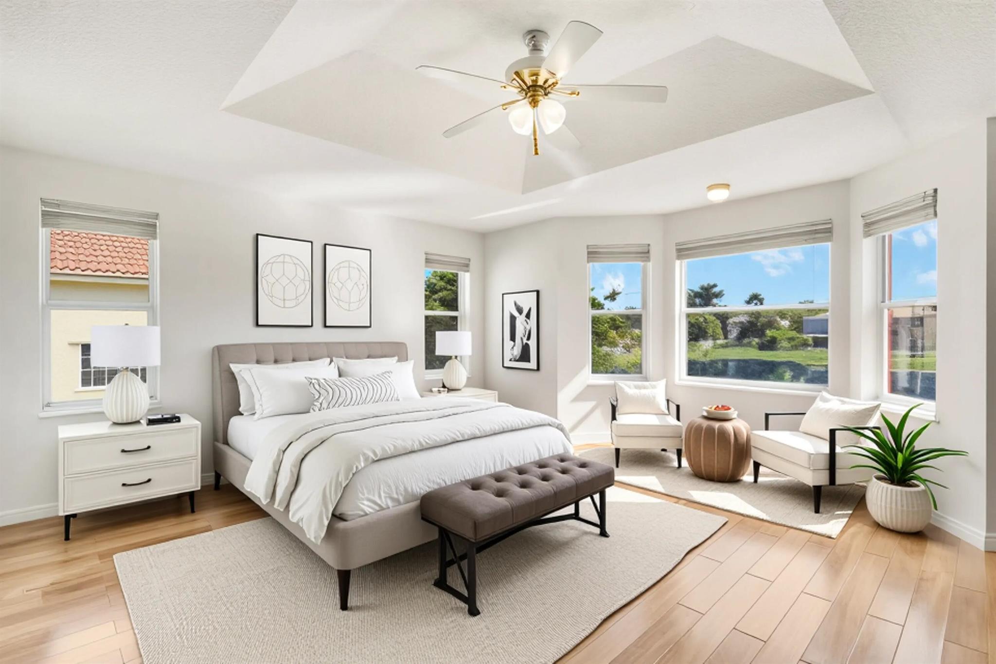 Beautiful and expansive, four bedroom, two and a half bathroom, waterfront home located in the desirable Scribner section of Olympia. Enjoy serene water views and a gorgeous, heated, saltwater pool installed in 2020- perfect for relaxing or entertaining. Situated on a larger lot than most in the community, this home offers extra outdoor green space. With a formal living room, cozy family room, elegant dining area, breakfast nook, and a lovely kitchen featuring warm wood cabinets and granite countertops, there's plenty of space for everyone. The highly sought-after neighborhood of Olympia includes an impressive clubhouse with resort-style amenities, including a fitness center, swimming pool, tennis and basketball courts, and playgrounds. Families will also appreciate the A-rated schools