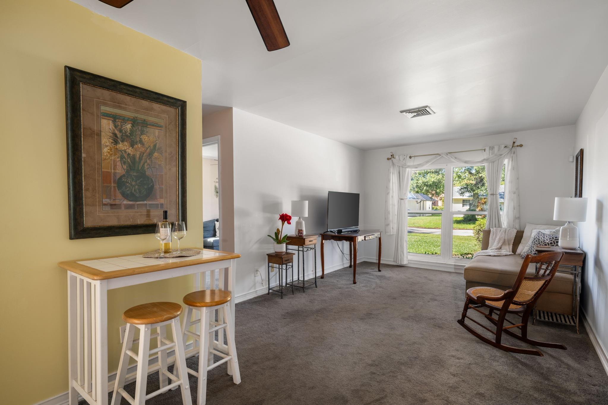 Imagine simple living here within this peaceful, idyllic, and well-loved home that awaits you! Perfect non-HOA hard-to-find concrete block, adorable 2/2 Bungalow on a dead-end paved road. Backs up to the elementary school access road and the lake. Ideal location with gorgeous landscaping to enjoy. A BONUS spacious .23 fenced yard, metal roof, BONUS Full IMPACT windows, BONUS GENERATOR, screened covered lanai, large shed, and patio. Home is on county water and septic, and is close to all beaches, shopping, schools, and more. It is a winner!
