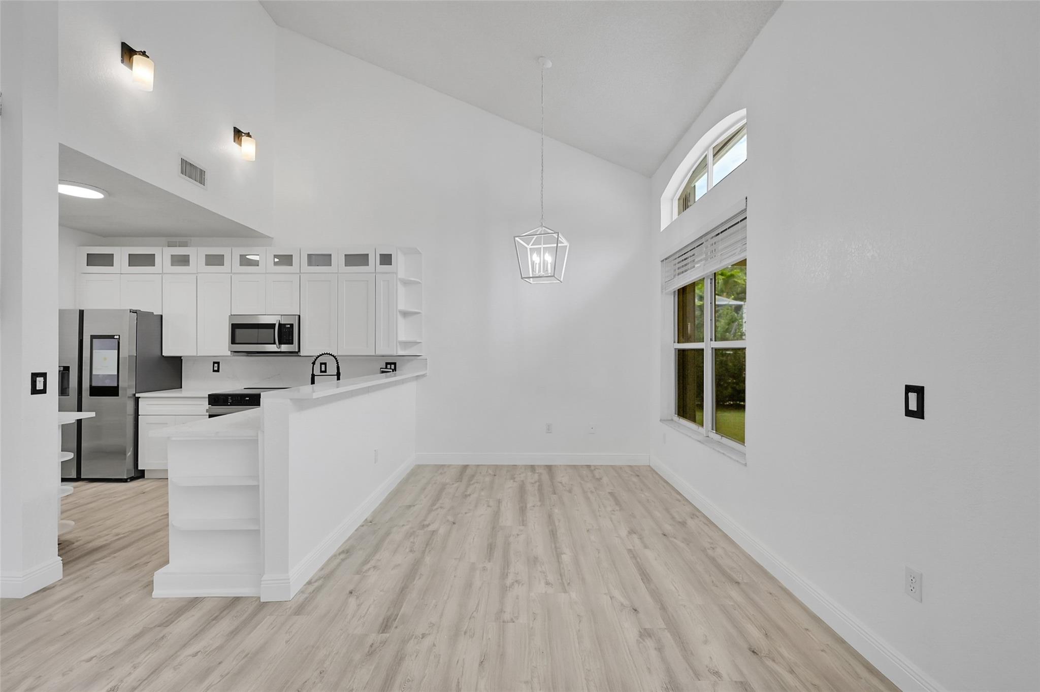 Live the dream in this beautifully updated 4/3.5 home in a gated community with a 3-car garage & lake views. 2 Primary bedrooms with bathrooms. Enjoy a first-floor primary suite, newly remodeled modern white kitchen with quartz counters and brand-new SS Samsung Bespoke appliances. Soaring ceilings, luxury waterproof laminate flooring throughout with lifetime warranty. Completely upgraded bathrooms, & hurricane shutters. Perfect for multigenerational living with a 2nd primary like En suite upstairs. Relax in the fenced backyard with your covered patio & room for a pool. Backyard lawn is professional artificial turf with lifetime warranty. Located on a quiet cul-de-sac with access to community pool, gym, fast 2Gig internet & more. Not in a flood zone! Accordion Shutters for your protection.